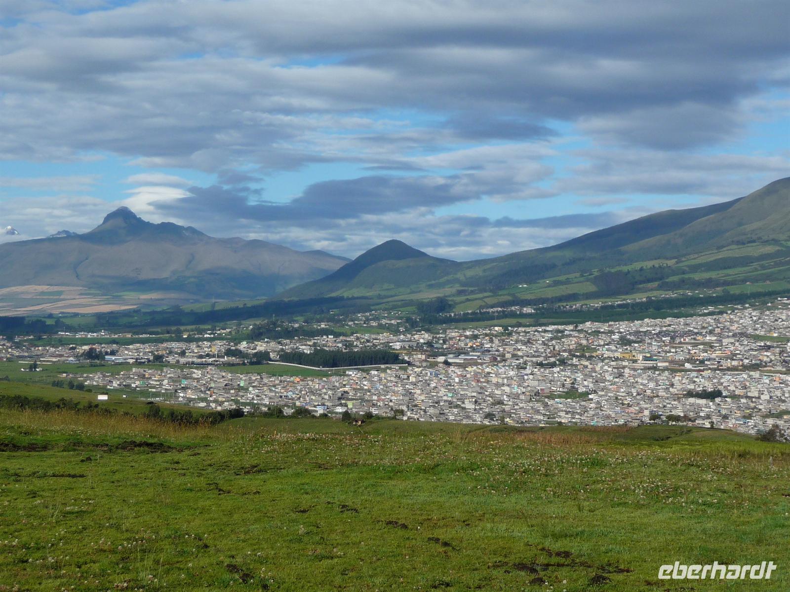 Nach dem Frühstück geht es auf der Panamericana Nr. 1 in Richtung Norden nach Otavalo. Landschaftlich sehr schön wird das Gebiet auch die kleine Schweiz bezeichnet, da Berge und Seen allgegenwärtig sind. 1. Aussichtspunkt : der Blick auf das Äquatordenkmal und Quito mit den Berggipfeln 2. Aussichtspunkt : Kiosk mit Restaurant, der Blick auf die Stadt Cayambe (25.000 Einwohner) im Tal und die Lagune San Pablo im Hintergrund.