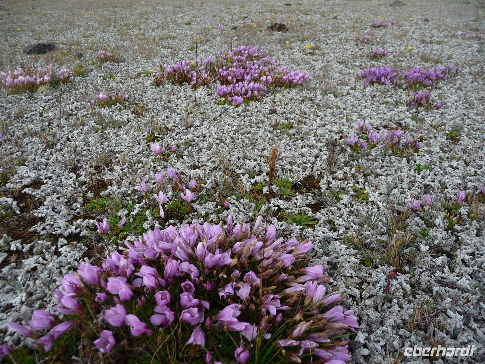 Unser Bus brachte uns auf 3.800 m und wir wanderten in ein Tal hinab. Astern, Enzian und verschiedene Flechten säumten unseren Weg. In der Ferne konnten wir Wildpferde erkennen. Es ist nicht