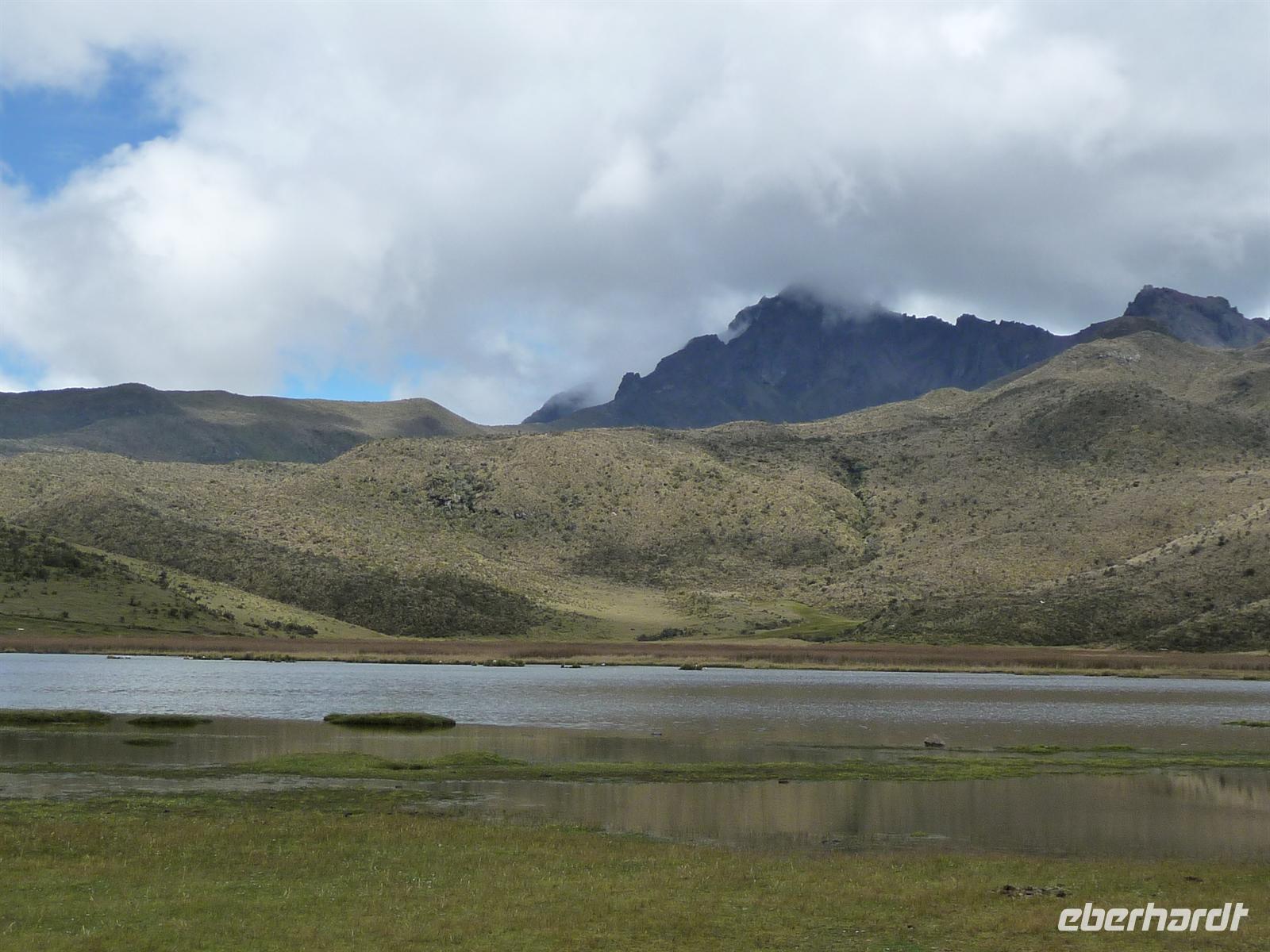 anstrengend, es machte Spaß, einen Wanderweg hinunter zu spazieren. Ein Genuss durch unberührte Natur mit dem schneebedeckten Cotopaxi im Hintergrund zu wandern! 11.00 Uhr erreichten wir die Lagune de Limpiopungo, die von zahlreichen Wasservögeln aufgesucht wird.
