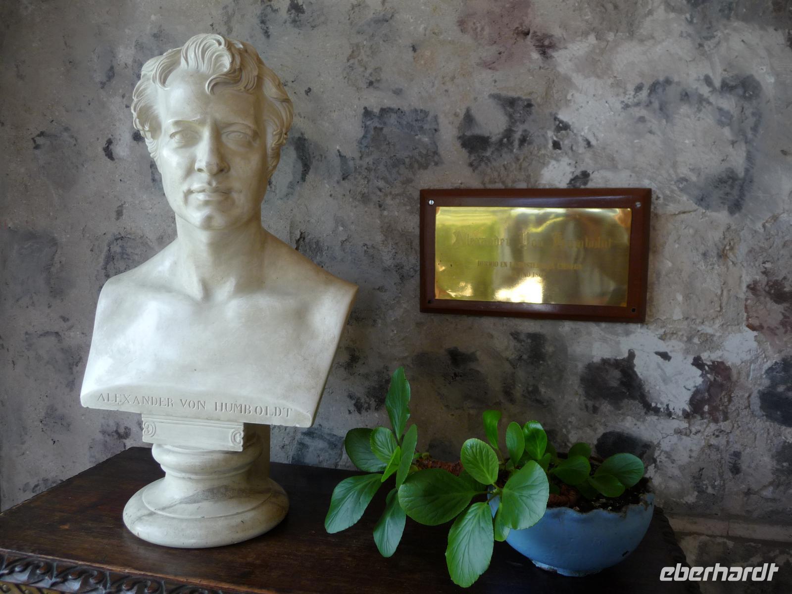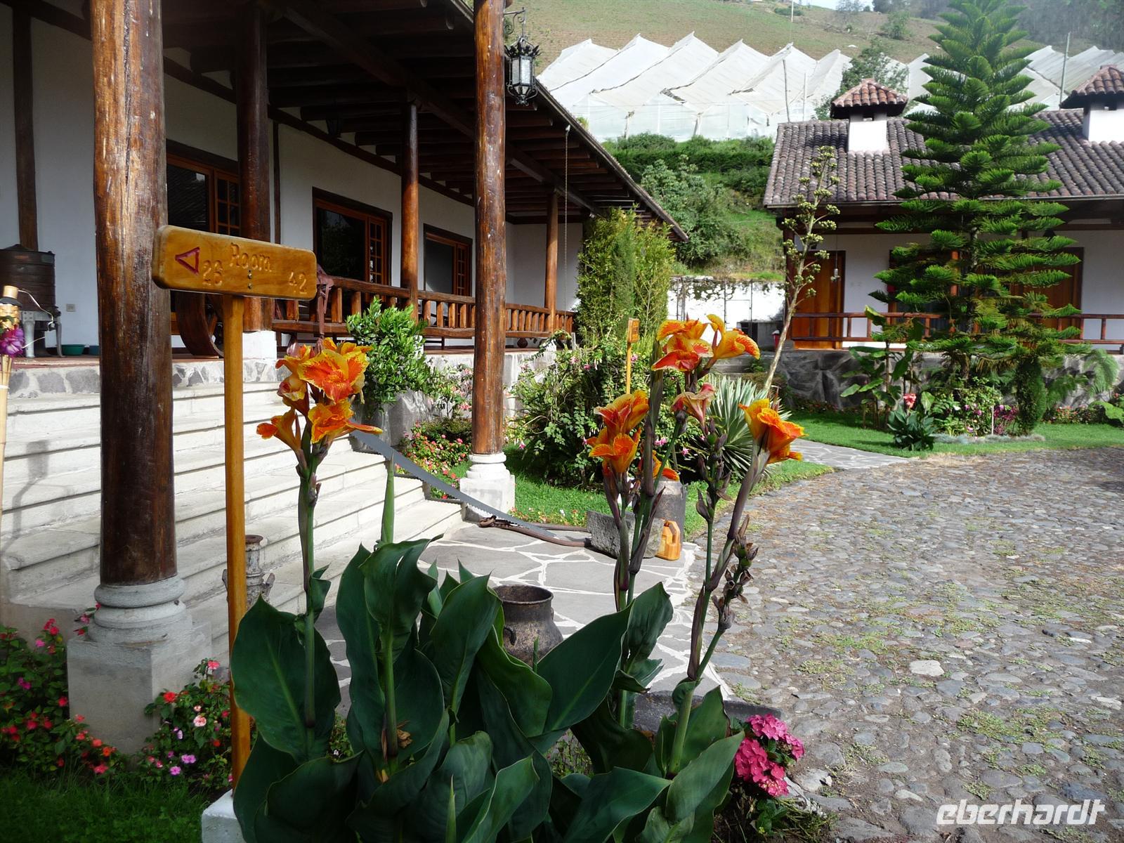 Wir besuchten das Gästehaus -La Cienega- mit herrlichem Park, in dem Alexander von Humboldt im Jahr 1802 wohnte. Er führte Studien über der Cotopaxi durch und verweilte während seines Forschungsauftrages in dem Herrenhaus La Cienega. Heute kann die Suite Alexander von Humboldt gemietet werden, sie ist mit eleganten Originalmöbeln