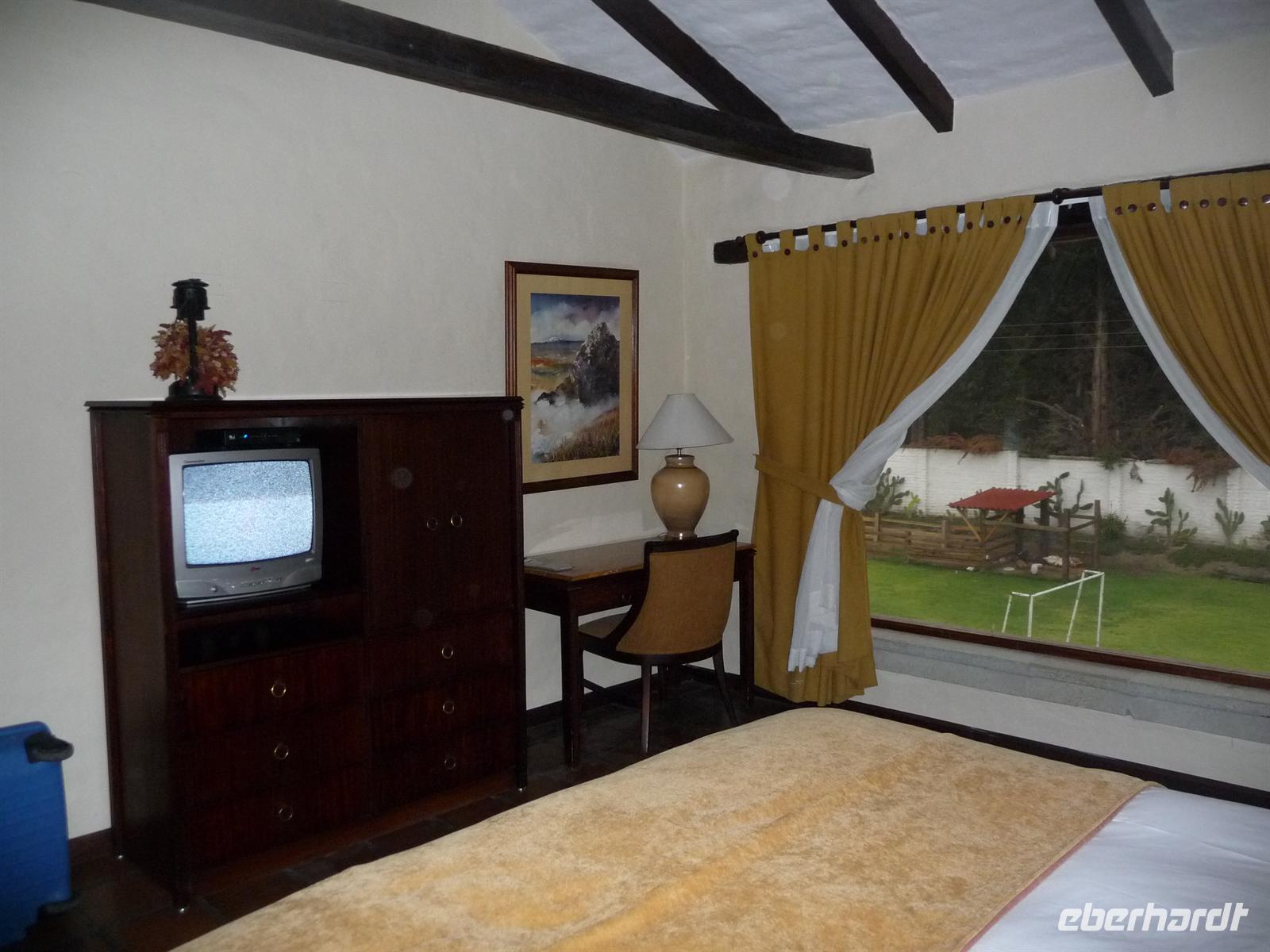 Hacienda Abraspungo in Riobamba. Sehr schöne weitläufige, gepflegte Anlage, Hängematten vor jedem Zimmer, große modern eingerichtete Zimmer. 3,5 km von Riobamba entfernt.