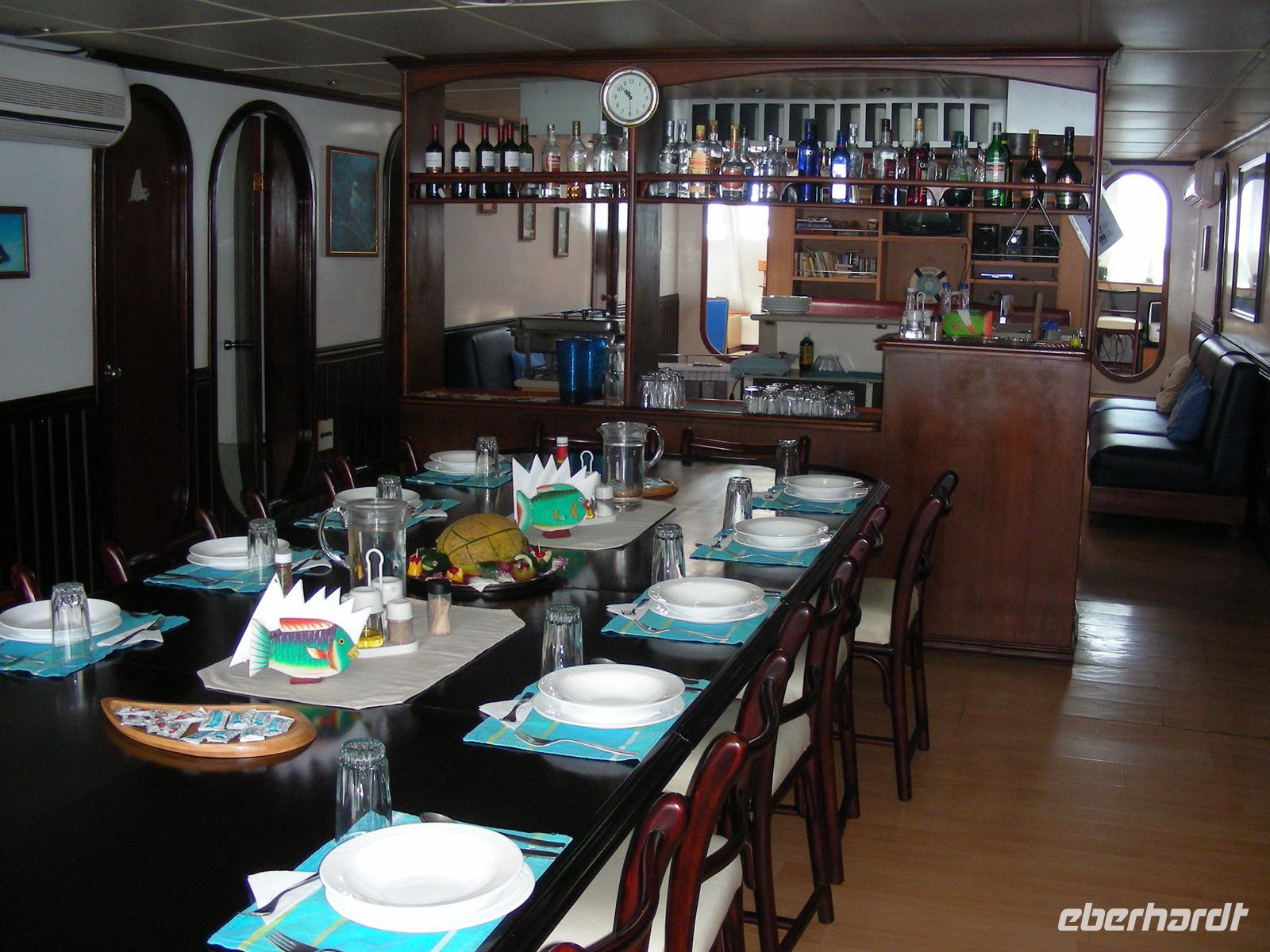 Um 07.00 Uhr brechen wir vom Hotel zum Flughafen auf und checken nach Baltra ein. Pünktlich gestartet und sanft gelandet, werden wir von Guide Dario von der „Archipel I" abgeholt. Nach dem Einschiffen, der Kabinenverteilung müssen wir an der Seenotübung teilnehmen und werden ins Schiff eingewiesen, bevor wir nach Seymour Norte ablegen.