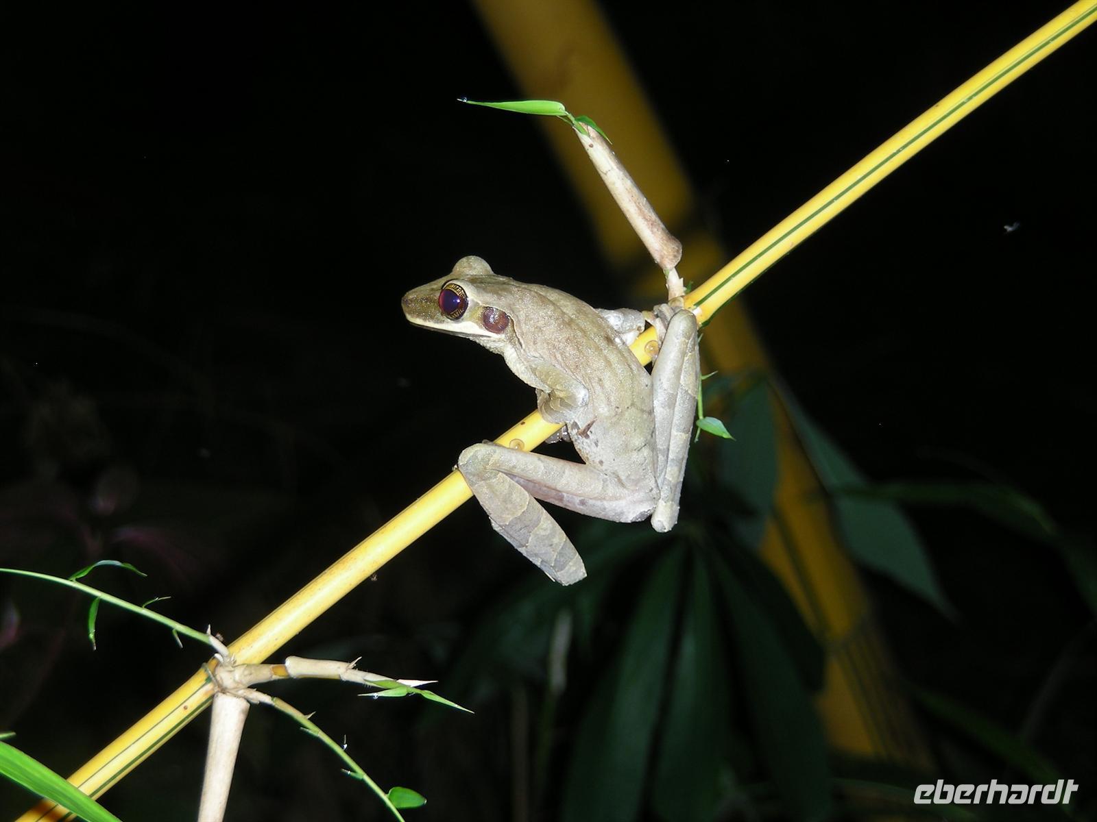 Um 7.00 Uhr brechen wir erneut zum Flughafen, diesmal jedoch nur mit Handgepäck. Alle anderen Koffer bleiben im Hotel. Doch der Flughafen ist wegen dichtem Nebel geschlossen, sodass wir mit einer Stunde Verspätung - jedoch in einer neuen TAME-Maschine - abfliegen. Der Guide Diego holt uns in Lago Agrio ab. Wir fahren ca. 3 Stunden mit zwei Rangerovern zur Brücke am Cuyabeno. Anschließend beginnt die 3-stündige Kanufahrt auf dem Cuyabeno. Dabei haben wir das große Glück 4 Affenarten, 1 Faultier, 2 Araarten, 1 Schlangenhalsvogel, blühende Bromelien und Orchideen zu sichten. Nach dem vorzüglichen Abendessen machen wir ein erster Rundgang mit Taschenlampen um die Urwaldlodge. Wir finden Wolfspinnen, Nephila, fischfressende Krabbenspinne, Baumfrösche, Glasfrosch, 2 Grabfrösche, eine Reihe von Insekten sowie eine große Geißelspinne.
