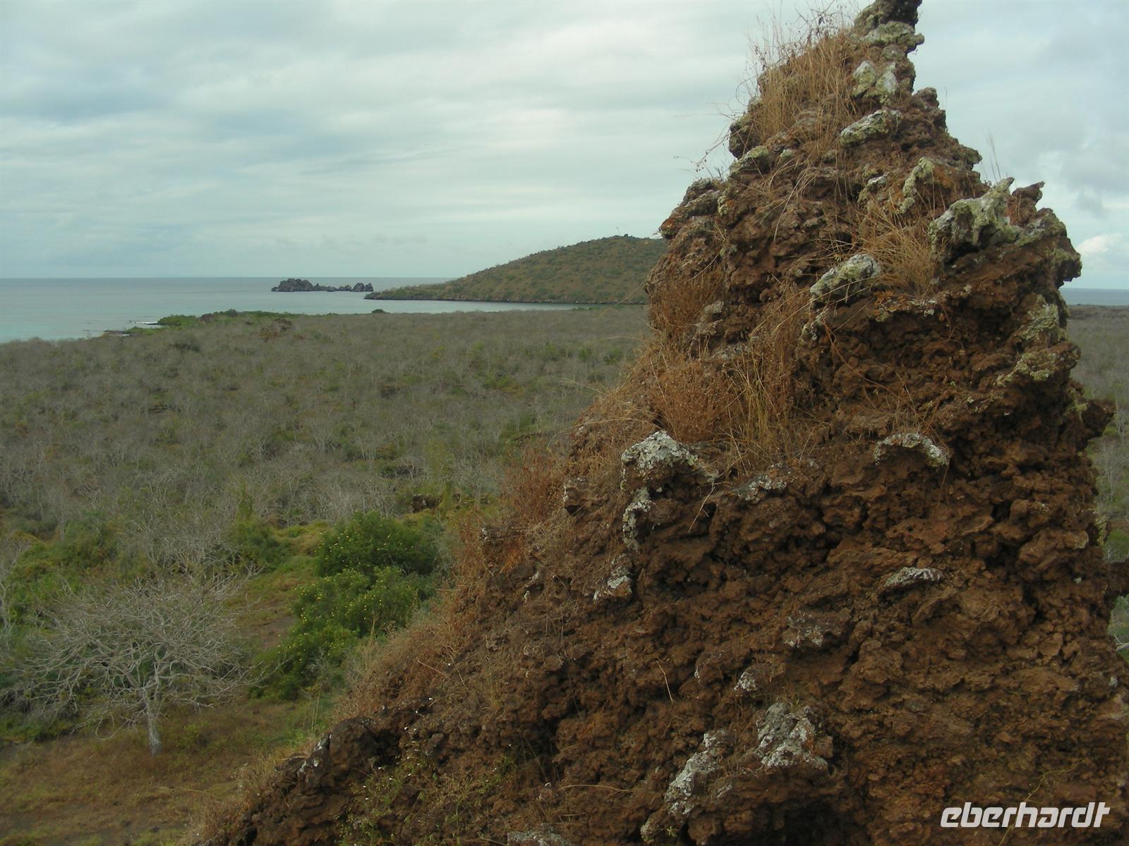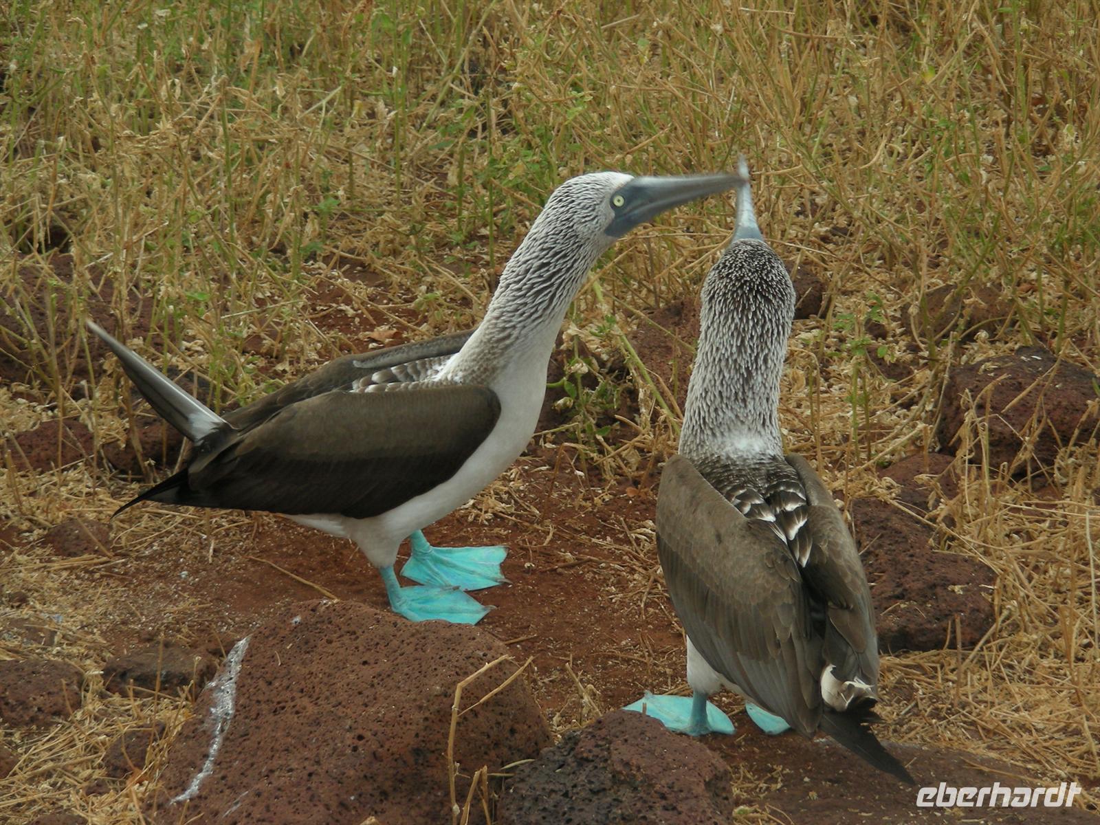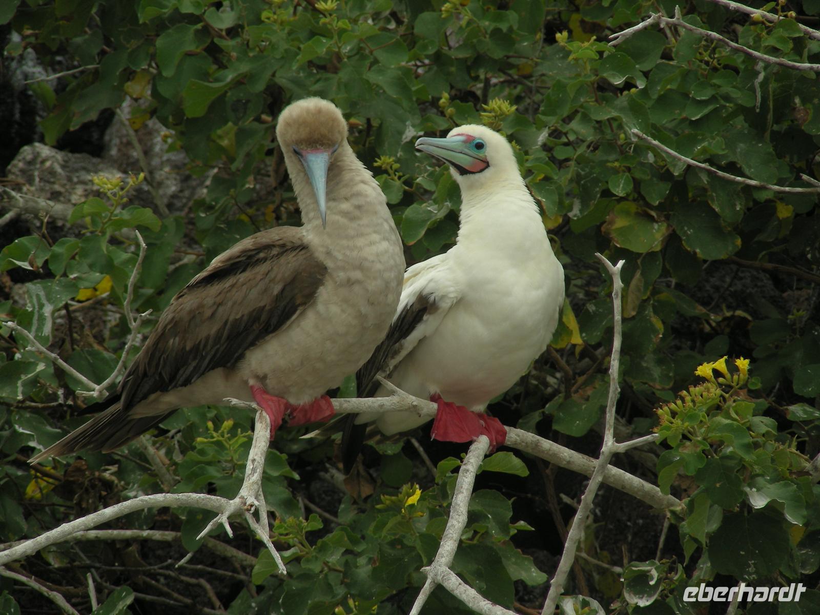 Gegen 14.00 Uhr schnorcheln wir vor der Küste. Dabei machen wir eine gute Ausbeute: Wir sehen unter anderem ein Weißspitzen Riffhai und ein Galapagoshai, Röhrenaale (!). Ungefähr gegen 16.00 Uhr booten wir wieder aus. Zurück an Land sehen wir 3 Landleguane, Seelöwen, Meeresechsen, beide Fregattvogelarten in diversen Brutstadien, eine sehr schöne Blaufußtölpelbalz vor unseren Füßen, Tauben, Finken. Etwas Garua kommt zum Schluß auf - es ist halt die Garruazeit. In der Nacht haben wir eine ruhige Überfahrt nach Genovesa.