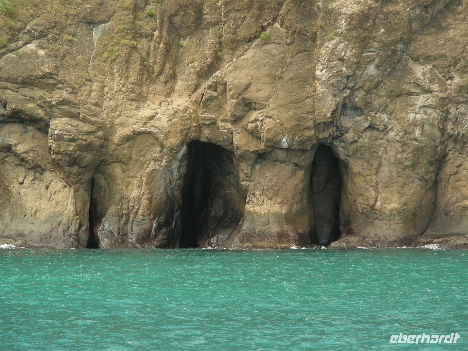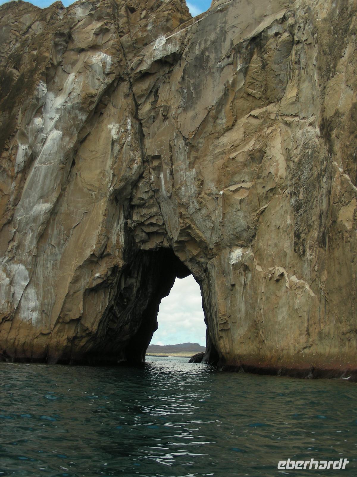 Um 14.00 Uhr booten wir an der Sullivan Bucht auf Santiago gegenüber von Bartholomé aus und nehmen den langen Weg über das Lavafeld. Die Landschaft ist spektakulär und teilweise auch beängstigend. Um 15.30 Uhr müssen wir zurück. Sofort startet unsere Fahrt nach Santa Cruz. Aufgrund rauer See verholt der Kapitän zum Abendessen in den Wind- und Wellenschatten hinter der Isla Eden. Danach fahren wir nach Santa Cruz weiter. Doch die See bleibt sehr rau.