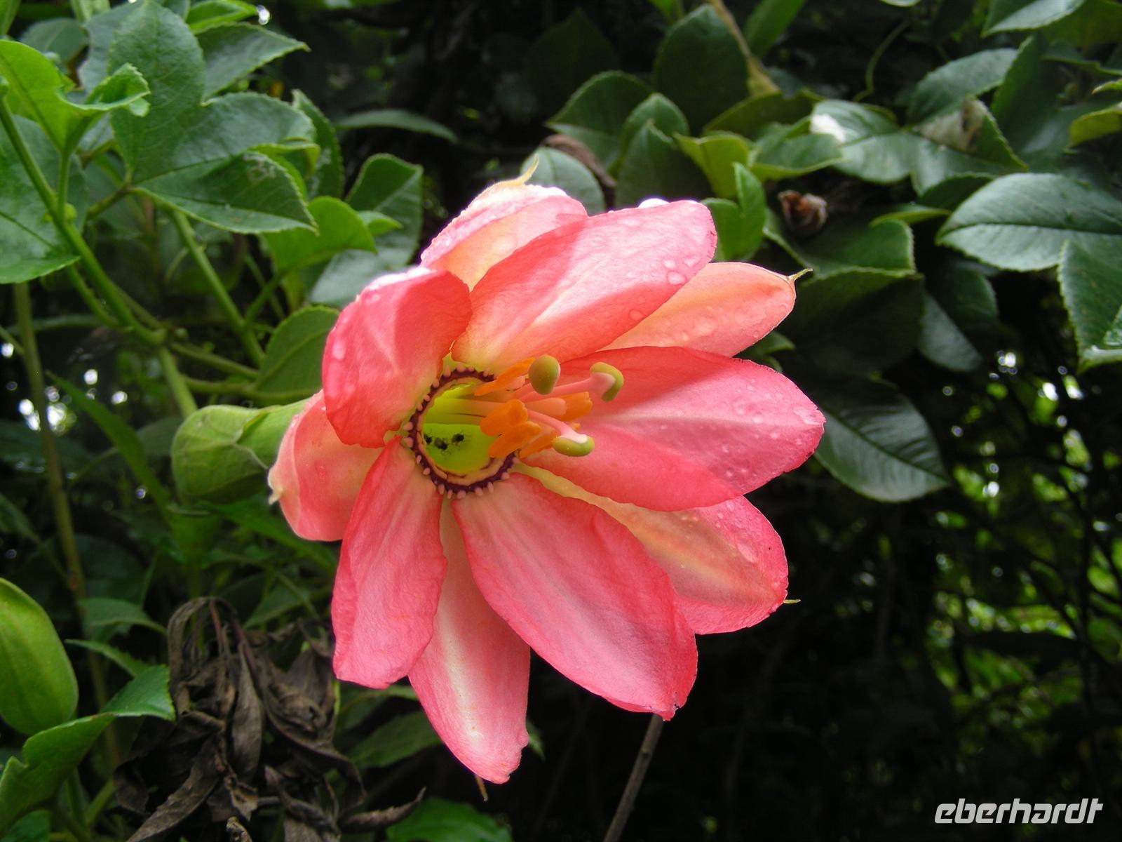 Nachts beginnt es zu regnen, der zum massivem Dauerregen wird. Um 09.00 Uhr brechen wir trotzdem mit dem Kanu auf. Über eine Lagune gelangen wir zu dem Wald, in dem wir trotz Regen bis 13.00 Uhr wandern, denn wir haben alle Gummistiefel und Regenponchos. Die Wanderung ist spannend und hoch interessant. Diego demonstriert anschaulich Pflanzen und deren Nutzung: z.B.Ameisen als Insektenrepellent, Flechten von Pflanzenrucksack, Kletterhilfen.