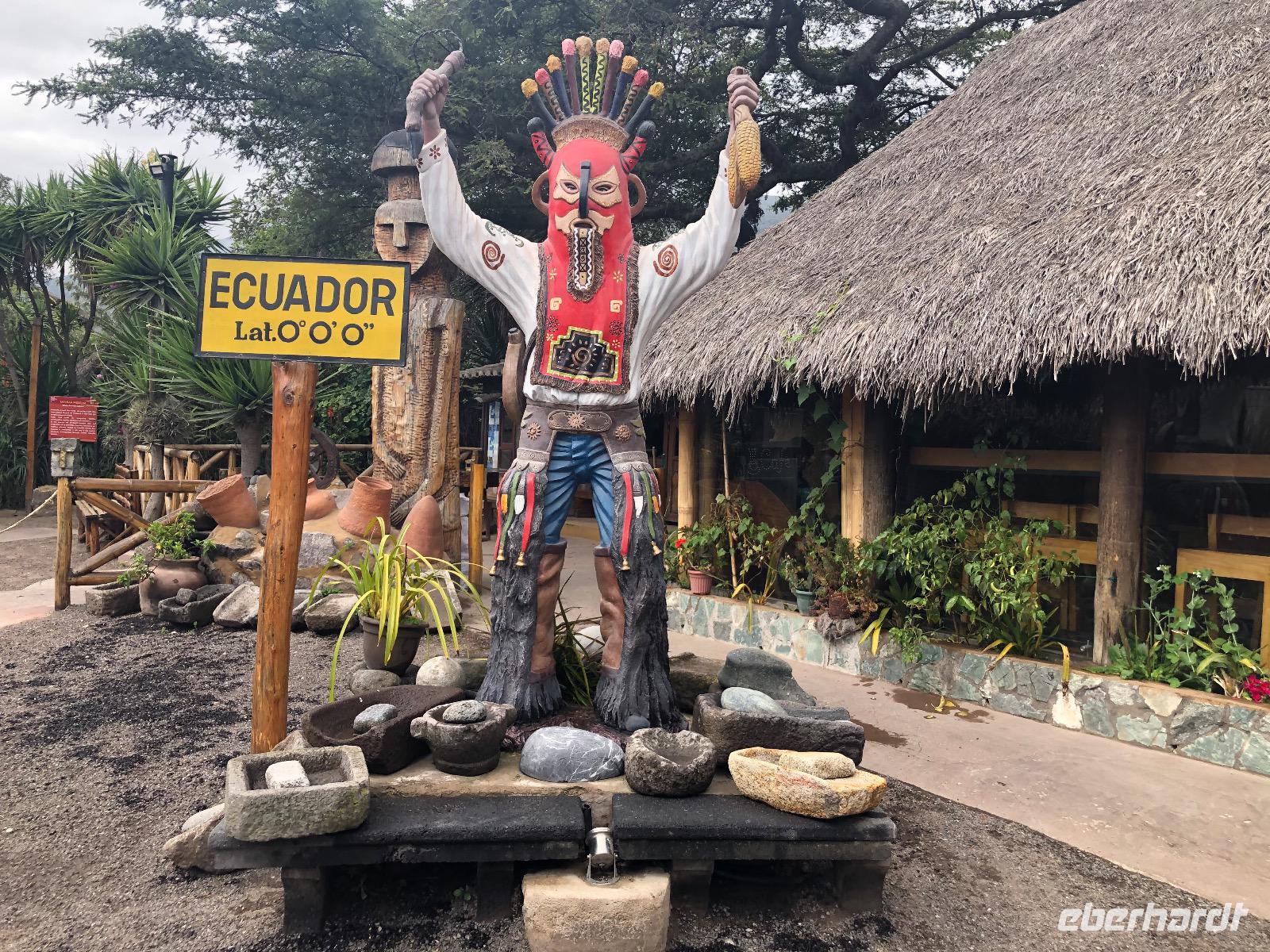 Im Museo del Sitio Inti Nan - kurz Solarmuseum genannt, befinden wir uns nicht nur am exakten geografischen Äquator, sondern können außerdem Exponate der indianischen Kultur im Amazonasgebiet anschauen. Ein bisschen gruselig ist es schon, die Anaconda, Tarantel und Schrumpfköpfe zu sehen. Andererseits - es ist eben auch eine Lebensweise auf unserem Planeten. An der Äquatorlinie gibt es viel zu fotografieren und viele Experimente. Mit Engagement und Spaß sind wir dabei, als uns Linda die Besonderheiten anschaulich demonstriert.