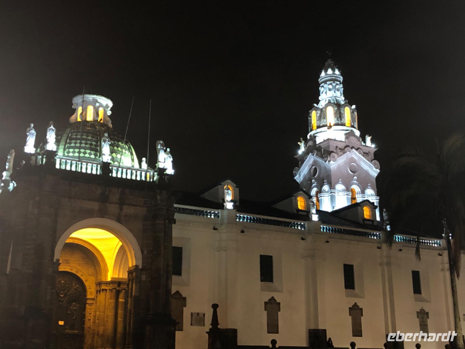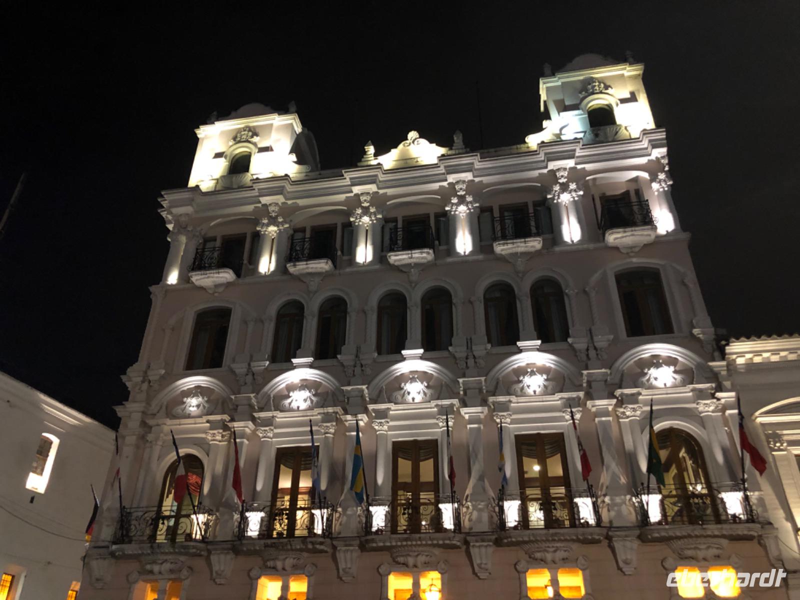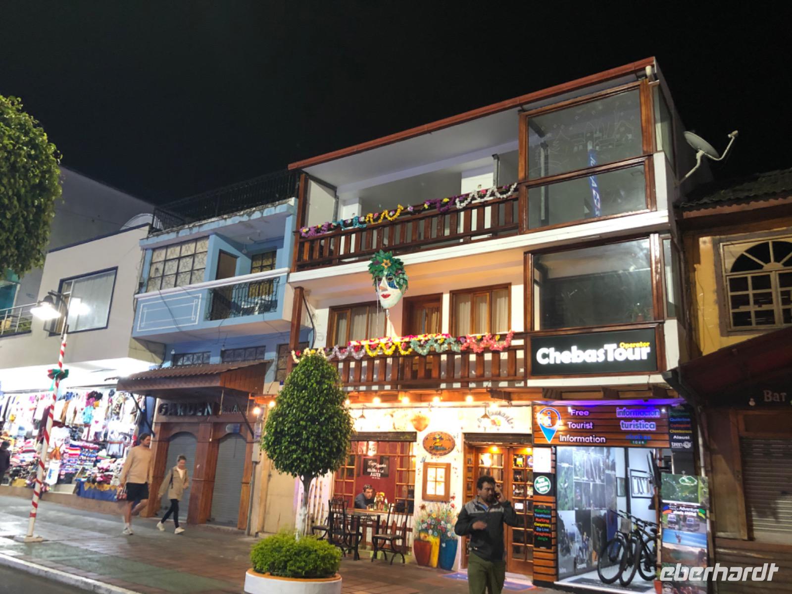 Nach einem kurzen Frischmachen treffen wir uns in der Lobby. In zehn Minuten zu Fuß erreichen wir den zentralen Platz Foch. Hier gibt es eine große Auswahl an Restaurants, Diskotheken und Bars. Wir entscheiden uns für das erste Restaurant an der Ecke, das sich als Inder entpuppt, was aber zweitrangig ist, denn wir wollen nur ein Bierchen trinken und uns kennen lernen. Eberhardt TRAVEL lädt zum Begrüßungsgetränk ein und bei netten Gesprächen klingt der erste Abend in Ecuador aus.