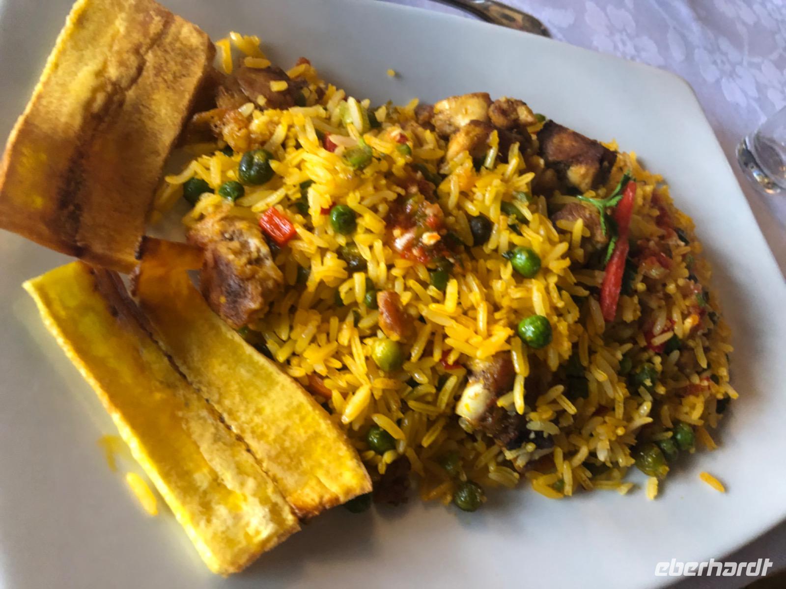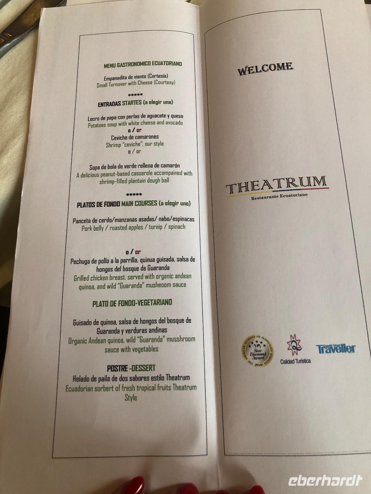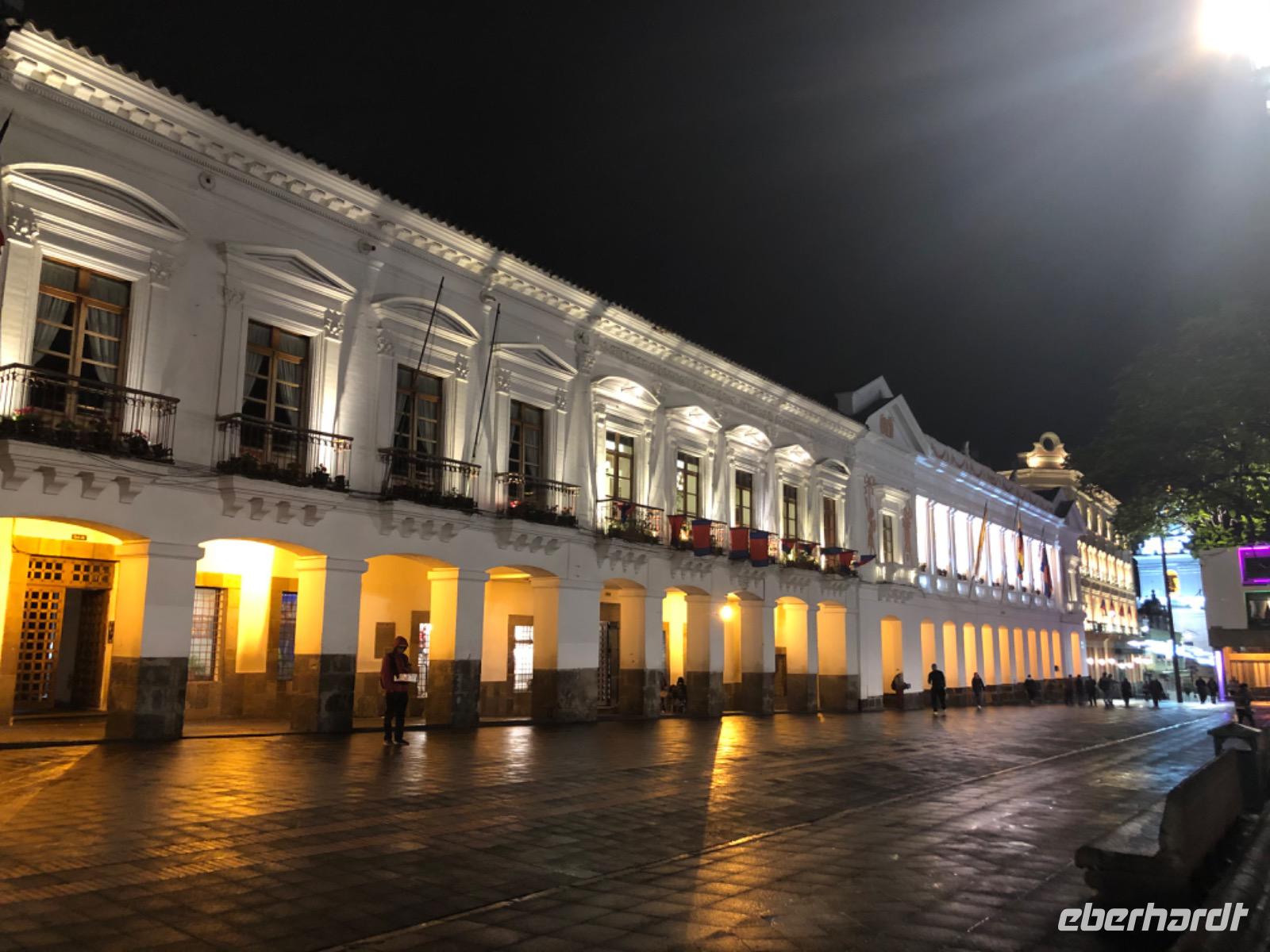Nach einem kurzen Frischmachen treffen wir uns in der Lobby. In zehn Minuten zu Fuß erreichen wir den zentralen Platz Foch. Hier gibt es eine große Auswahl an Restaurants, Diskotheken und Bars. Wir entscheiden uns für das erste Restaurant an der Ecke, das sich als Inder entpuppt, was aber zweitrangig ist, denn wir wollen nur ein Bierchen trinken und uns kennen lernen. Eberhardt TRAVEL lädt zum Begrüßungsgetränk ein und bei netten Gesprächen klingt der erste Abend in Ecuador aus.