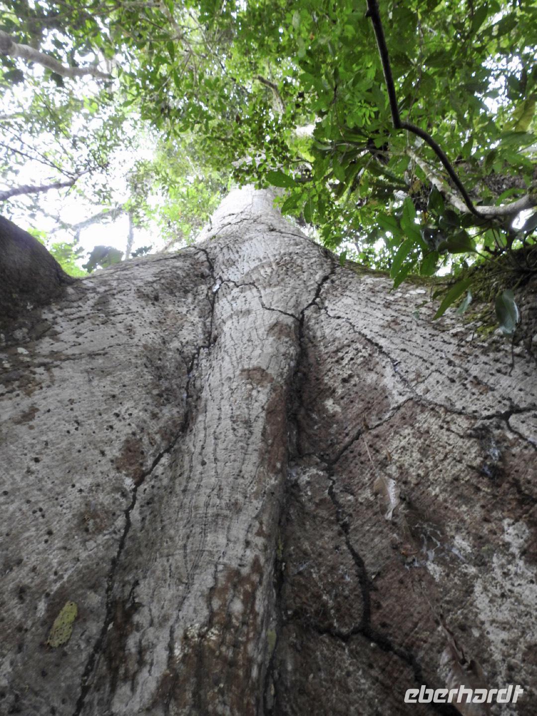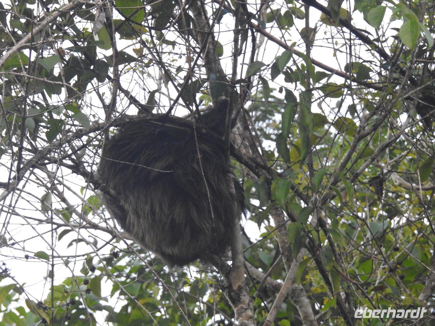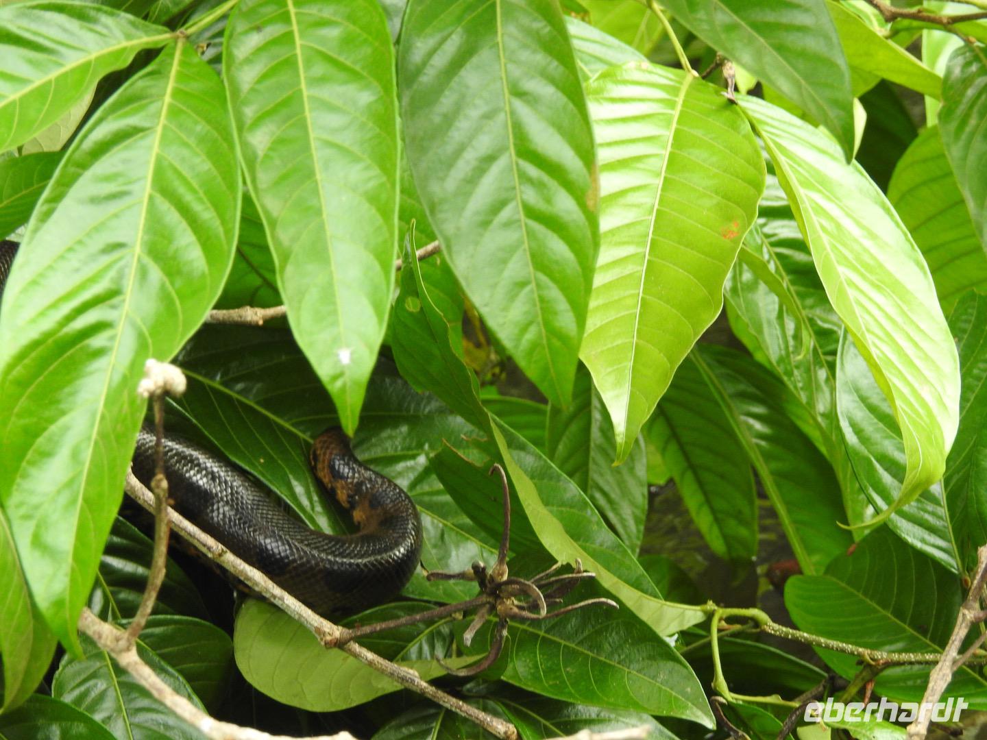Am Vormittag fahren wir mit dem Boot in die andere Richtung. Wir lassen uns Zeit und uns gelingt es nun auch, selbst Vögel, Affen und andere Tiere auszumachen. Unser Blick hat sich geschärft. Im dichten Ufergestrüppt sonnt sich eine kleine Boa, die Fauchhühner schauen nach wie vor etwas irritiert aus der Wäsche. Ein Faultier liegt faul in den Ästen und so vergeht die Zeit. Mittags steigen wir kurz aus, um die riesigen Kapok Bäume zu bewundern. Hier nehmen wir auch unser Picknick ein, es gibt Reis und Bohnen.