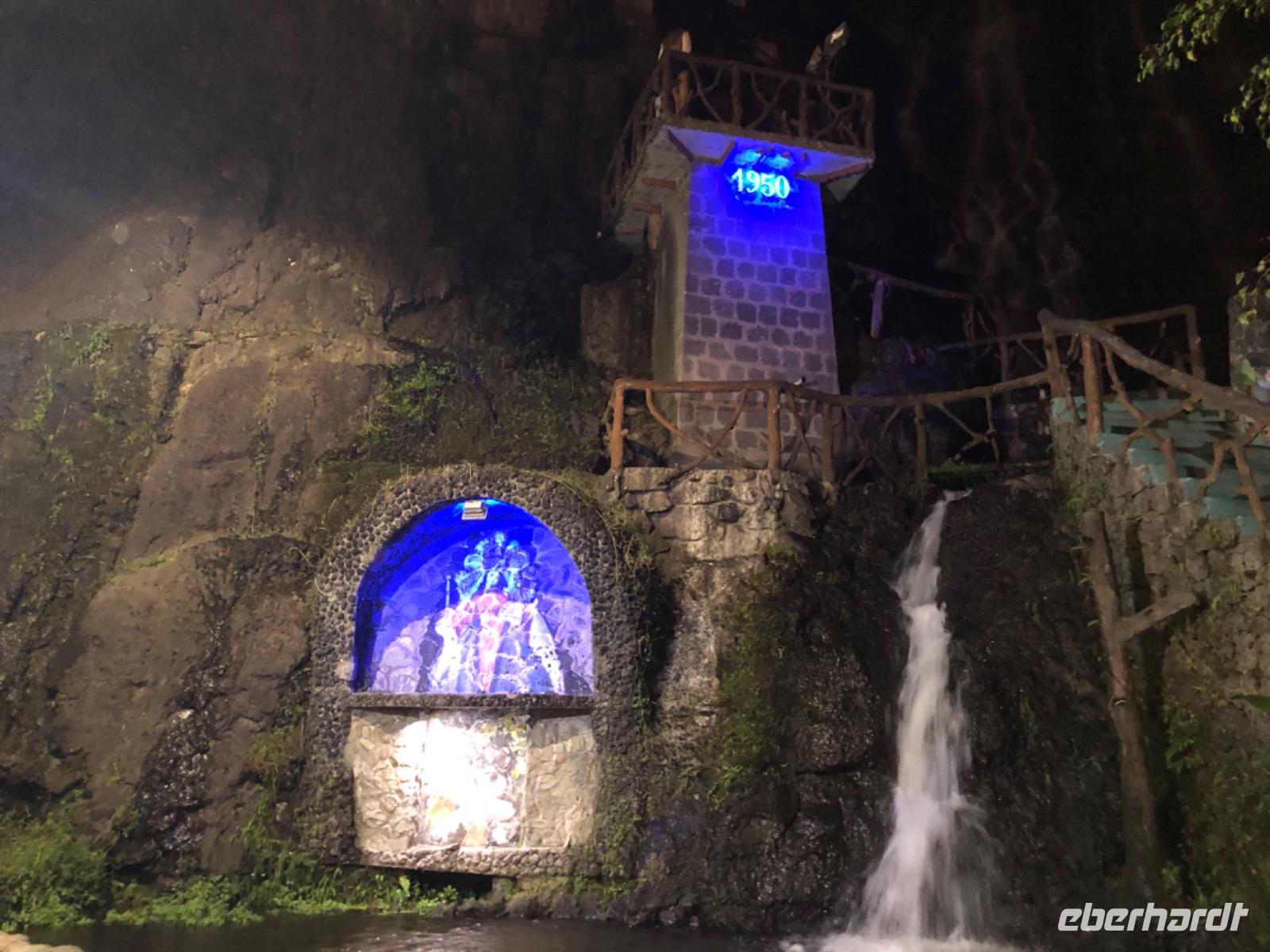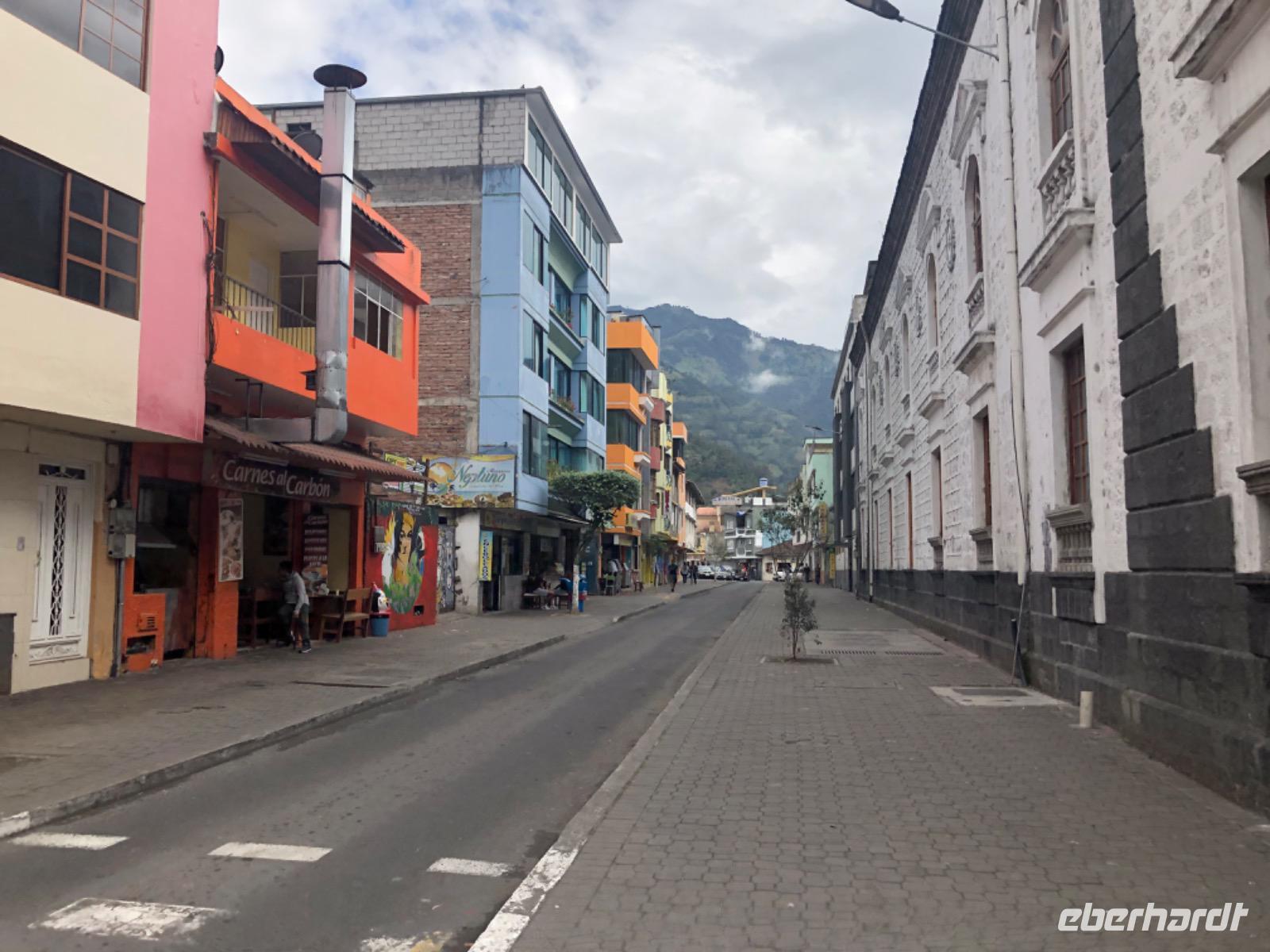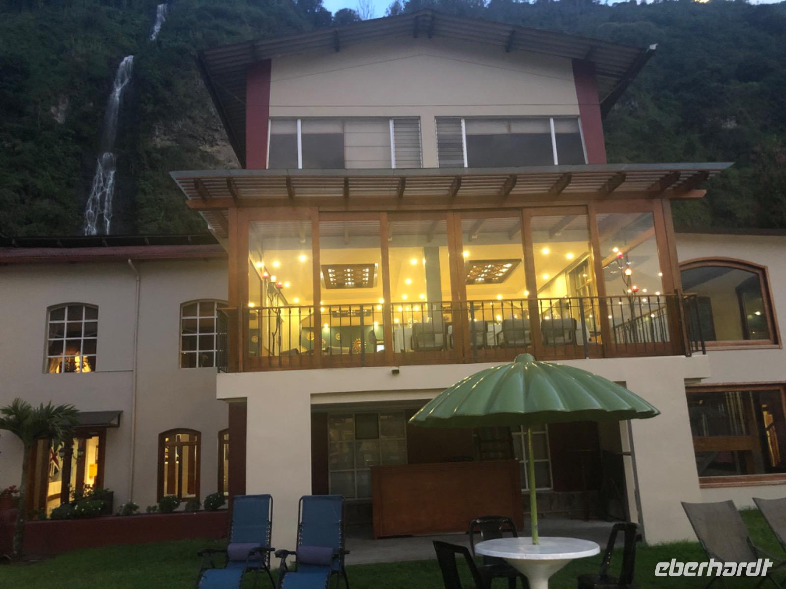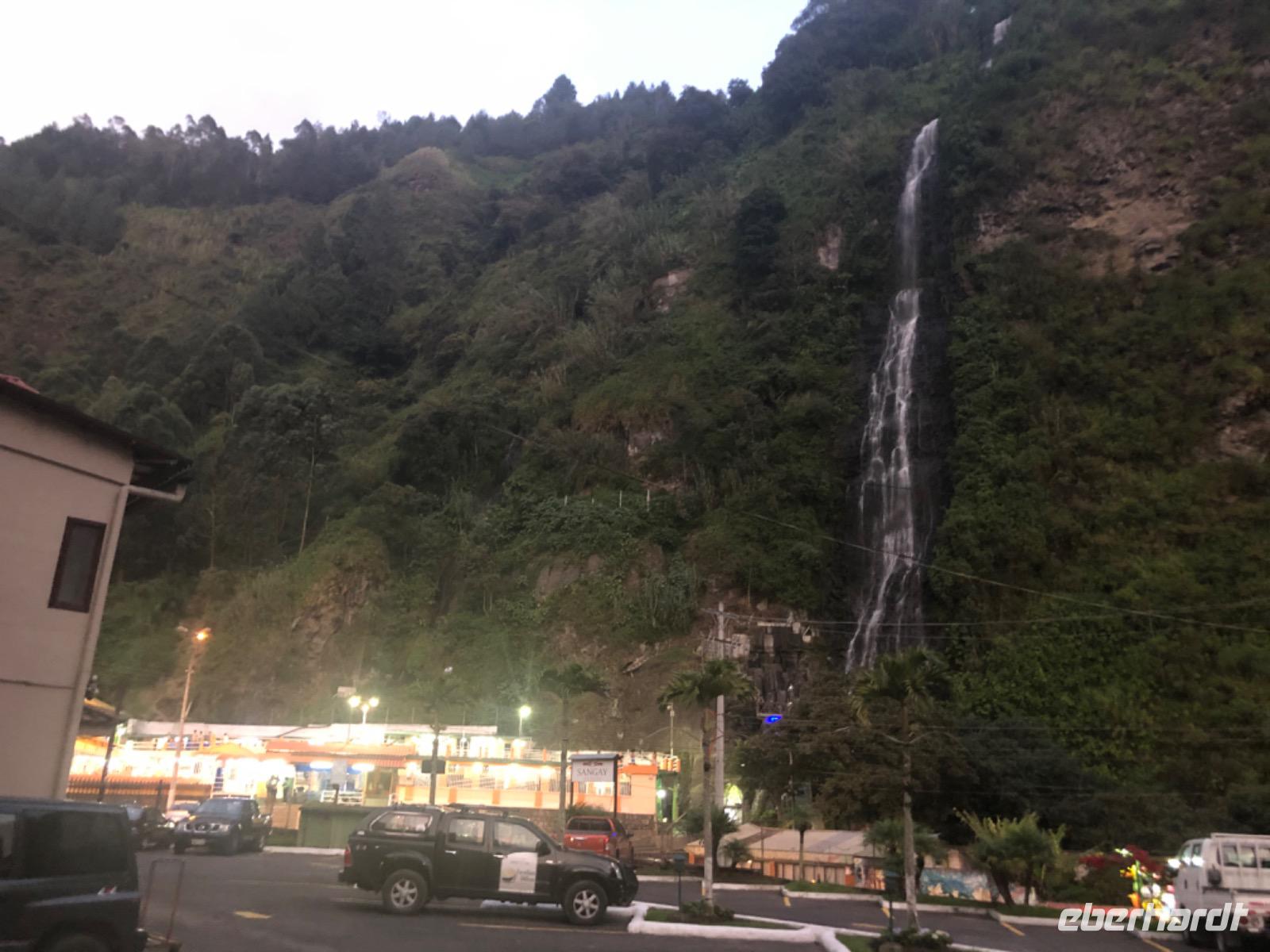 Bevor wir zum Hotel fahren, besuchen wir noch den Wasserfall von Banos. Im Hotel gibt es liebevoll zubereitetes Abendessen, vor allem die Vorsuppe und die Nachspeise sind erwähnenswert. Im Anschluss daran unternehmen wir einen Spaziergang ins Ortszentrum. Gegenüber vom Hotel befindet sich das öffentliche Bad, das wir eigentlich besuchen wollten. Aber: um 18 Uhr gab es frisches Wasser und fast einhundert Leute standen an. Auch jetzt ist es noch rappelvoll. Vom Brunnen der heiligen Maria laufen wir zum Zentrum bis zur beleuchteten Kirche. Von hier aus gibt es viele Straßen mit jungen Leuten und viele kleine Läden und Cafés.