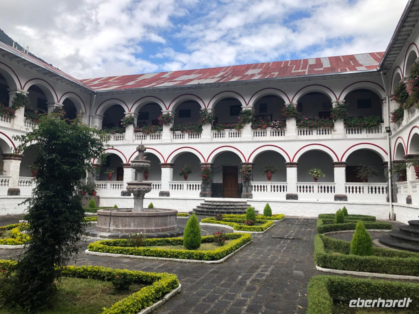 Nächstes Ziel sind die Ruinen von Ingapirca, jedoch sind diese wegen Corona geschlossen. Wir setzen unsere Fahrt fort und kommen nach Cuenca. Unser Hotel Los Balcones liegt direkt im historischen Stadtkern in einer schmalen Gasse. Als unser Bus hält, ist die Straße verstopft und die Autos hinter uns müssen warten, bis unsere Koffer ausgeladen sind.