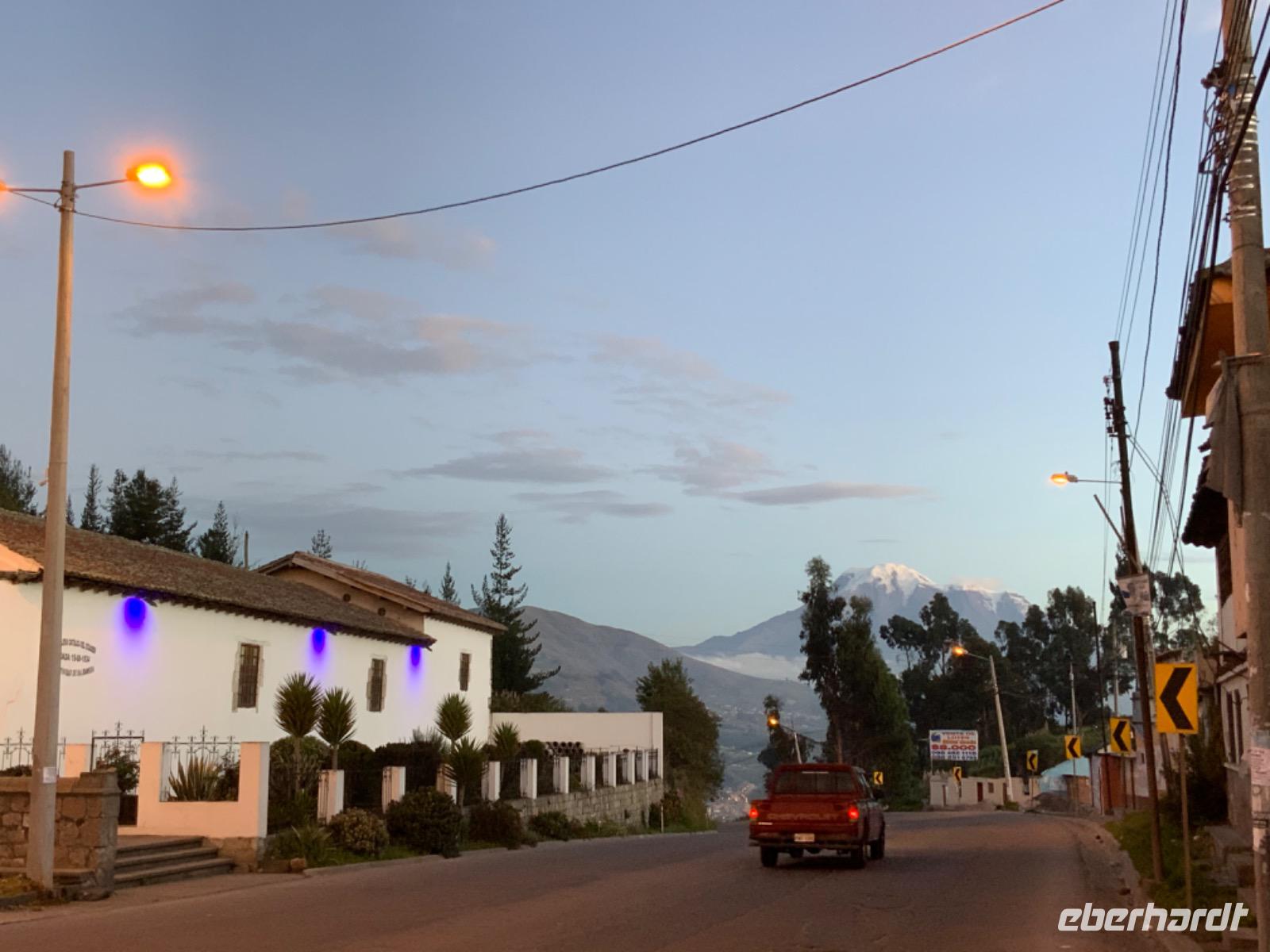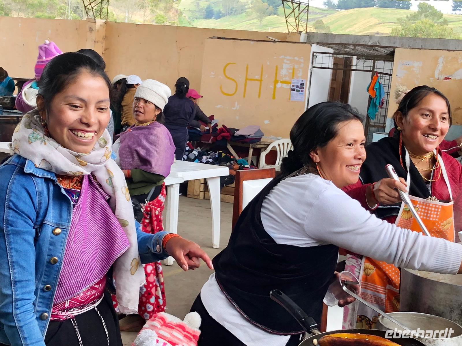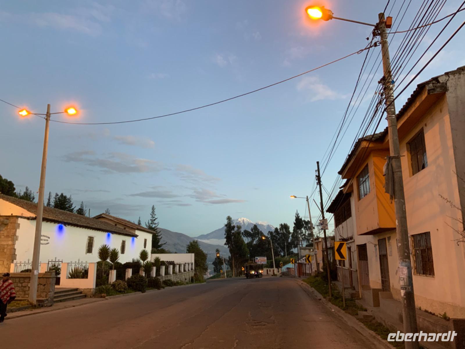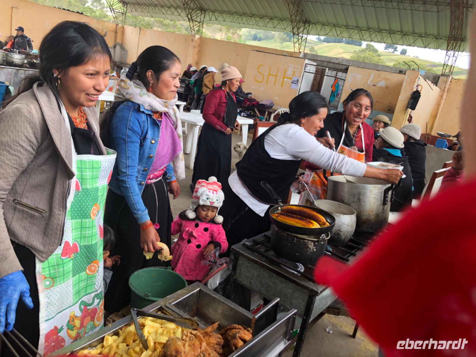 Wir machen uns jetzt auf den Weg zum Chimborazo. Unterwegs durchqueren wir einige Dörfer und kommen an Großmärkten vorbei. Wir sind in einer Region, die reich an Obst und Gemüse ist. An einem Markt, der nur von der indigenen Bevölkerung besucht wird, halten wir an. Wir sind hier die Außerirdischen, Gringos verlaufen sich nur selten hierher. Man beäugt sich gegenseitig und wir versuchen, unauffällig ein paar Fotos zu erhaschen. Ich glaube, die Leute waren froh, als wir wieder weg waren. Wer lässt sich schon gern von Touris beim Mittagessen zusehen (und fotografieren).