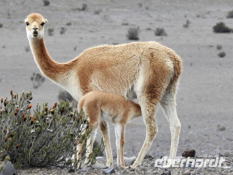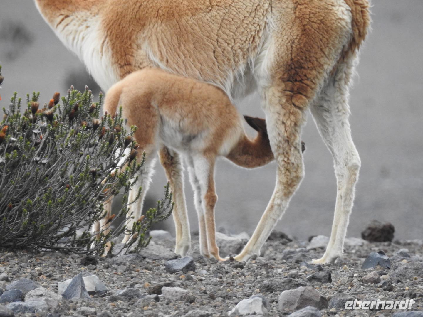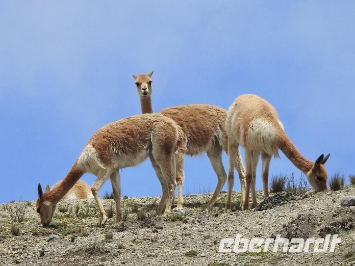Immer weiter fahren wir Richtung Chimborazo. Außer Kühen sind nun auch Lamas und Vicunas am Straßenrand zu sehen. Klar, dass wir einen Fotostopp einlegen. Gegen 14 Uhr erreichen wir auf 4800 Metern Höhe die Schutzhütte Carell, benannt nach einem der Bergsteiger, der mit Edward Whymper den Berg zuerst bestiegen hat. Wir stärken uns mit einem Coca-Mate Tee für den Aufstieg zum Gipfel, der sich 200 Meter höher befindet. Mehr als die Hälfte unserer kleinen Gruppe bewältigt den Anstieg. Und darauf könnt Ihr stolz sein!