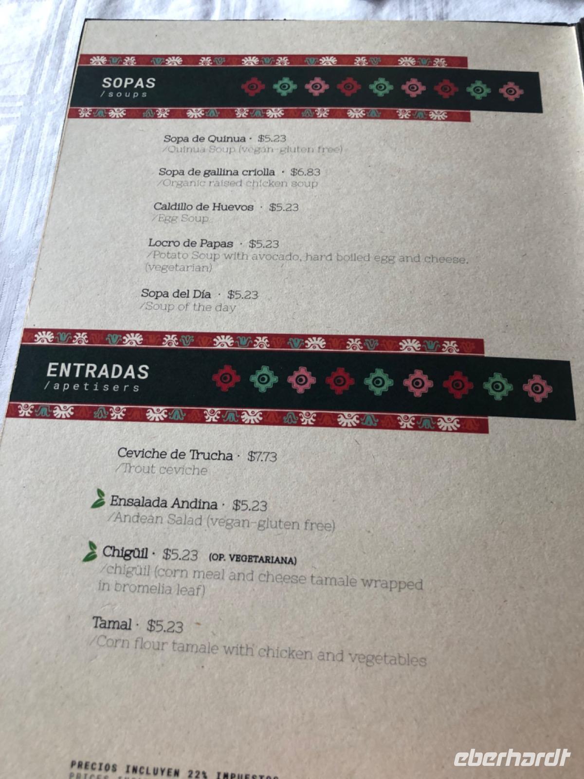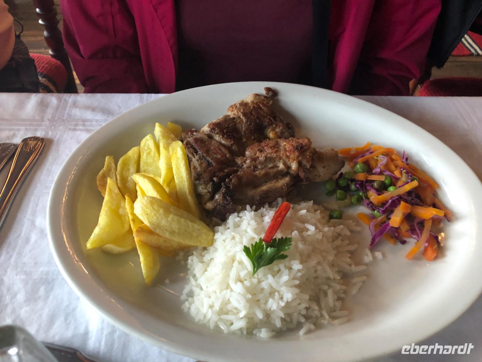 Zum Mittagessen kehren wir in die gemütliche Posada Ingapirca ein. Wir dürfen von der Karte wählen. Trotz aller Bemühungen kommt es wieder zu einem Missverständnis und es werden zuerst falsche und dann zu wenig Gerichte serviert. Macht nichts. Alle sind freundlich und Zeit haben wir auch.