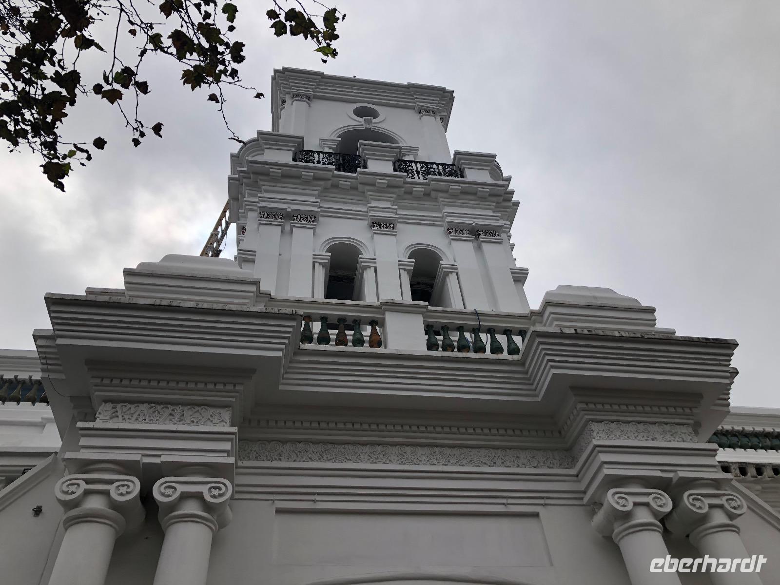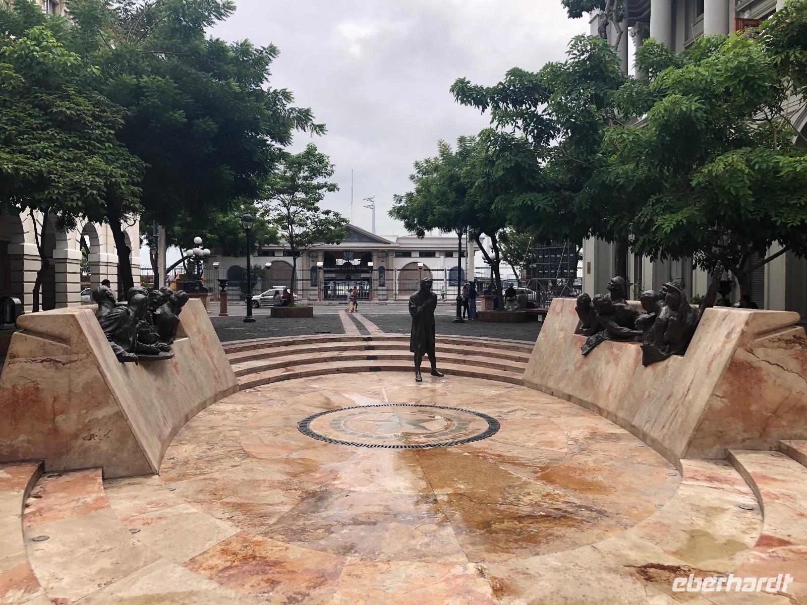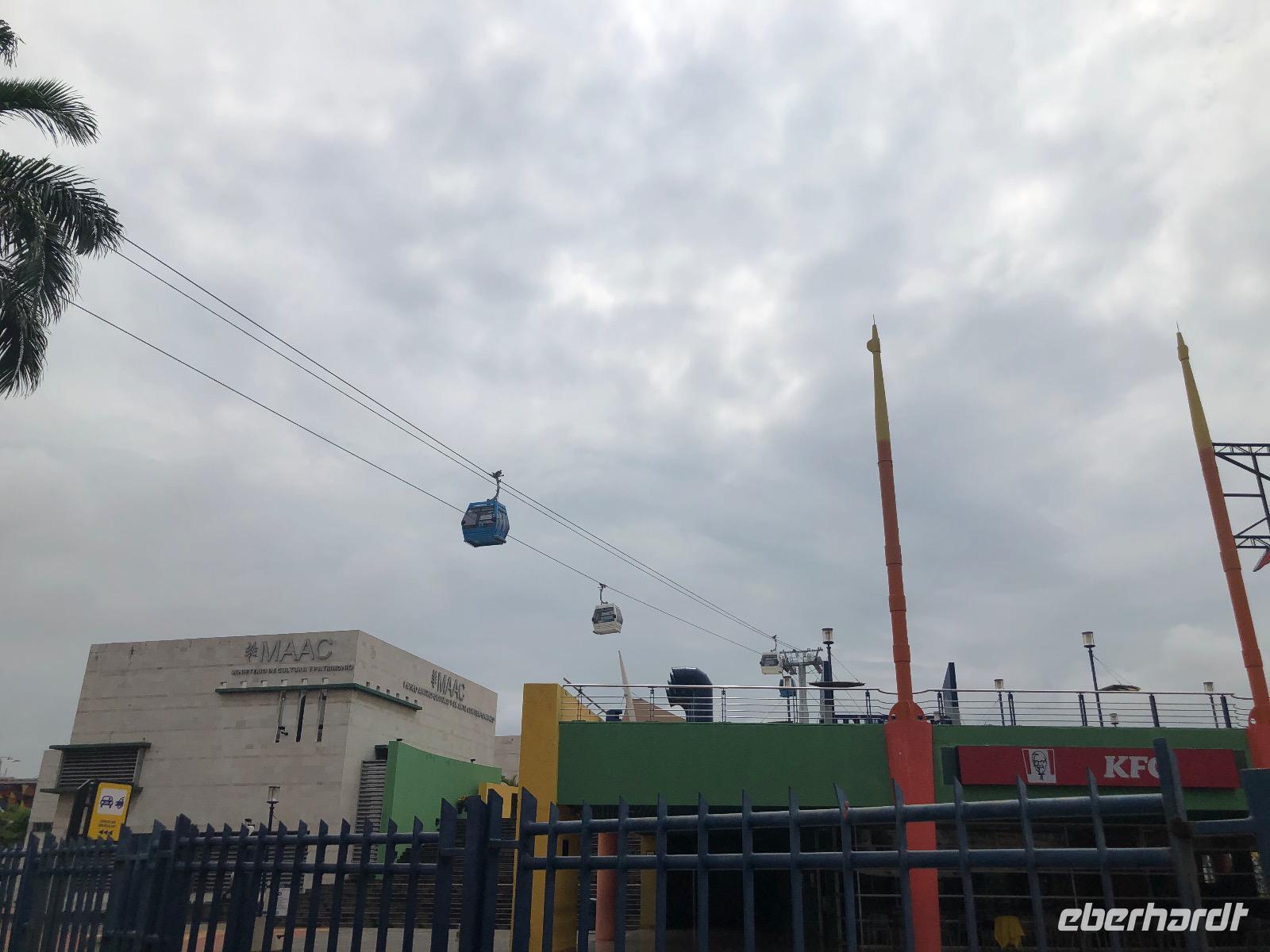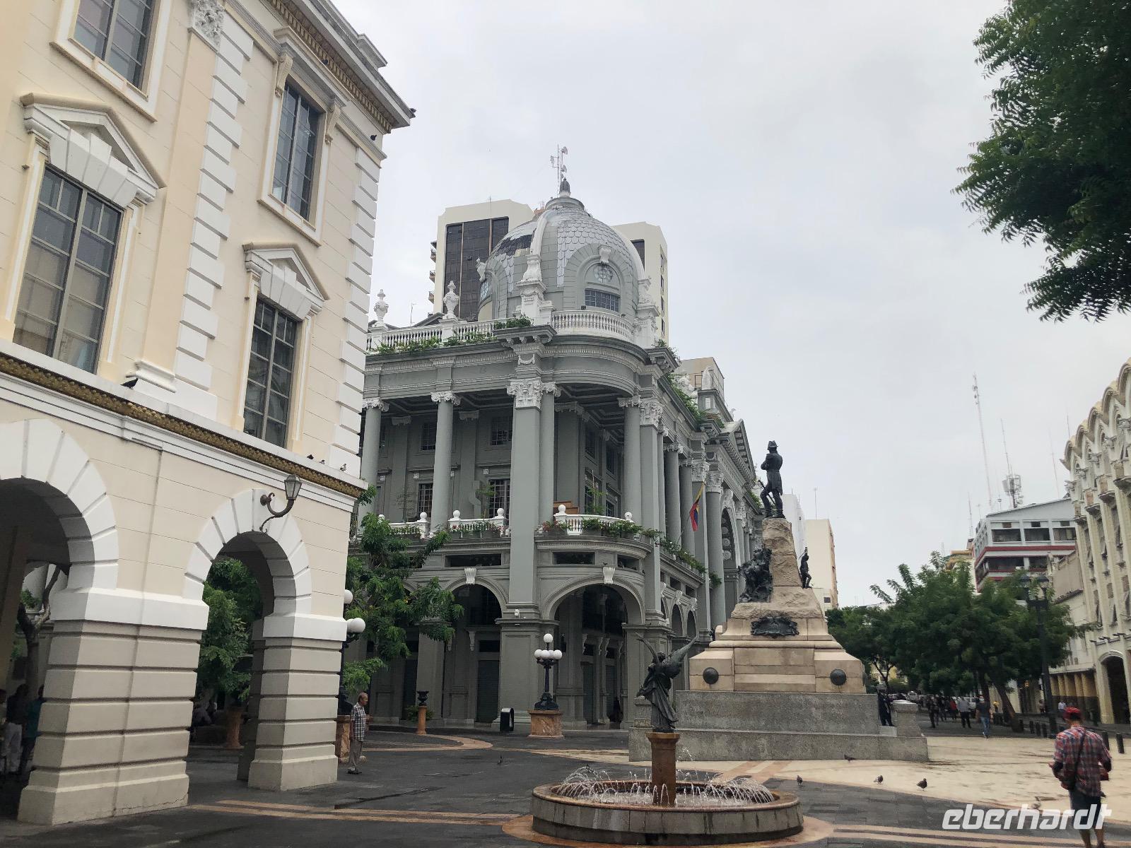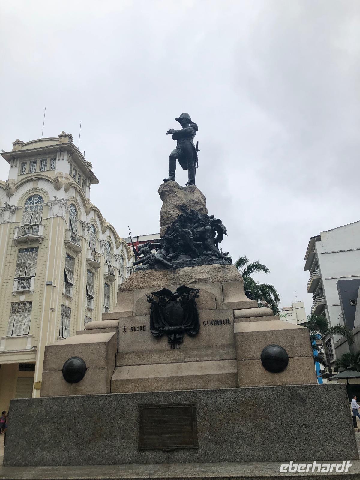 Der Flug geht erst abends und so nutzen wir die Zeit zu einem großen Spaziergang durch Guayaquil. Vorbei geht es an der Universität zum Denkmal für Sucre, einem der Freiheitskämpfer von Ecuador. Wir laufen entlang des Malecon2000, der sonst so belebten Strandpromenade, die aber nun wegen Corona geschlossen ist. Am Ende des Malecon entdecken wir eine Seilbahn, die über den Fluss führt und so neu ist, dass nicht einmal Linda sie kannte. Noch befindet sie sich aber im Probebetrieb. Wir erreichen den Hügel Santa Ana und bewältigen 444 Stufen. Überall sind hier kleine Restaurants, Cafés und Bars und alle sind geschlossen. Wir sind die einzigen Touristen hier. Trotzdem besuchen wir, vom Hügelchen zurück gekehrt, das Künstlerviertel mit seinen pastellfarbenen Häusern. Auch hier ist kein Mensch zu sehen. An einem Café wird die Leuchtreklame abmontiert. Corona möchte hier keiner mehr heißen.