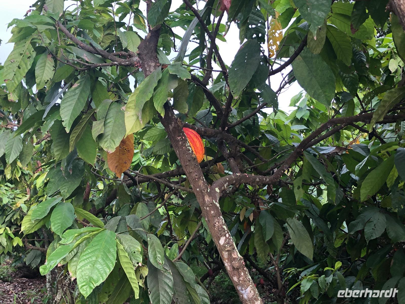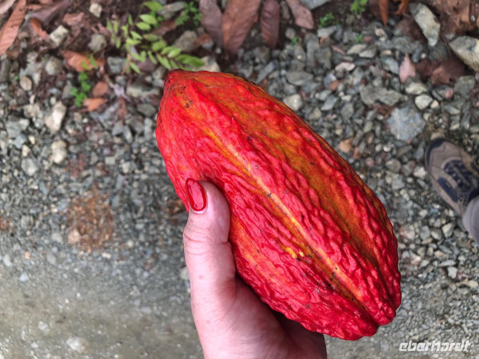 Am späten Nachittag besuchen wir eine Kakaoplantage. In Naranjal, etwas abgelegen von der Hauptstraße beschäftigt sich eine ganze Familie mit dem Anbau von Kakao und der Herstellung von Schokolade und anderen Produkten aus Kakao. Wir dürfen kosten und kaufen. Interessant wird es, als wir angehalten werden, selbst einmal Schakolade herzustellen. Auf einer Pfanne werden Kakaobohnen geröstet. Wir dürfen mit einem Holzlöffel rühren und anschließend die heißen gerösteten Bohnen schälen. Nun werden die Bohnen gemahlen und das Pulver mit Wasser und Zucker gemischt. Ja, so ein selbst hergestellter Kakao ist schon etwas Besonderes.