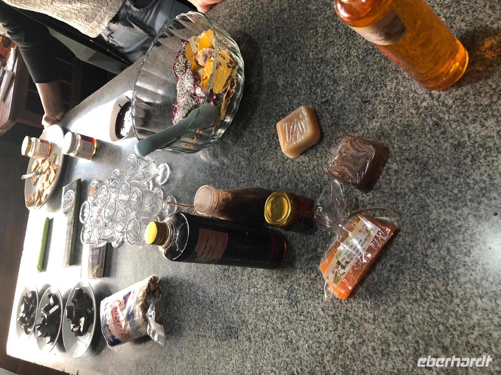 Während wir anschließend auf Walter und den Bus warten, entdecken wir ein Süßwarengeschäft, dessen Inhaber gerade eine Karamell-Zuckerrohr Masse für die Herstellung von Bonbons vorbereitet. Es ist ihm sichtlich peinlich, von uns fotografiert zu werden, aber er kann ja nicht weg. Walter erlöst ihn von uns als er mit dem Bus eintrifft.