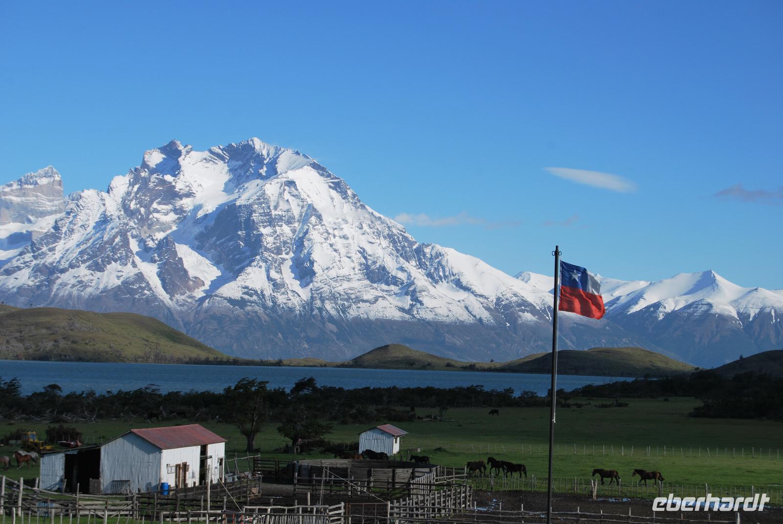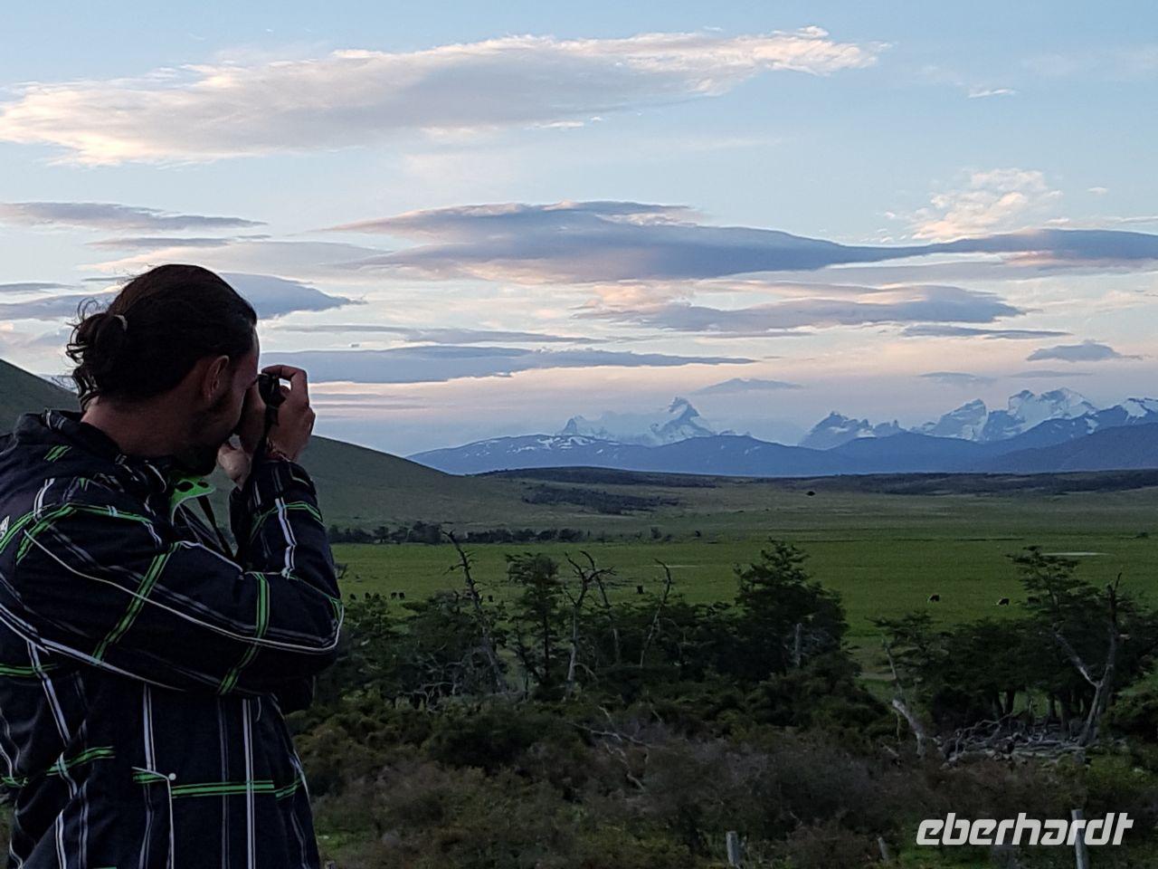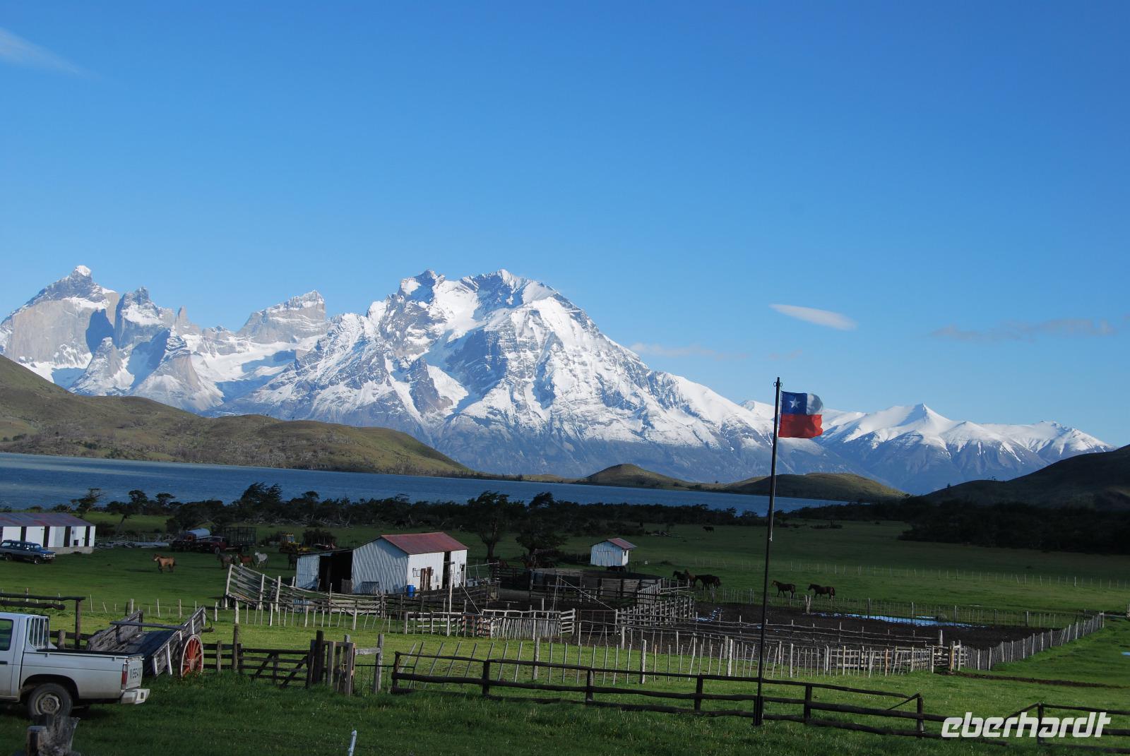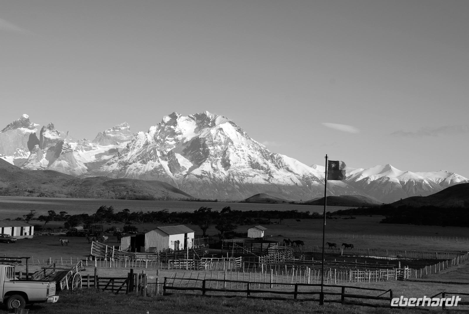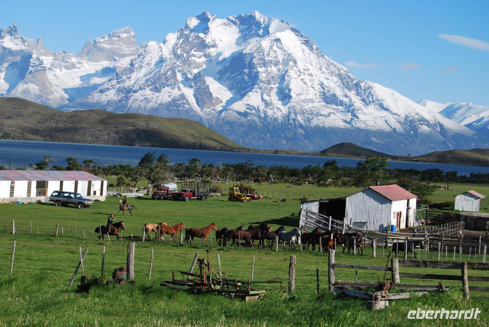 Der Morgen war klar. Das gewaltige Bergpanorama begrüßte uns zum Frühstück. Die fleißigen Gauchos waren wieder dabei die wilden Pferde von der weitläufigen Weide in das Gatter zu treiben. Ein wahrlich schöner Anblick - wie in einem guten Western.