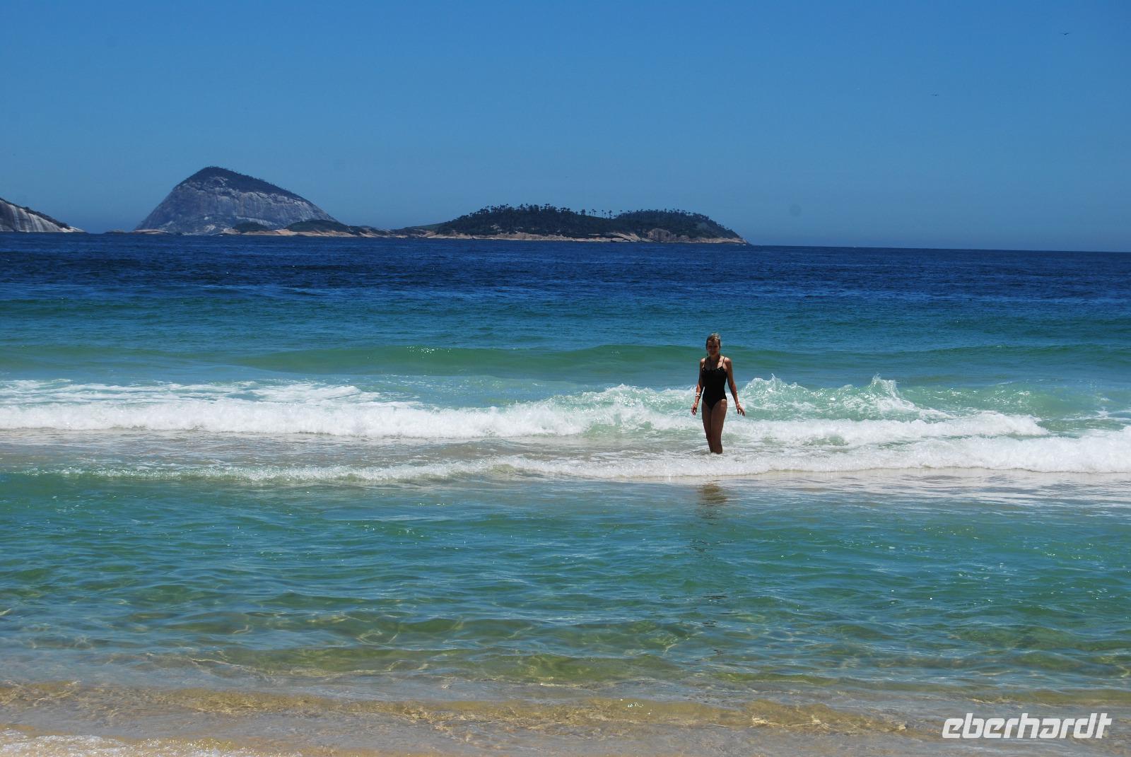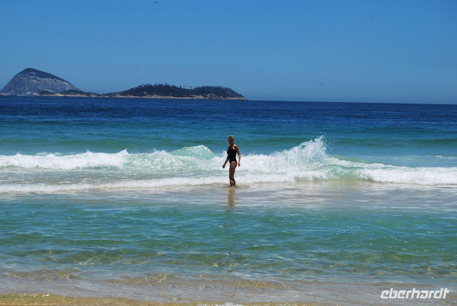 Am Abend hüpften wir über die Pfützen und spazierten an die Copacabana - den berühmten Strand von Rio de Janeiro, der nur wenige Querstraßen vom Hotel entfernt lag. In einem Lokal an der Promenade aßen wir zu Abend.