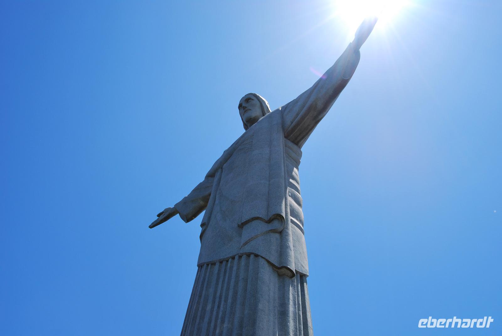 Was natürlich auf unserer Reise nicht fehlen durfte war die Besichtigung des 710 Meter hohen Corcovado, wo sich die legendäre Aussichtsplattform mit dem Christo befindet. Im Nationalpark Tijuca ging es mit der Zahnradbahn den steilen Berg hinauf bis zum Christo. Die bei Touristen beliebte Christo-Statue gilt als das Wahrzeichen Rio de Janeiros und ist mit Sockel 38 Meter hoch. So drängelten auch wir uns durch die Massen und versuchten das ein oder andere Foto zu schießen. Durch das geniale Wetter hatten wir einen schönen Ausblick über ganz Rio de Janeiro bis Niterói und die zahlreichen kleinen Hügel.