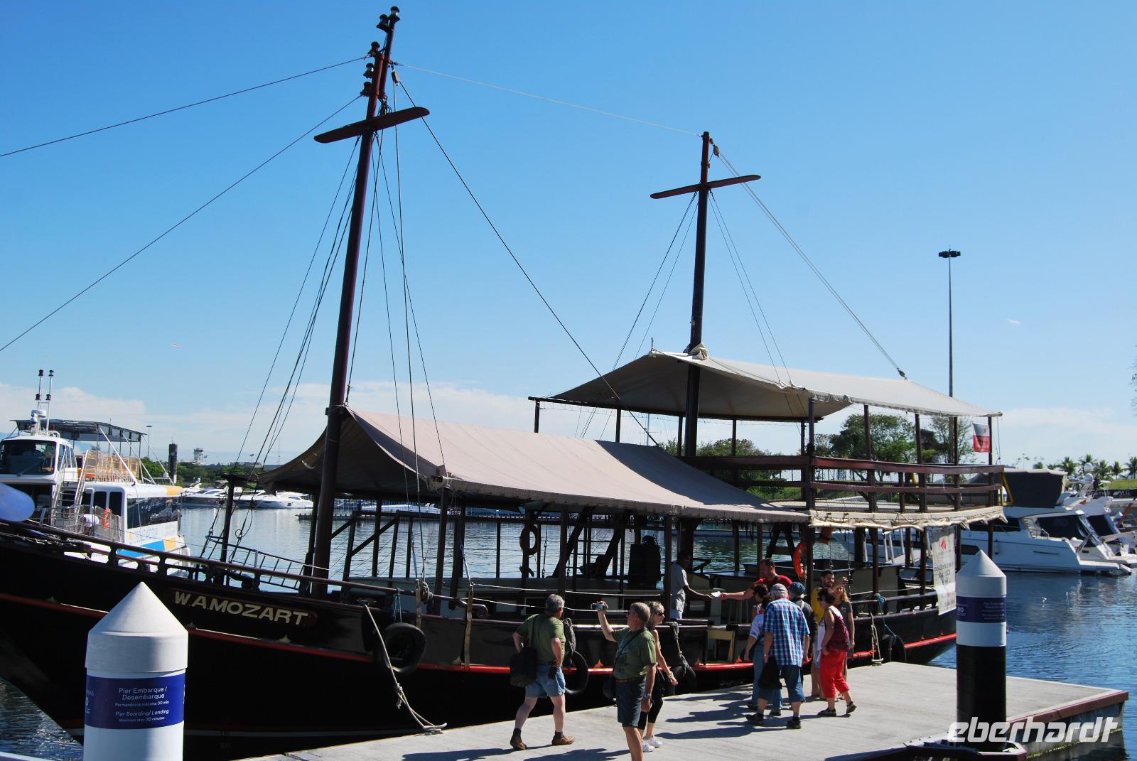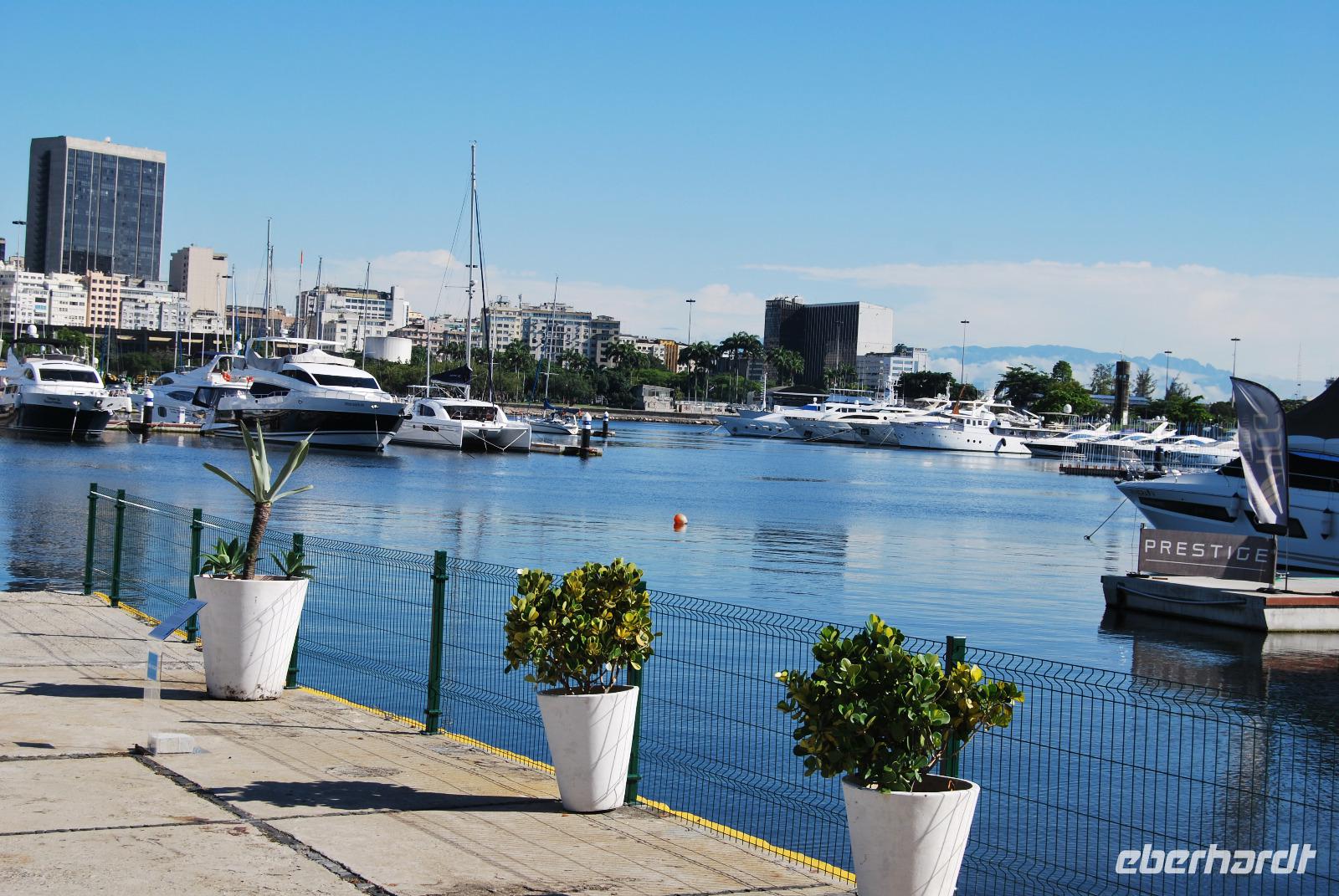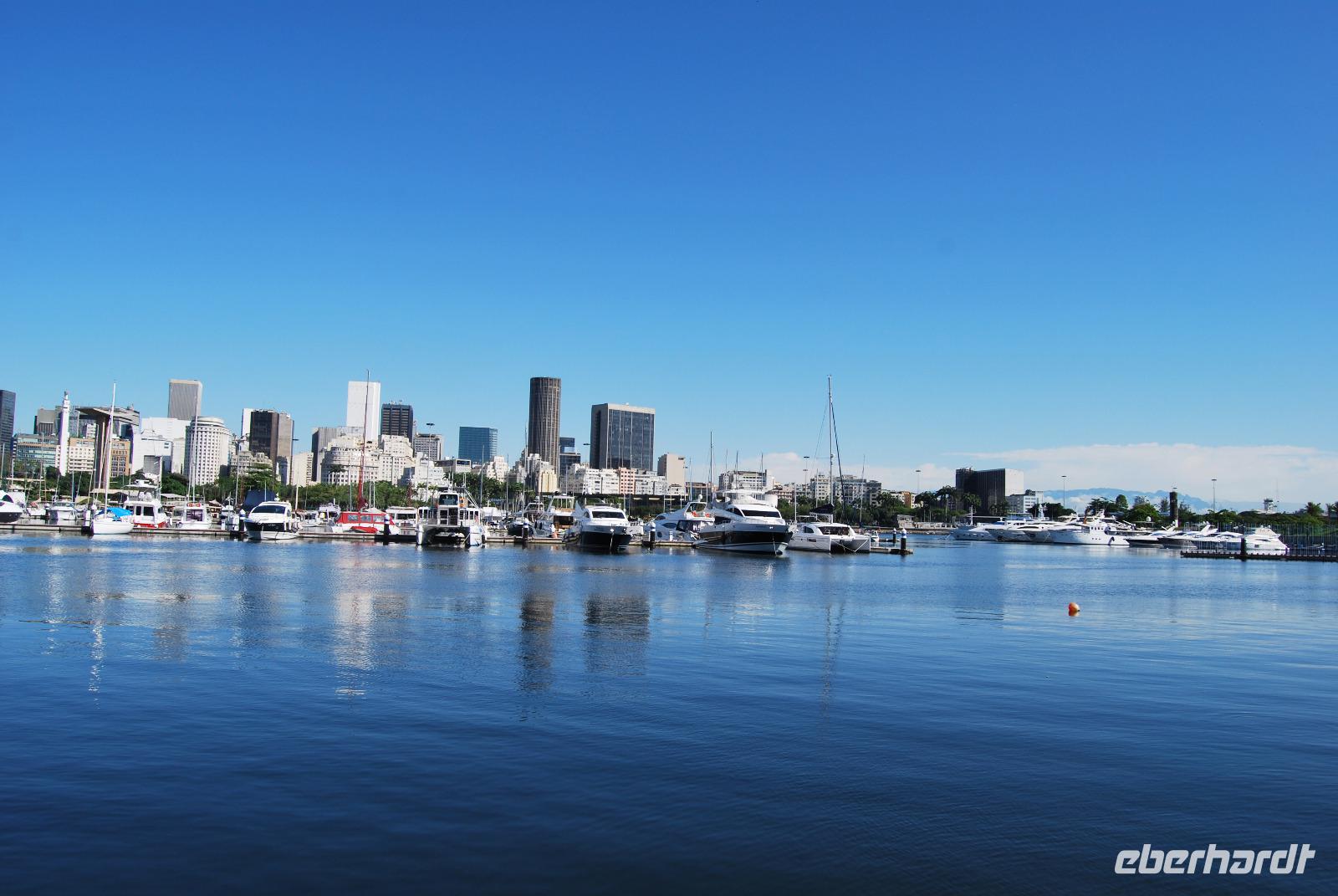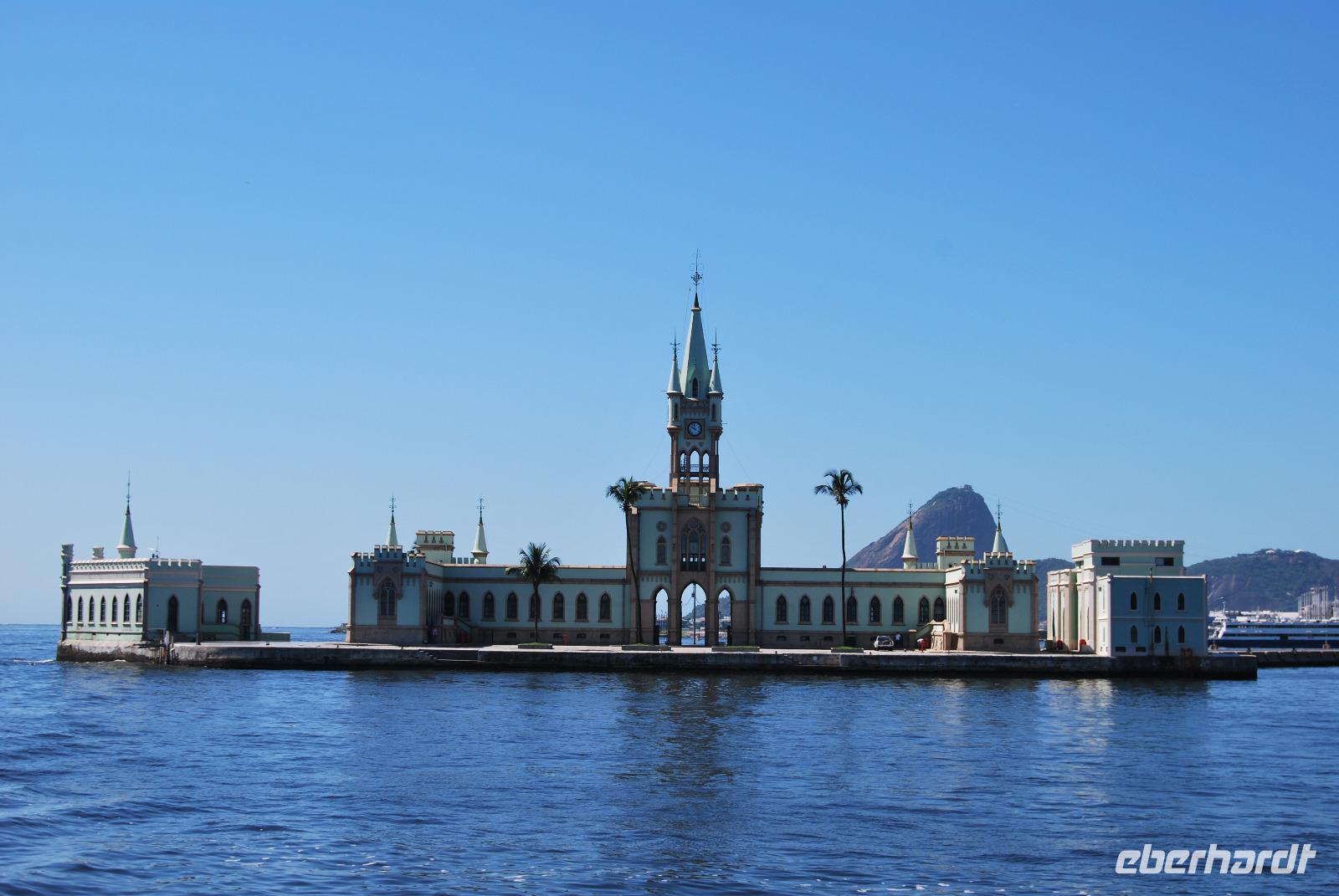 Blauer Himmel, pralle Sonne - kaum zu glauben! Begeistert starteten wir unsere heutige Tour. Da leider der Zuckerhut am gestrigen Tag gesperrt war, hatten wir heute als kleine, aber wunderbare, Entschädigung eine Bootsfahrt reserviert. Maik brachte uns zum Yachthafen Marina da Glória. Wir schipperten mit unserem Holzboot am Flughafen Rio de Janeiro-Santos Dumont vorbei, wo die Flugzeuge nur knapp über unsere Köpfe hinwegstreiften. Wir hatten ein unbeschreibliches Panorama bei exzellentem Sonnenschein vor den Augen. Wir kamen am alten Zollhaus Ilha Fiscal vorbei und sahen wenig später interessante Marineschiffe, darunter den Flugzeugträger São Paulo, am Marinestützpunkt Ihla das Cobras. Es folgte das Museu do Amanhã - das Museum von Morgen am Pier Maua, mit seinem futuristischen Gebäude sowie die Ilha das Enxadas und wenig später unterfuhren wir sogar die Rio-Niterói-Brücke. Sie verbindet Rio de Janeiro mit der gegenüberliegenden Stadt Niterói. Die Balkenbrücke ist über 13 Kilometer lang und bringt rund 151.000 Fahrzeuge pro Tag über die Bucht. Dann fuhren wir an der Küste von Niterói zurück zum Hafen. Wir passierten dabei die „Insel der guten Reise" mit der darauf liegenden katholischen Kirche. Dahinterliegend sah man das moderne Bauwerk des Museums für zeitgenössische Kunst, welches wie ein Ufo aussieht! Entworfen wurde das Gebäude passenderweise vom bekanntesten brasilianischen Architekten der Moderne - Oscar Niemeyer. Bevor wir in den Hafen Marina Gloria bogen, konnten wir das grandiose Panorama auf die beeindruckende und größte Befestigungsanlage Südamerikas, die Festung Santa Cruz da Barra, und den weltberühmten Zuckerhut genießen.