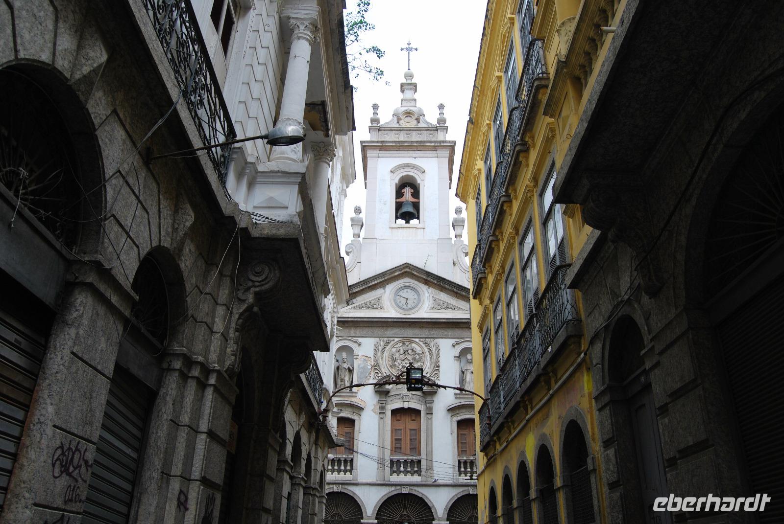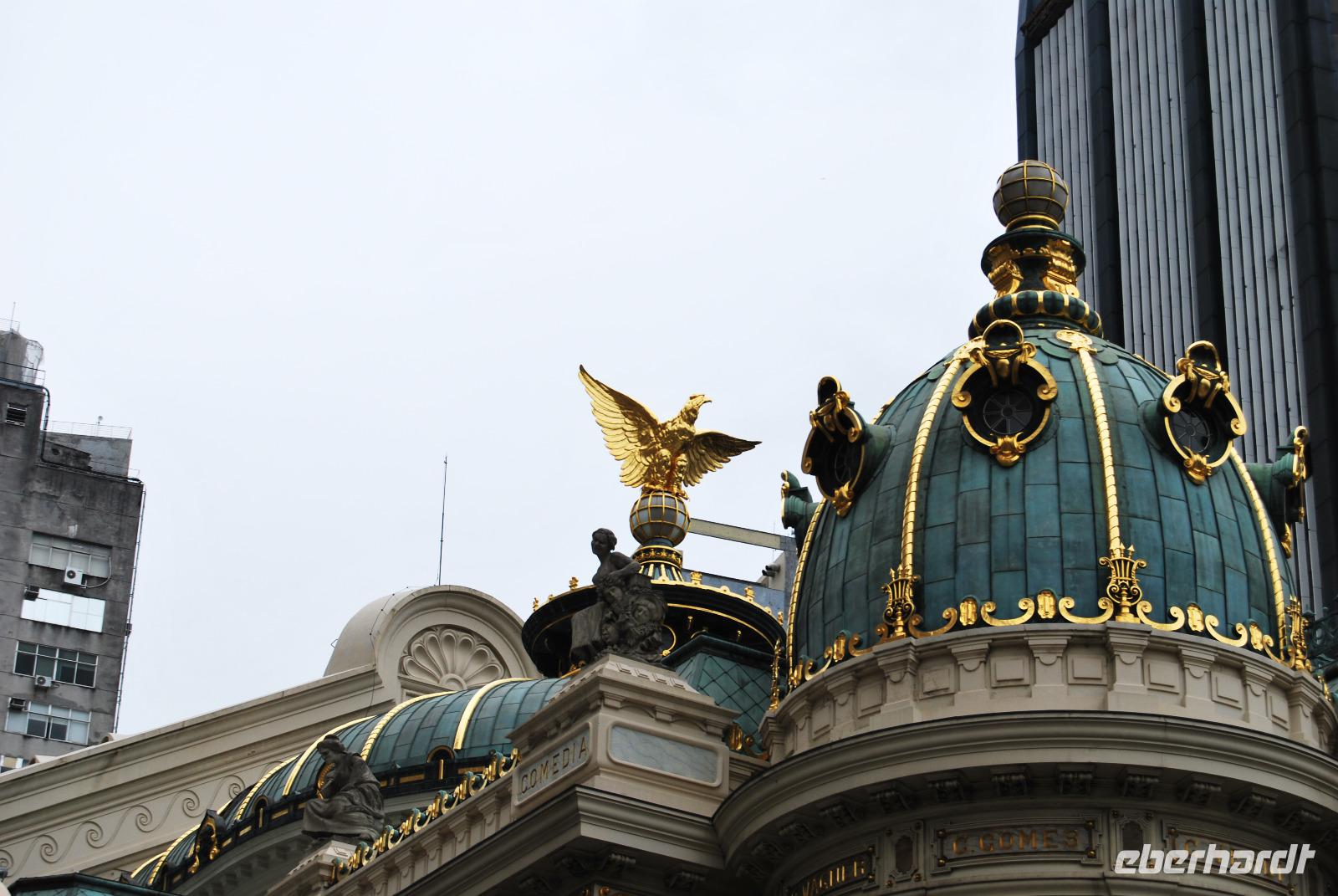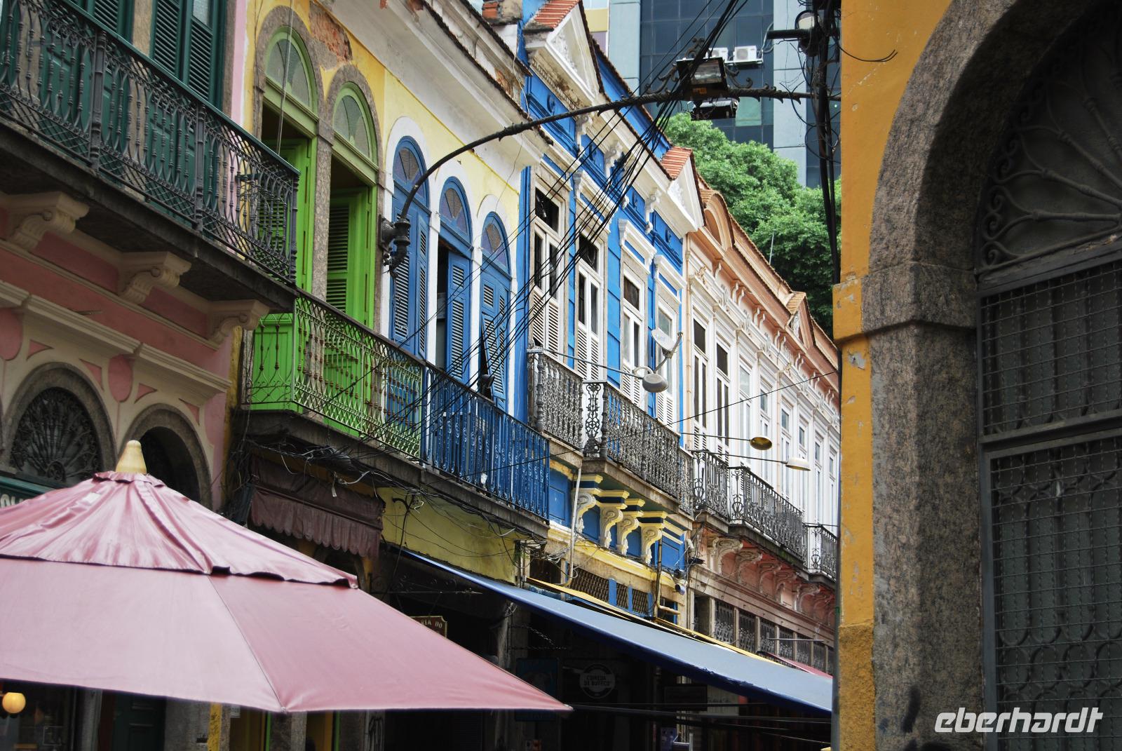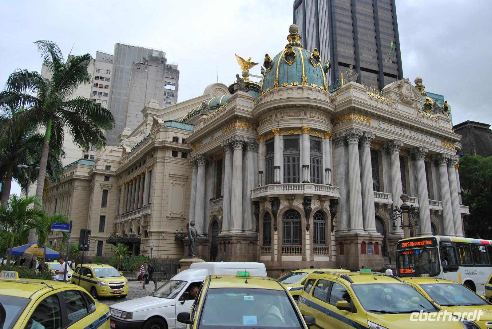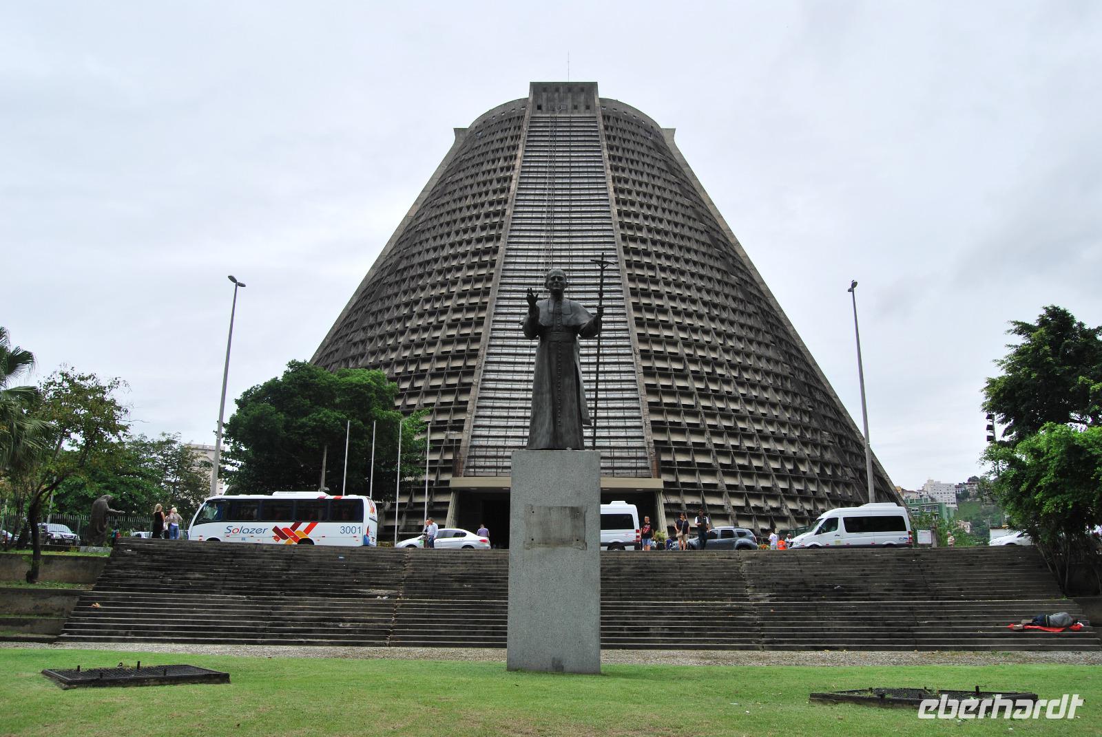 Heute stand Stadtrundfahrt in Rio de Janeiro auf dem Programm. Als erstes fuhren wir mit Maik zu der nicht weitentfernten Seilbahnstation, die normalerweise auf den Zuckerhut fährt. Leider waren aber Bauarbeiten angekündigt, so dass die Auffahrt auf den Zuckerhut nicht möglich war. Jedoch hatten wir die Chance die untere Station zu besuchen - Morro Da Urca. Dort angekommen, wurden wir von einer Militärkapelle empfangen, die am Fuße der Station ihren Zapfenstreich vollbrachte. Wir fuhren mit den großen Gondeln nach oben. Von dort konnten wir die kleine Bucht und die Stadtteile Botafogo und Flamengo gut überblicken. Auch das Wetter spielte mit. Es war lediglich etwas bewölkt und der Christo, der über der Stadt thront, war klar zu erkennen. Nächster Halt war das berühmte Maracanã-Stadion in dem zur Eröffnung 1950 knapp 200.000 Zuschauer Platz hatten und damit das größte Stadion der Welt war. Nach heutigen Sicherheitsauflagen und Modernisierungsmaßnahmen gibt es nur noch Sitzplätze. Aber es haben immerhin noch 74.738 Zuschauer Zugang. Als nächstes besuchten wir ein weiteres Stadion, das Sambódromo. Die Tribünen sind etwa 700 Meter lang und bieten Platz für 88.500 Zuschauer. Zur Karnevals-Zeit bebt dort die Erde. Unter den Tribünen findet man einen kleinen Kostümverleih, wo wir die Gelegenheit hatten mal ein solch buntes Gewand anzuprobieren. Dann ging es für uns in das Zentrum von Rio. Zuerst zur St. Sebastian Stadtkathedrale, die aussieht wie ein Tempel der Maya, knapp 75 Meter hoch und 100 Meter im Durchmesser. Wir kamen zur prunkvollen Oper von Rio, die aus dem frühen 20. Jahrhundert stammt und von der Pariser Opéra Garnier inspiriert wurde. Wir folgten Maik weiter und schließlich am Kloster St. Antonio vorbei und der Relogio Da Carioca, einer Uhr und Laterne, mit der erstmals 1909 elektrisches Licht die Straßen in Rio erhellte. Dann gingen wir in die belebte Straße Rua Gonçalves Dias und besuchten die Confeitaria Colombo. Ein interessantes Gebäude mit Elementen aus Historismus und Jugendstil. Ebenso der altertümliche Fahrstuhl, der uns eine Ebene höher, zu dem hervorragenden Buffet, brachte. Am Nachmittag sahen wir noch die Kirche der Marktleute an der Straße Travessa Comercio und Rúa do Ouvidor bei unserem Rundgang sowie die ehemalige Zentralbank Brasiliens und die Kathedrale Candelaria aus dem 19. Jahrhundert.