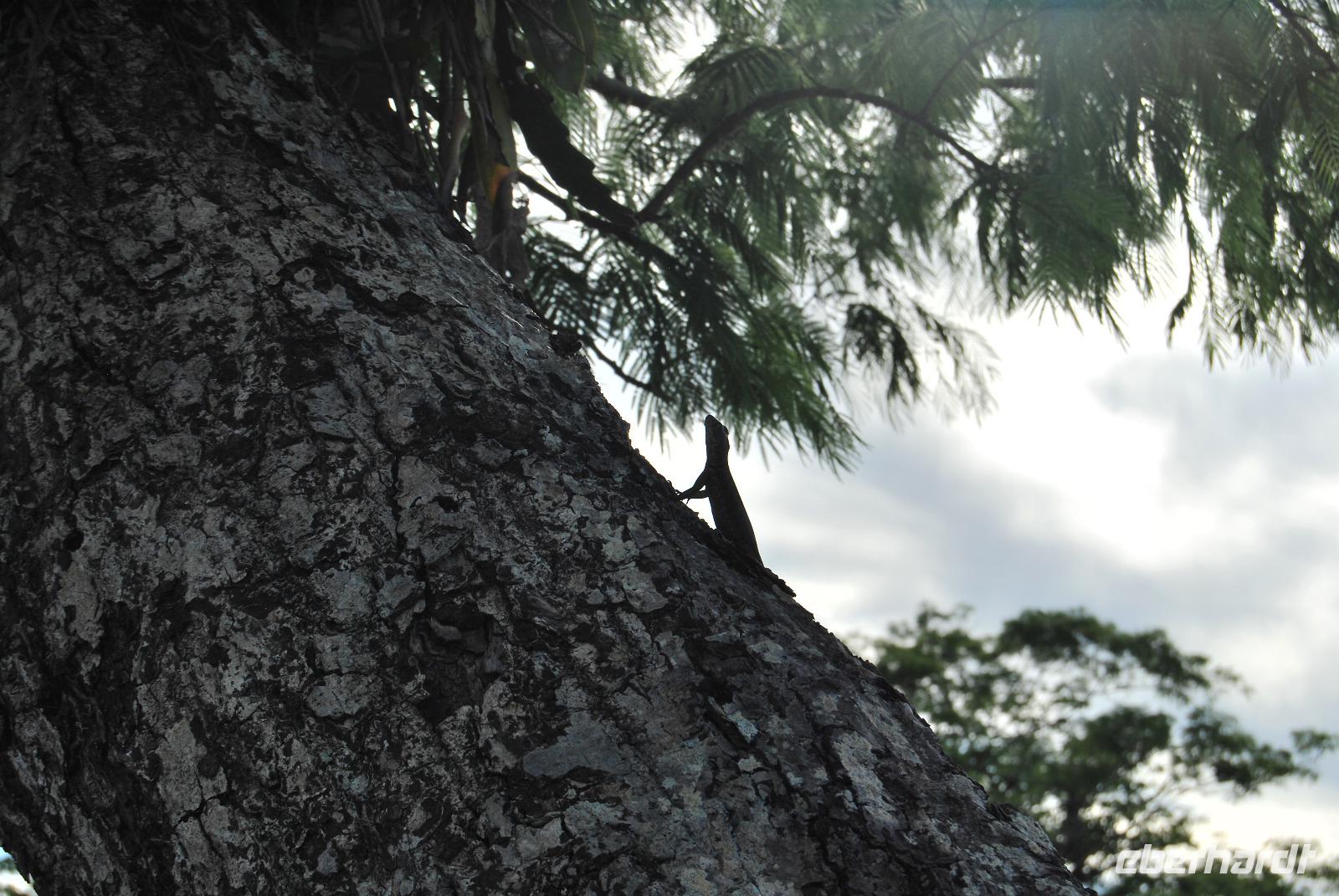 Bis zum Abend blieben wir auf dem Gelände. Mit Einsetzen der Dämmerung begaben wir uns zu den Bussen. Ich entschied mich kurzerhand mit Sabine die Stufen bis zum Hotel zu Fuß zu laufen. Es wurde schnell dunkel, wir schafften es gerade so zum Abendessen zurück ins Hotel. Trotz des anstrengenden Tages war es gut noch einmal dem Urwald etwas näher zu sein und auf dem Weg durch die Stadt dem Donnern des Flusses zu lauschen.
