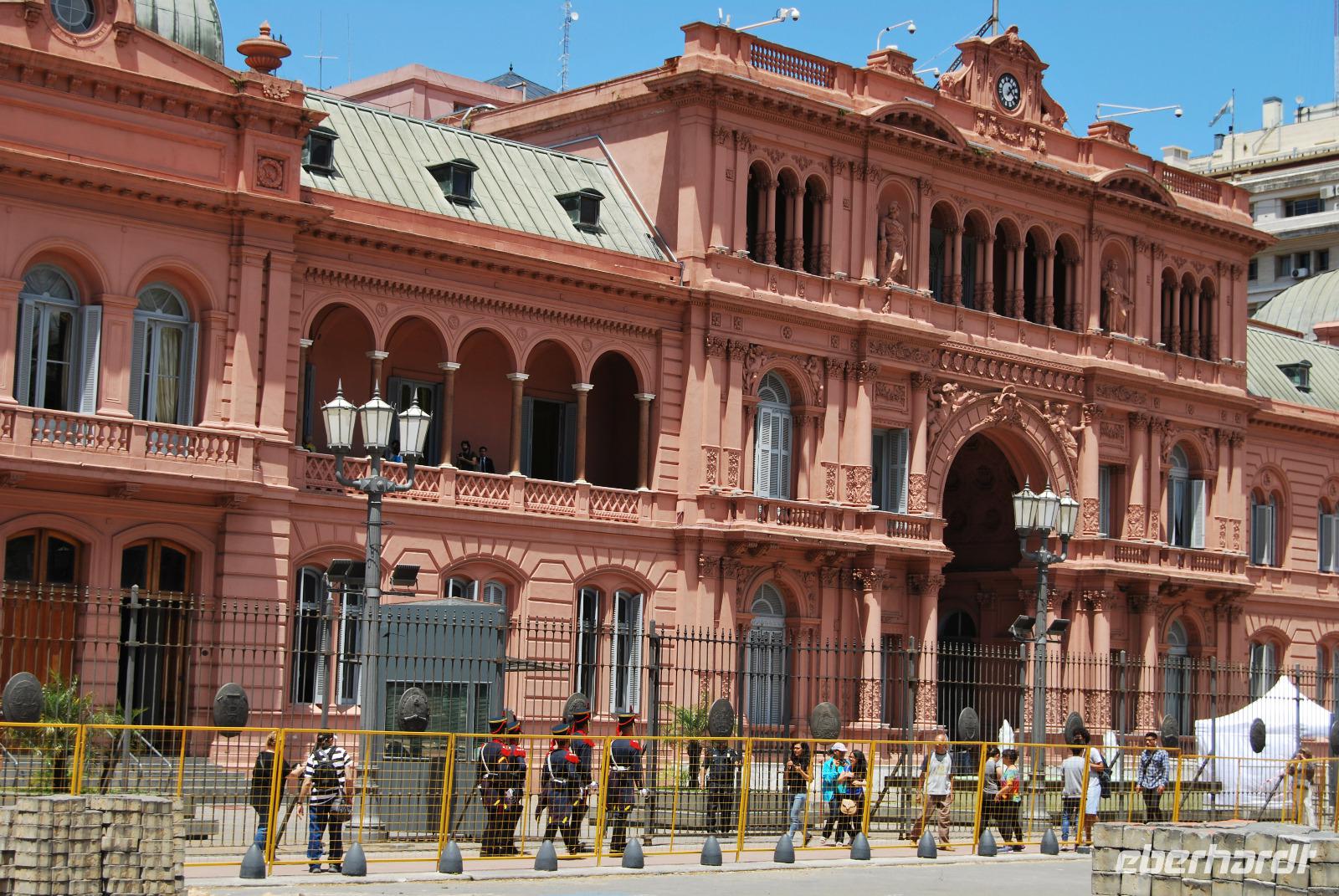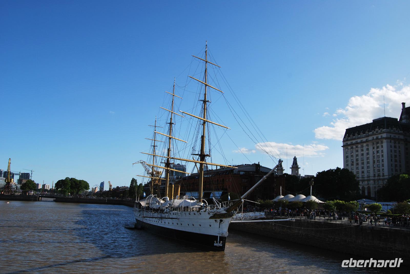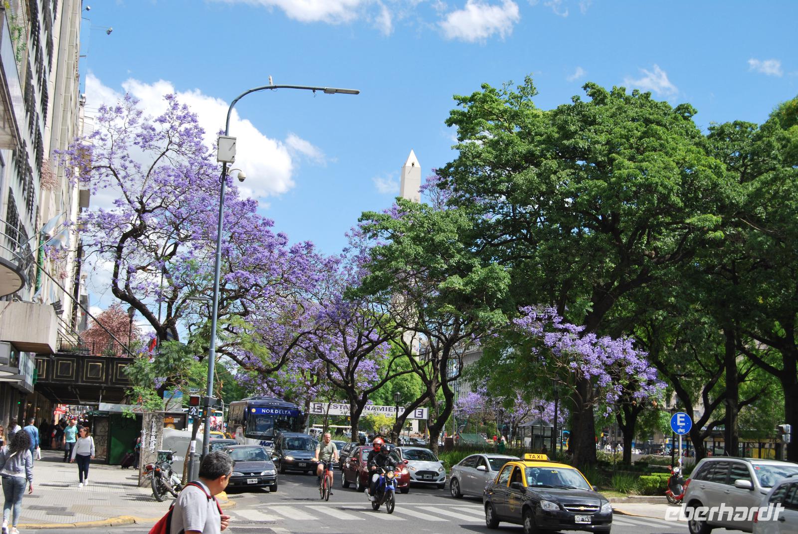 Wir begannen unseren Tag mit einer Stadtrundfahrt in der Millionen-Metropole. Betrachtet man die gesamte Region Buenos Aires, so kommt man auf 14 Millionen Einwohner. Das entspricht etwa einem Drittel von ganz Argentinien. Die Stadt selbst hat fast 2,9 Millionen und teilt sich in 48 Barrios - Stadtteile. Unser Hotel befand sich im Stadtteil San Nicolas, quasi gleich neben dem berühmten Obelisken von Buenos Aires. Das 67 Meter hohe Denkmal wurde 1936 anlässlich des 400-jährigen Jubiläums der Stadtgründung errichtet. Von dort sind wir mit Ines zum Torre Monumental, ein Glockenturm im englischen Stil, im Stadtteil Retiro. Es war eine hübsche Parkanlage von der man auch das erste Hochhaus von Buenos Aires sehen konnte. Die auffälligen Jacarandá-Bäume, mit ihren intensiven violetten Blüten, schmückten die zahlreichen Alleen von Buenos Aires und begleiteten uns auf der gesamten Stadtrundfahrt. Der nächste Halt war im Stadtteil Recoleta. Wir besuchten den gleichnamigen Friedhof. Zahlreiche Mausoleen und Grabhäuser luden zum Staunen ein. Denn die aufwändig, liebevoll und meisterlich gearbeiteten Skulpturen tummeln sich dort dicht an dicht. Zahlreiche Präsidenten und berühmte Persönlichkeiten aber auch reiche Kaufleute sind dort bestattet. Darunter auch die berühmte María Eva Duarte de Perón, die Primera Dama von Argentinien anfangs des 20. Jahrhunderts, die ihren Mann an die Spitze brachte und sich selbst für die Armen einsetzte. Vom Friedhof Recoleta fuhren wir am ehemaligen Kloster, und heutigem Kulturzentrum, vorbei nach Palermo. Der Stadtteil ist seit Jahrhunderten bekannt für seine Gärten und wurde auch in einem Tango von Juan Villalba besungen. Wir besuchten dort den Rosengarten von Palermo, der schon im Jahre 1914 eröffnet wurde. Von Palermo aus ging es durch Monserrat nach La Boca. Der auch durch den weltberühmten Fußball Club Boca Juniors bekannte Stadtteil zeigte sich uns bei prallem Sonnenschein in seiner ganzen Farbenpracht. Da an diesem Sonntag Boca Juniors ein Heimspiel hatte, erschwerte dies durch zahlreiche Absperrungen die Anreise ein wenig. Einige Fans in blau-gelb trieben auch schon durch die sehenswerten Straßen um den Caminito - das Wegchen. Kleine Bars, Restaurants und zahlreiche Händler belebten die Gassen. In den Lokalen und auf der Straße wird fleißig Tango getanzt, überall erklingt die typische Musik. Zum Abschluss streiften wir den Stadtteil Puerto Madero und sahen uns das Regierungsgebäude Casa Rosada von außen an. Dabei schlenderten wir über die Plaza de Mayo. Vor dem historischen Münz-Museum stolzierten ein paar Soldaten in historischer Kleidung Richtung Casa Rosada, als wir den Platz verließen. Um die Mittagszeit war unsere Stadtführung beendet und wir konnten den Nachmittag für einen Bummel am Hafen oder in der Galerías Pacífico, einem der schönsten Kaufhäuser überhaupt, nutzen.