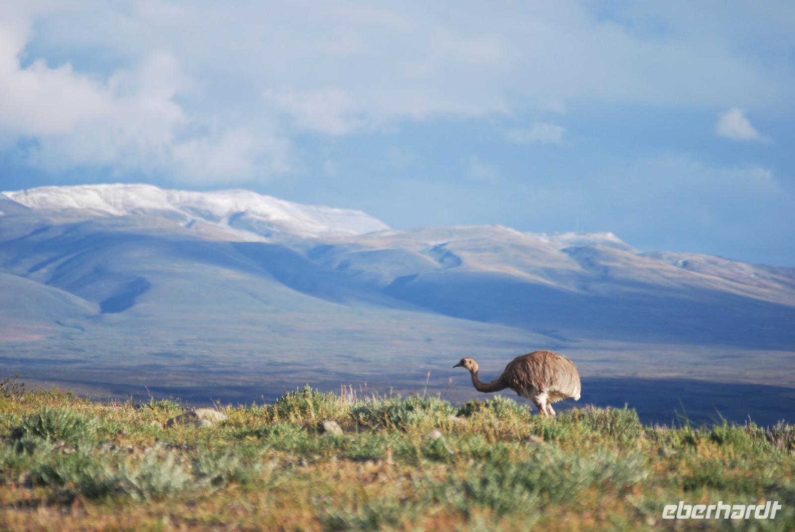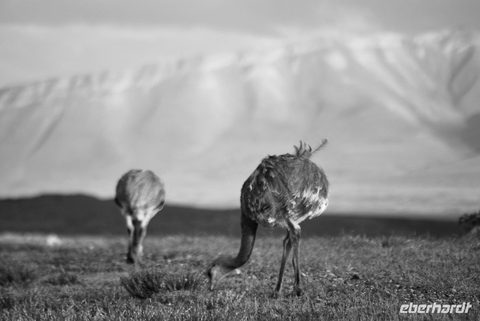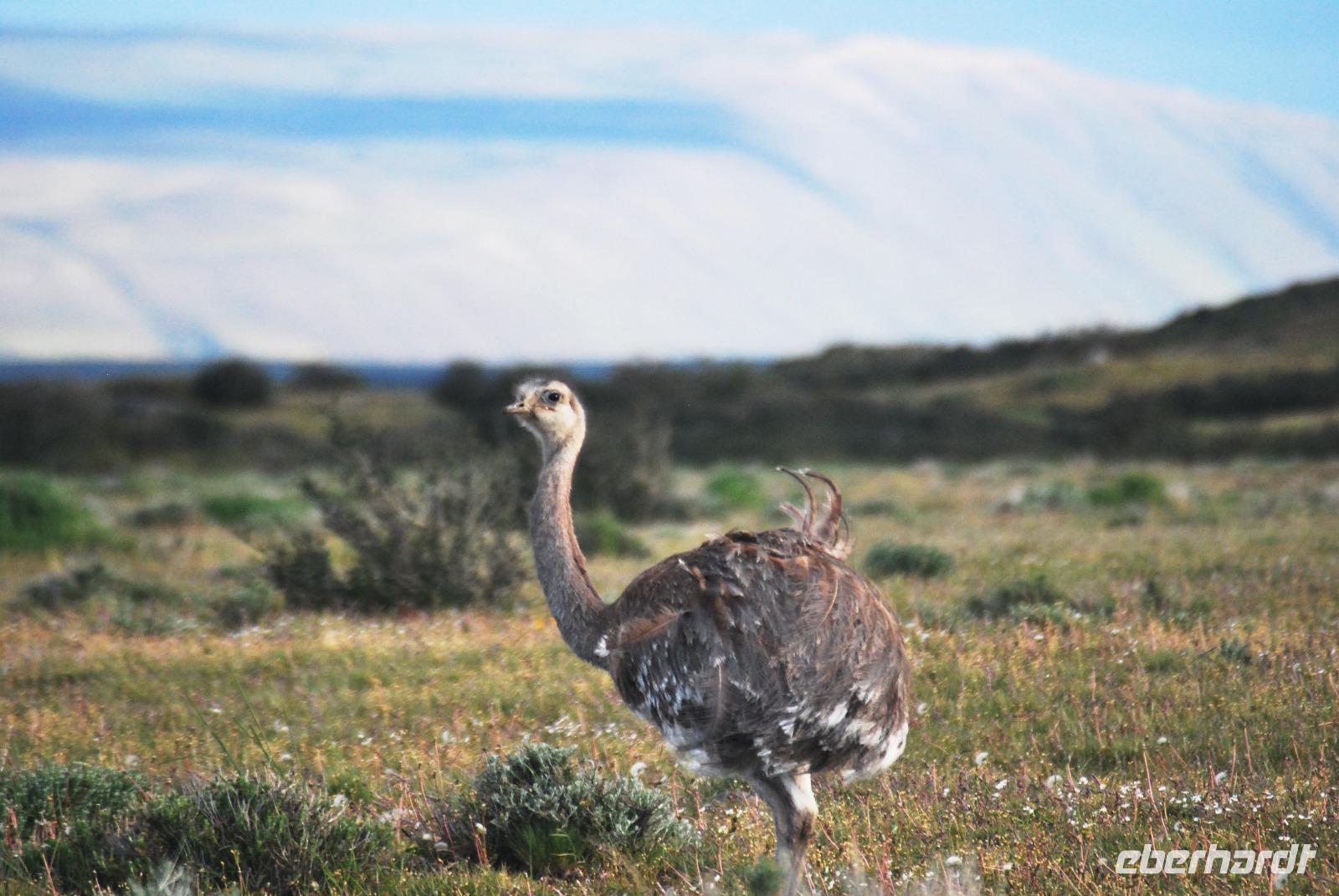 Wir blickten auf Feuerland und die Pinguin-Insel Magdalena. Wir sahen die Magellanstraße und fuhren an ihr in nördlicher Richtung, auf der Ruta del fin del mundo - der Straße am Ende der Welt, bis nach Puerto Natales. Auf dem Weg in das verschlafene, zwanzigtausend Seelen Städtchen sahen wir neben Schafen noch zahlreiche Magellan-Gänse und den südamerikanischen Laufvogel, den Nandu.
