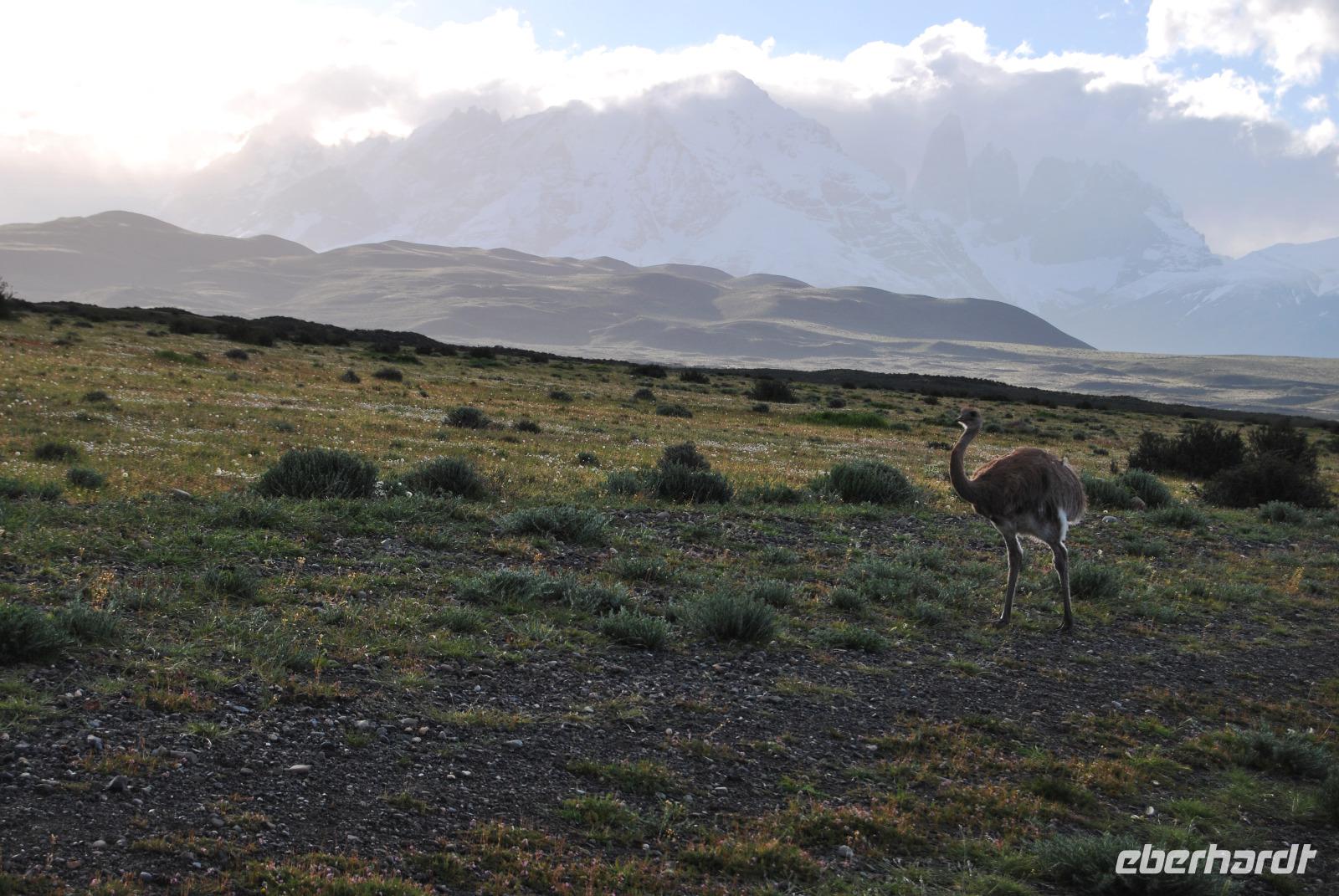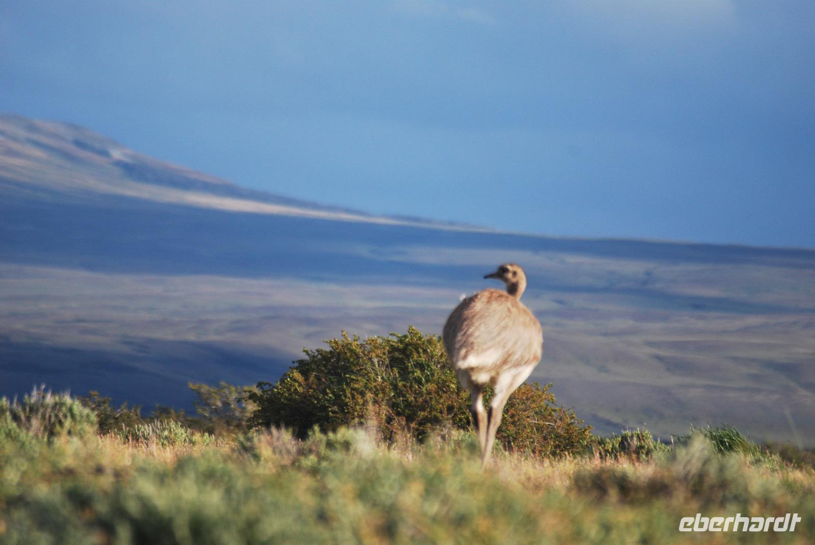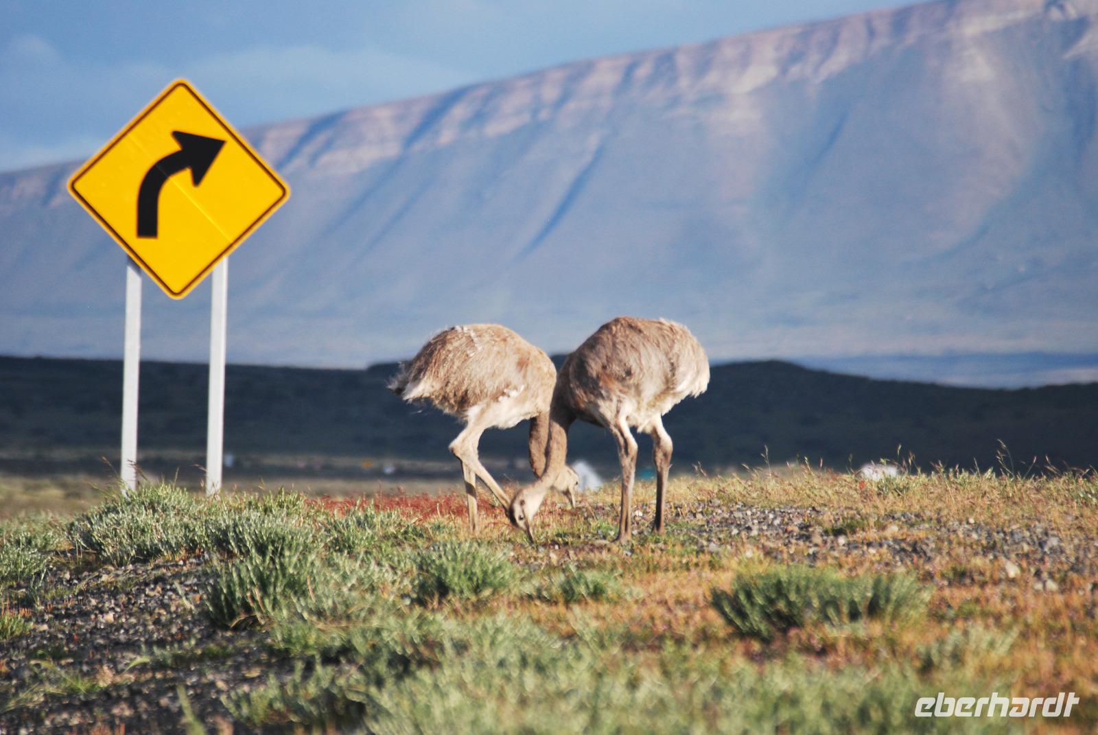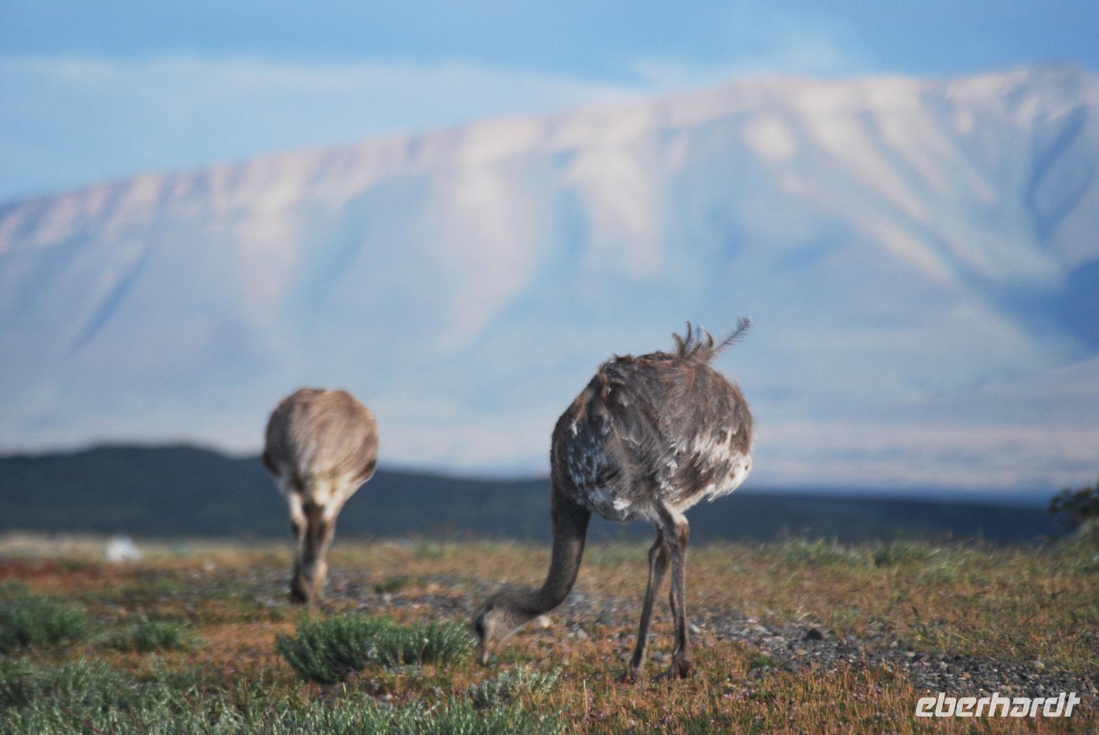 Wir blickten auf Feuerland und die Pinguin-Insel Magdalena. Wir sahen die Magellanstraße und fuhren an ihr in nördlicher Richtung, auf der Ruta del fin del mundo - der Straße am Ende der Welt, bis nach Puerto Natales. Auf dem Weg in das verschlafene, zwanzigtausend Seelen Städtchen sahen wir neben Schafen noch zahlreiche Magellan-Gänse und den südamerikanischen Laufvogel, den Nandu.