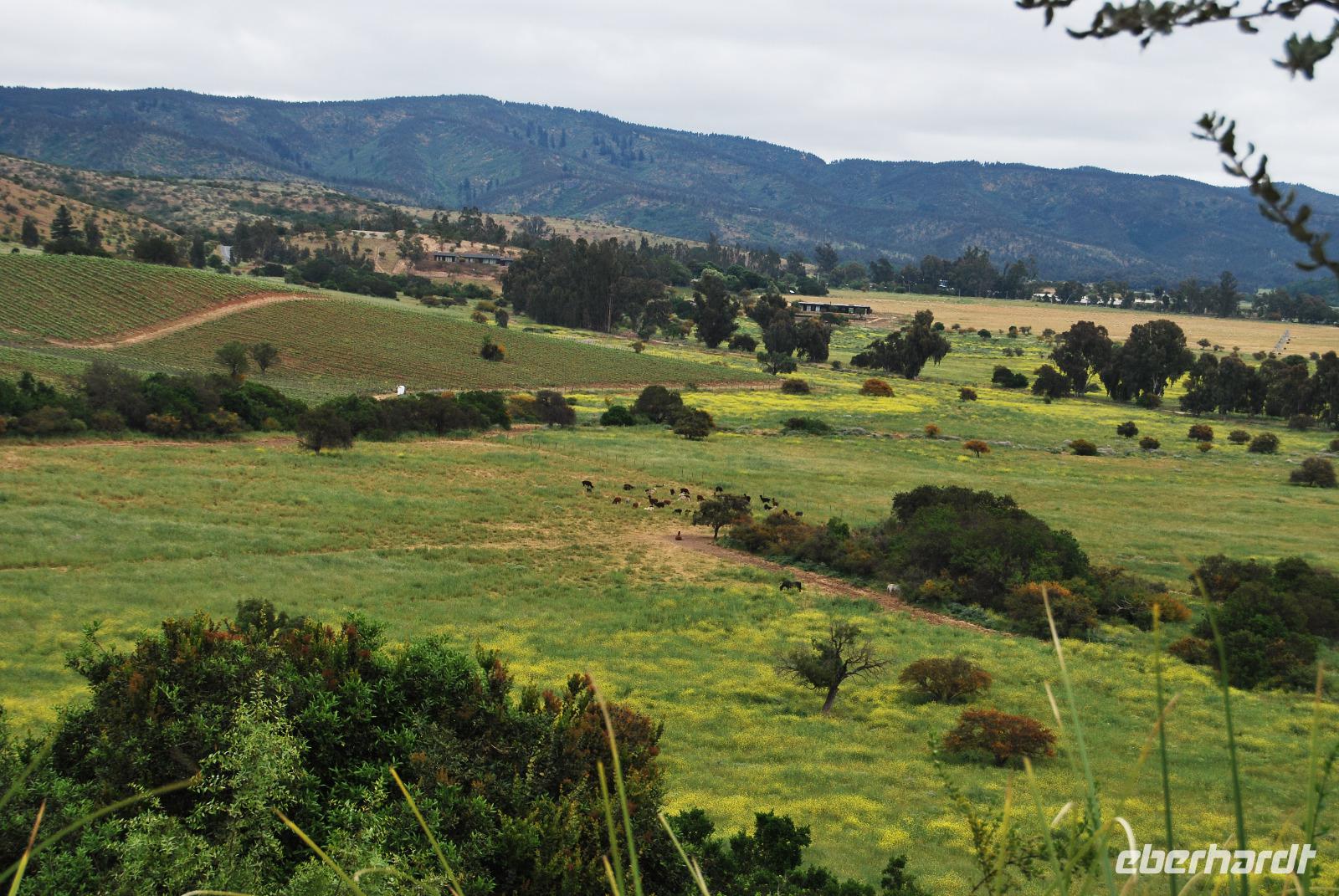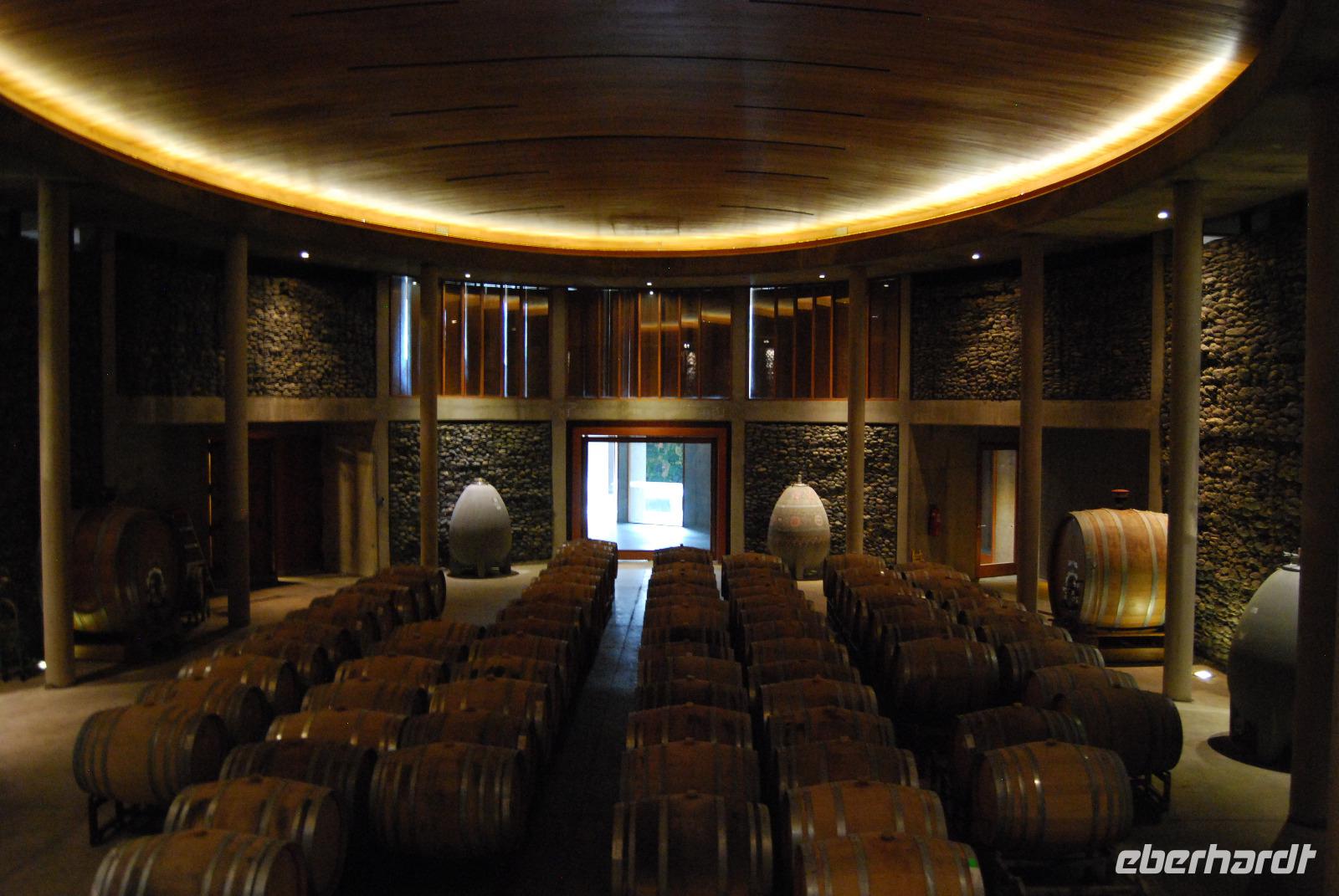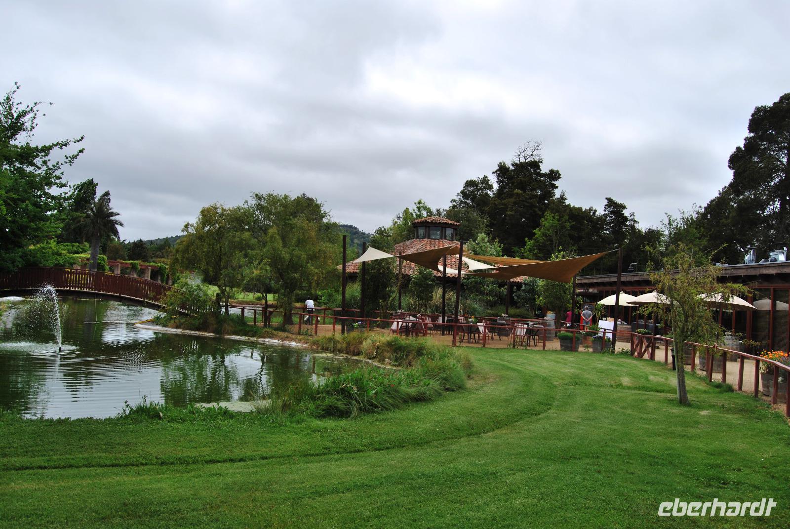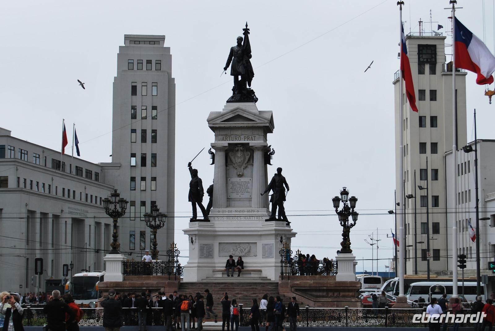 Im Anschluss spazierten wir durch die steilen Straßen der Hafenstadt und bewunderten die bunten Häuser. Wir gingen durch die Straßen Templeman und Lautaro Rosas, wo sich einst viele reiche Bürger ansiedelten. Anfang des 19. Jahrhunderts war hier die Blütezeit, da der Hafen der Stadt der wichtigste am südlichen Pazifik war. Unser Spaziergang endete an der Plaza Sotomayor und den Marine Gebäuden. Es war auch schon recht ungemütlich geworden, der Himmel war bedeckt, ein kalter Wind zog durch die Straßen und es fing zu nieseln an. An dem Denkmal von Arturo Prat stiegen wir wieder in den Bus. Prat ging als Held für Ritterlichkeit während des Salpeterkriegs Ende des 19. Jahrhunderts in die Geschichte ein. Bolivien verlor in der Zeit den wichtigen Zugang zum Meer und war somit isoliert. Wir machten noch einen Abstecher nach Viña del Mar, bevor es wieder ins Landesinnere in ein Restaurant der Matetic Vineyards ging, wo uns ein schmackhaftes und edles Buffet aus chilenischem Fleisch und Salaten präsentiert wurde. Dazu wurde uns Weiß- und Rotwein der Familienkelterei Matetic gereicht. Nach der Stärkung fuhren wir auf das nur wenige Kilometer entfernte Weingut und machten einen kleinen Rundgang durch die modernen Gebäude und kosteten auch von den unterschiedlichen Lagerungen.