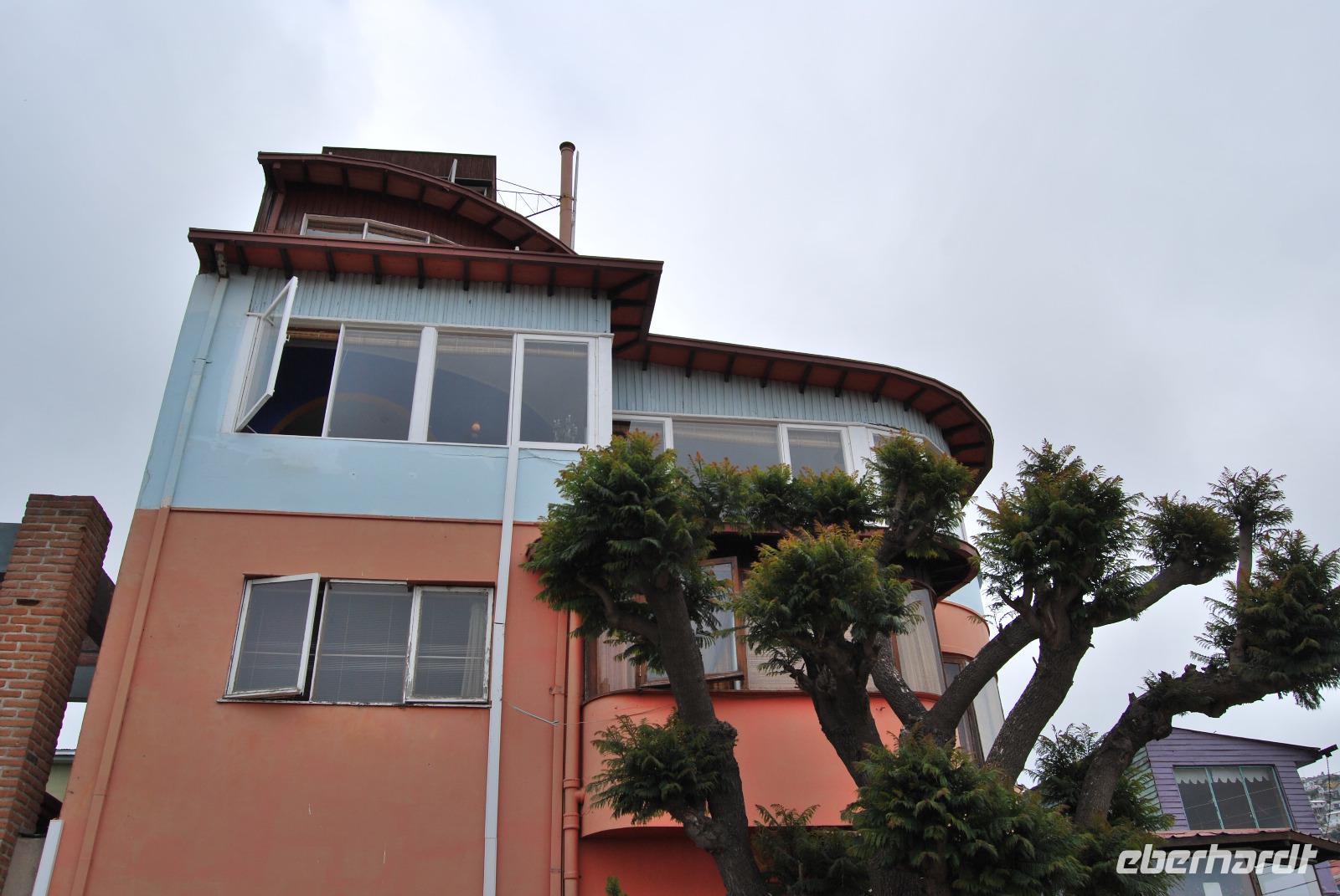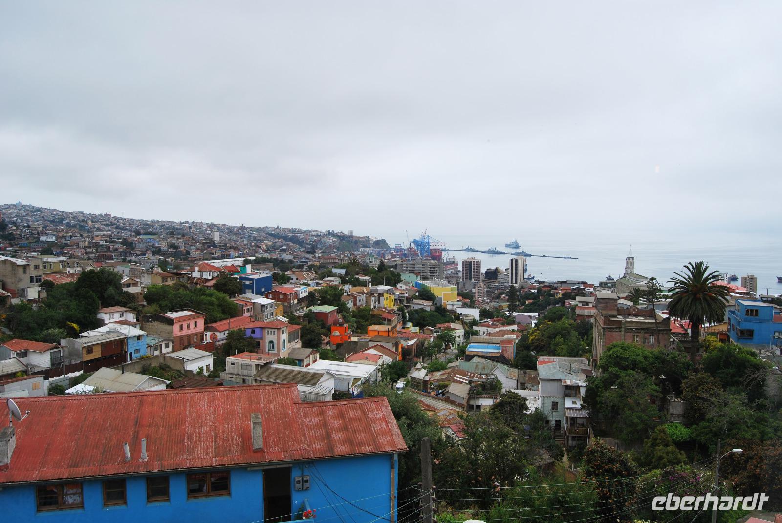 Heute fuhren wir in das von Santiago knapp 120 Kilometer entfernte Valparaíso. Die an der Pazifikküste liegende Stadt ist weltberühmt. Über sie wurden zahlreiche literarische, musikalische und künstlerische Interpretationen erstellt. Der historische Stadtkern zählt zum Weltkulturerbe der UNESCO. Zu Beginn unseres Aufenthaltes an der Küste stand die Besichtigung des Museums La Sebastiana auf dem Programm. Das ehemalige Wohnhaus des Dichters Pablo Neruda gab uns einen guten Einblick in sein Leben und die Arbeitsweise. Zahlreiche persönliche Gegenstände befinden sich noch immer in diesem Haus und wurden uns gut erläutert. Nebenbei hatte der Nobelpreisträger von hier einen herrlichen Blick über den Hafen von Valparaíso und die ein- und auslaufenden Schiffe.