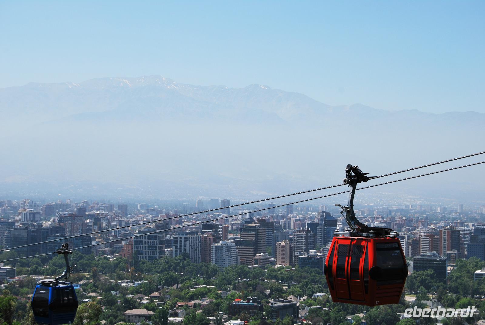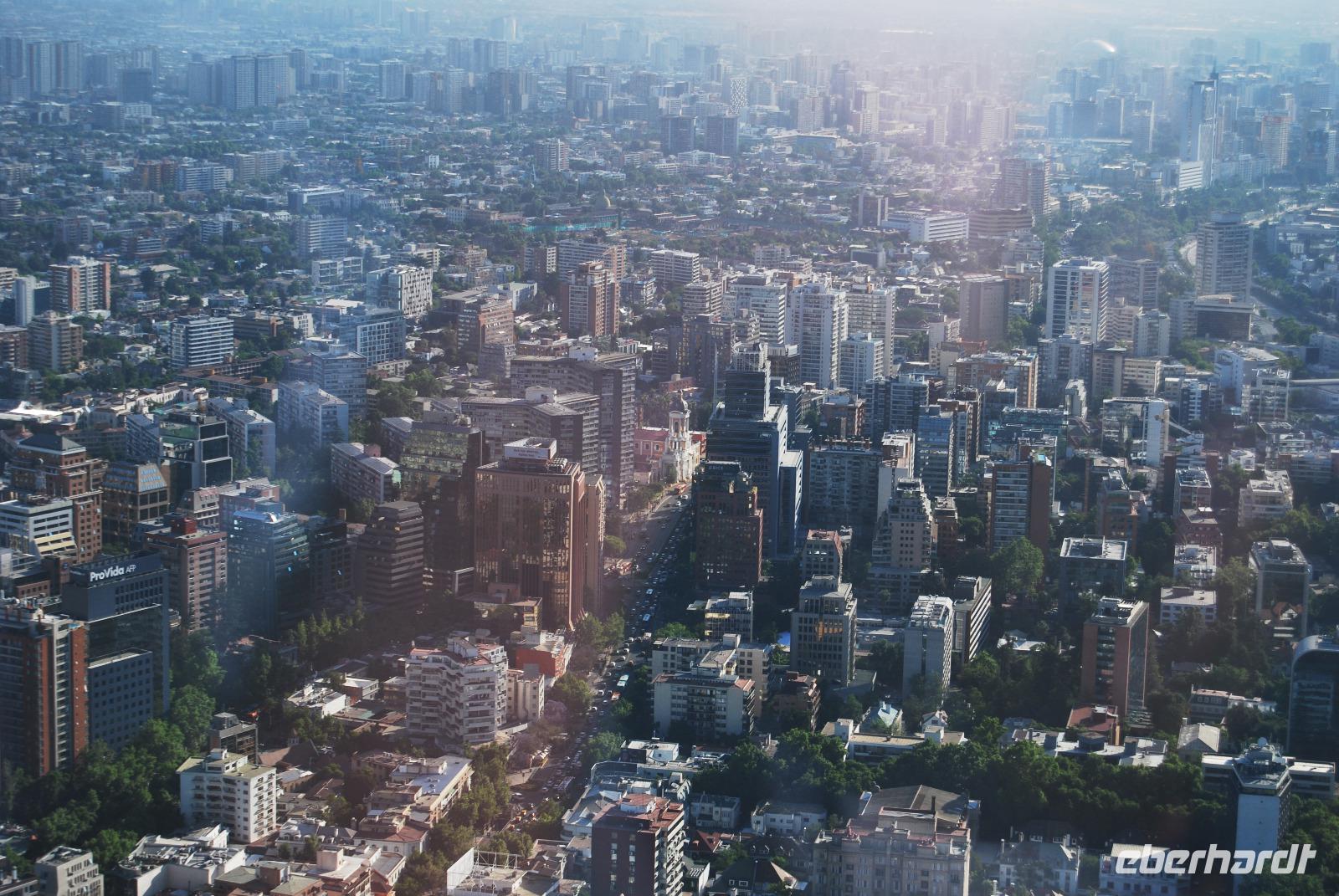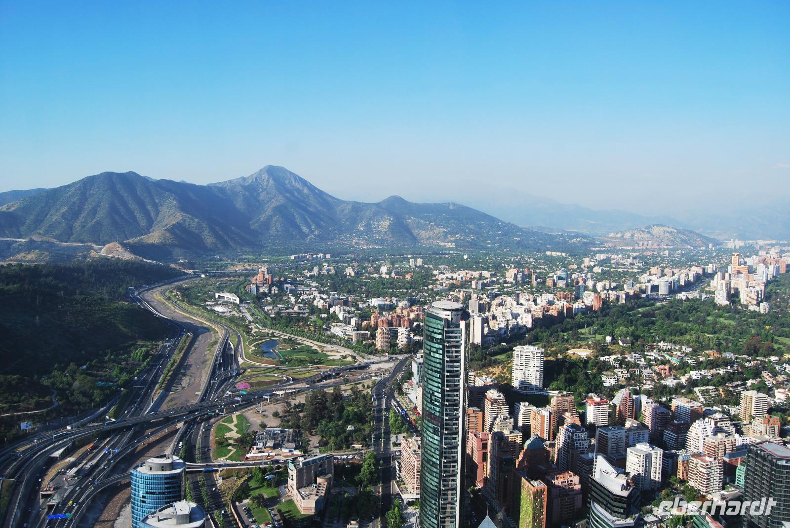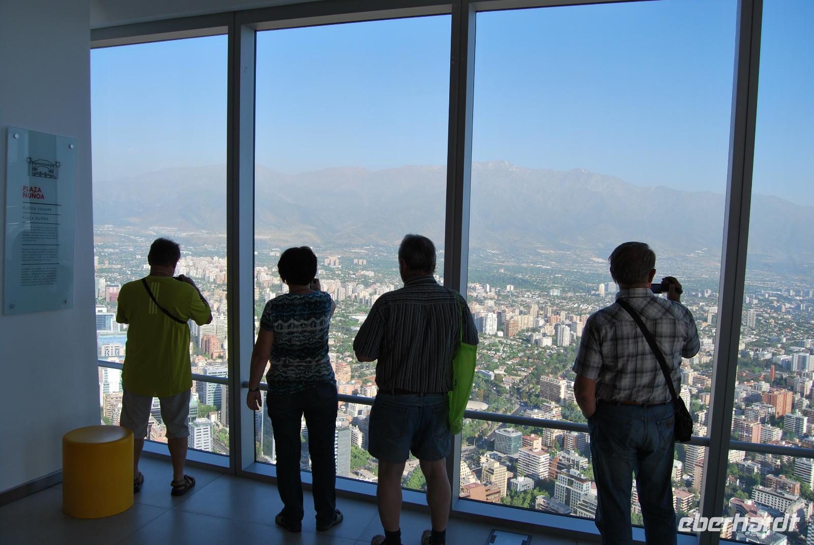 Am Nachmittag bin ich noch mit vier schwindelfreien Gästen zum Sky Costanera gefahren und wir genossen die herrliche Aussicht über Santiago de Chile bei Sonnenschein.