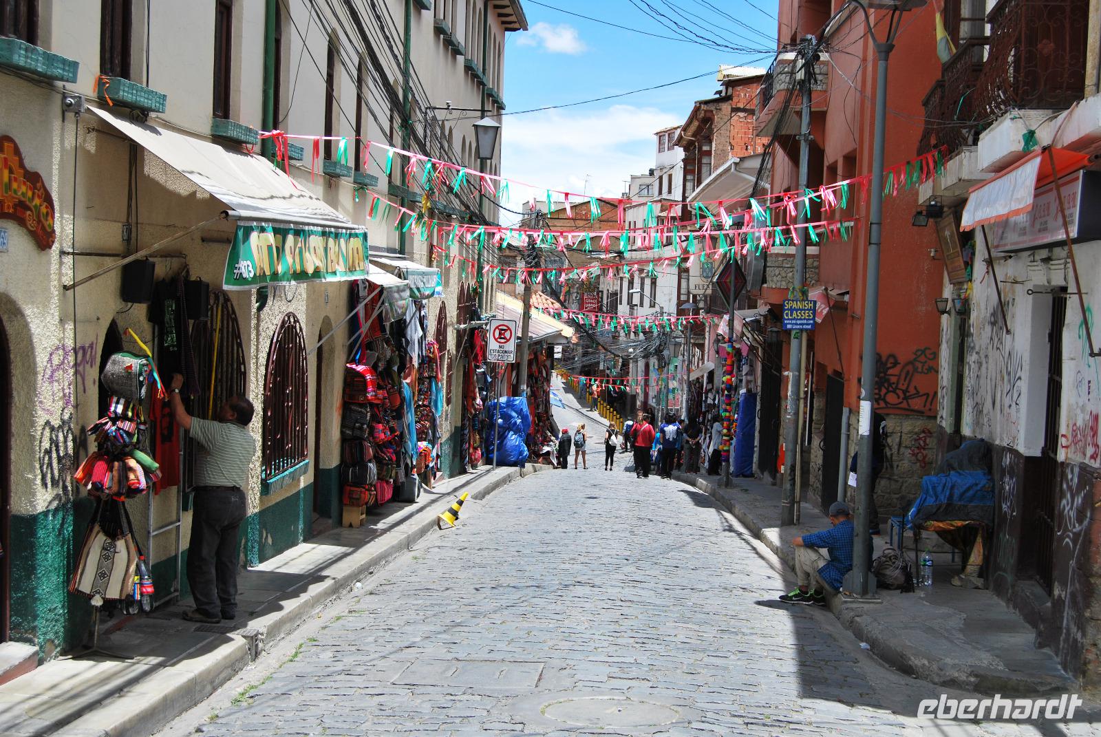 Als nächstes stand die Besichtigung des Zentrums von La Paz auf dem Programm. Doch Bärbel, ein Reisegast, hatte schon seit Tagen Probleme mit ihrem Auge. Die trockene Höhenluft hatte ihr zu schaffen gemacht. Es schien entzündet zu sein und auch die Augentropfen aus der Apotheke schienen nicht gerade heilungsfördernd. Es war Sonntag - so gut wie jede Praxis hatte geschlossen.
