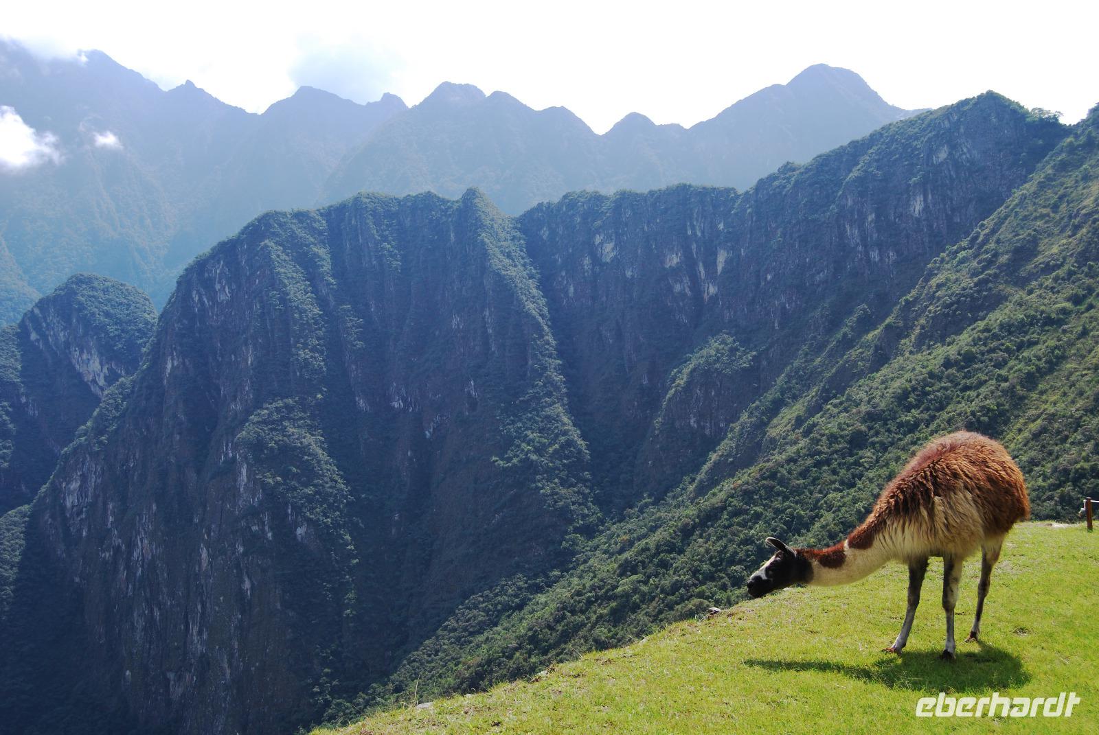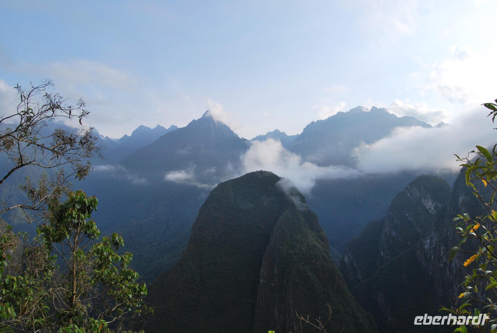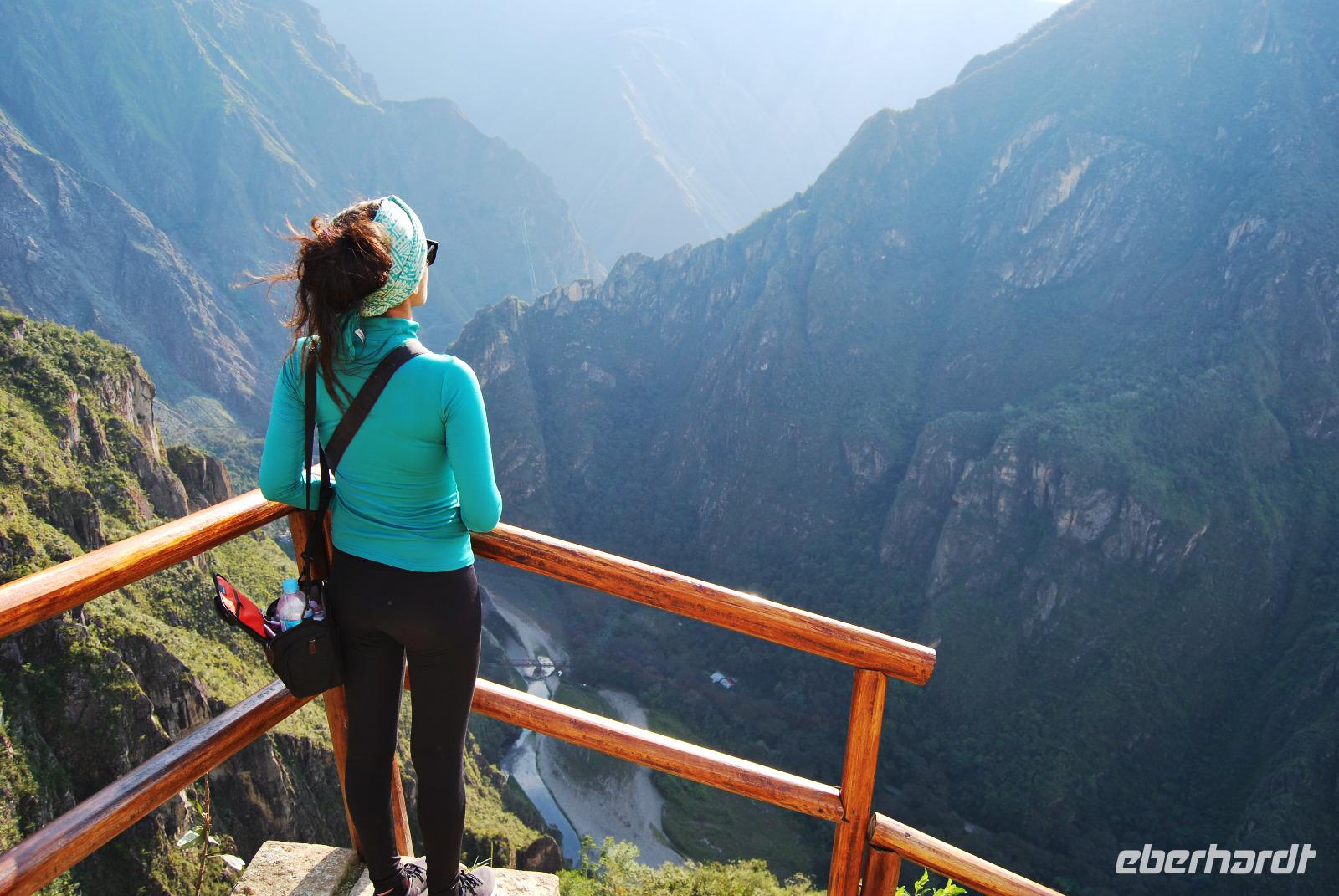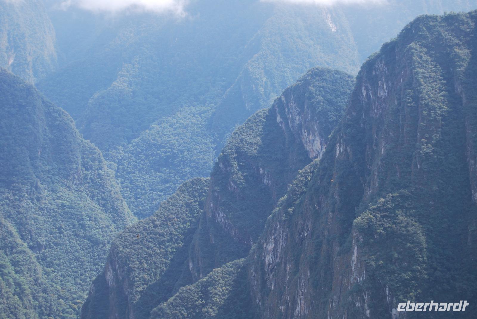 Heute hatten wir ein weiteres Mal die Möglichkeit den Machu Picchu zu besuchen. Aber nur René und ich wagen noch einmal den Aufstieg. Kurz vor halb sechs Uhr morgens reihen wir uns ein in die lange Schlange mit geschätzten 400 Leuten. Es geht aber einigermaßen schnell und wir gelangen zum Haupteingang. Wir hatten uns entschlossen weiter nach oben, bis zum Sonnentor, zu gehen. Leider war es an diesem Tag nicht so schön klar wie am Tage zu vor. Deshalb hatten wir leider nicht die beste Sicht. Nachdem wir eine Weile gewartet hatten, gingen wir wieder zur Hauptanlage zurück, da wir auf der anderen Seite noch die Inkabrücke besichtigen wollten. Der Legende nach soll dies ein alter Fluchtweg der Inkas gewesen sein.