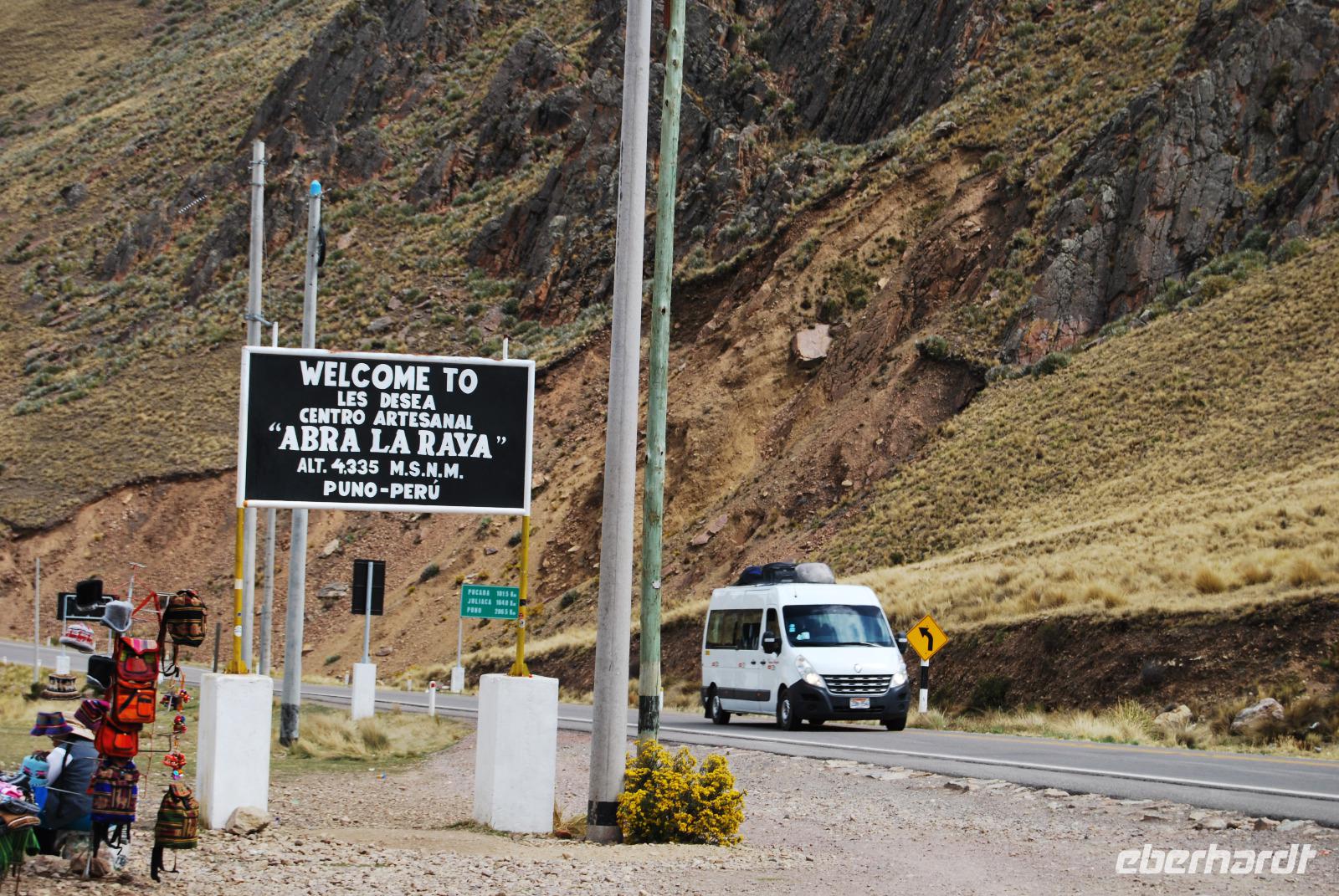 Wir kamen zum Pass Abra La Raya auf 4.335 Meter Höhe, der höchste Punkt unserer Reise. Wir genossen die klare Höhenluft, die beeindruckende Berg- und Steppenlandschaft. Der ein oder andere kaufte bei den einheimischen Händlern, die man dick eingepackt in den abgelegensten Orten findet, ein Souvenir.
