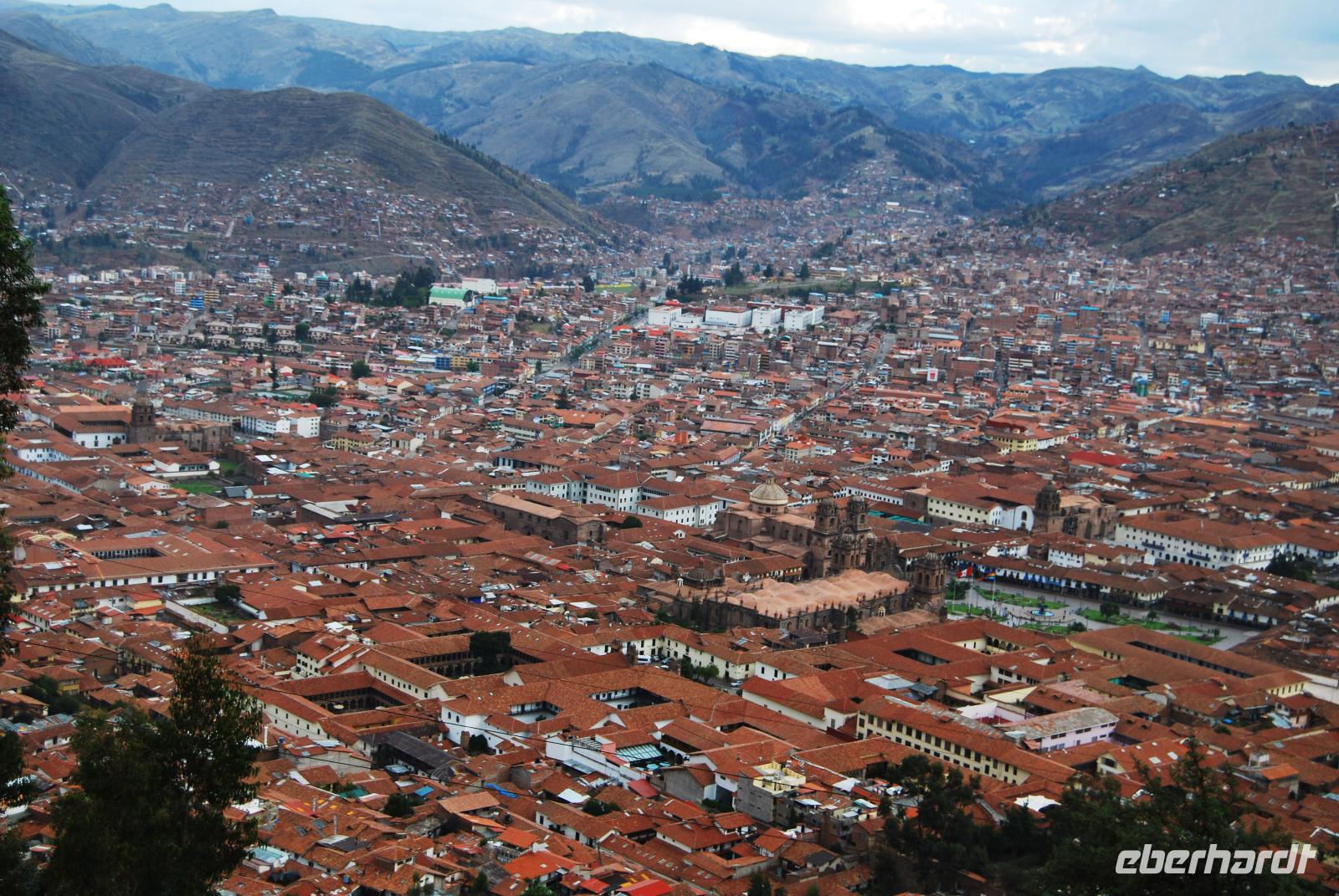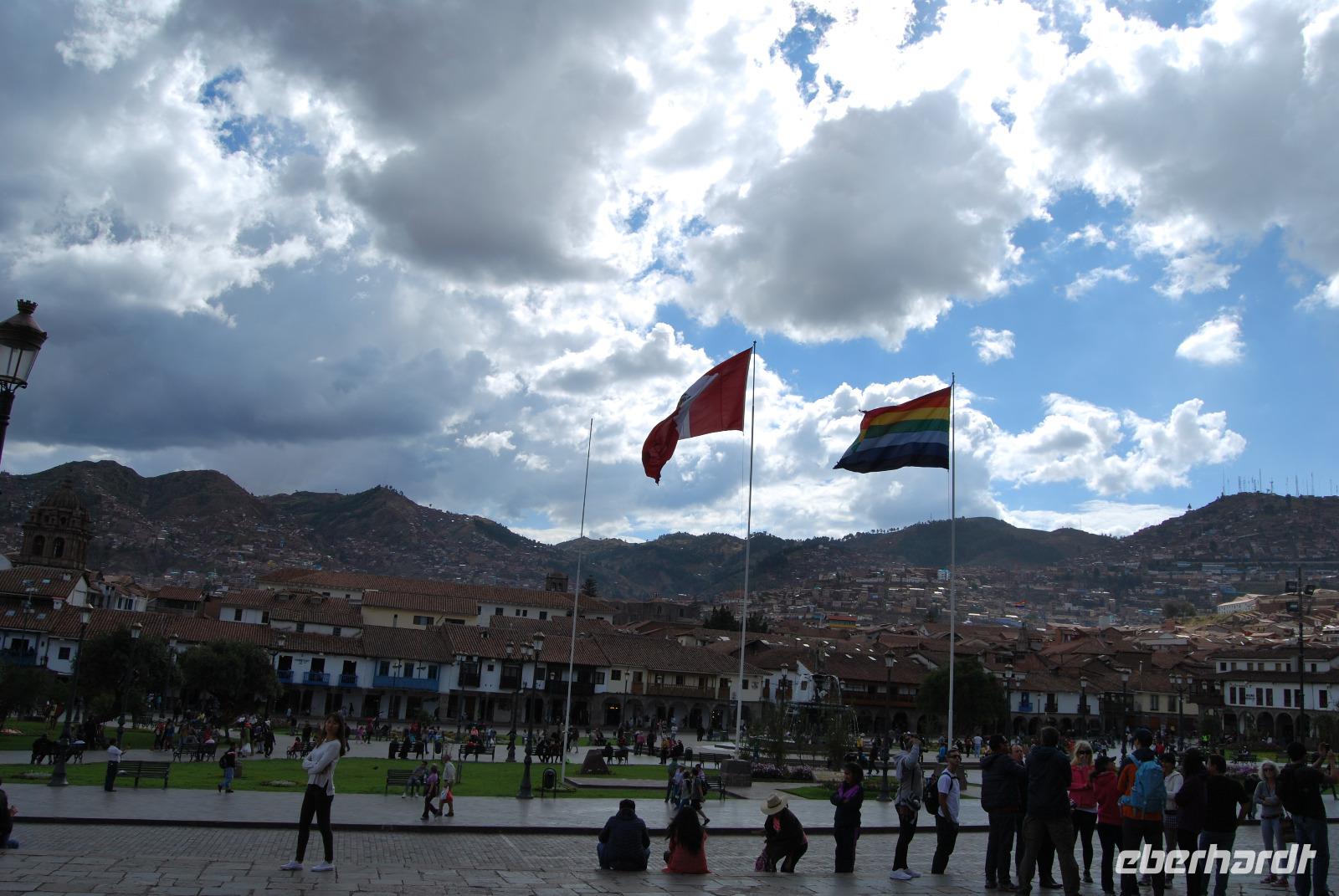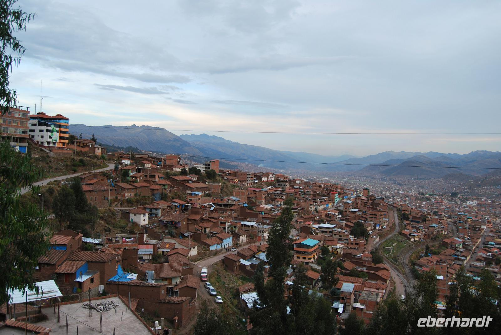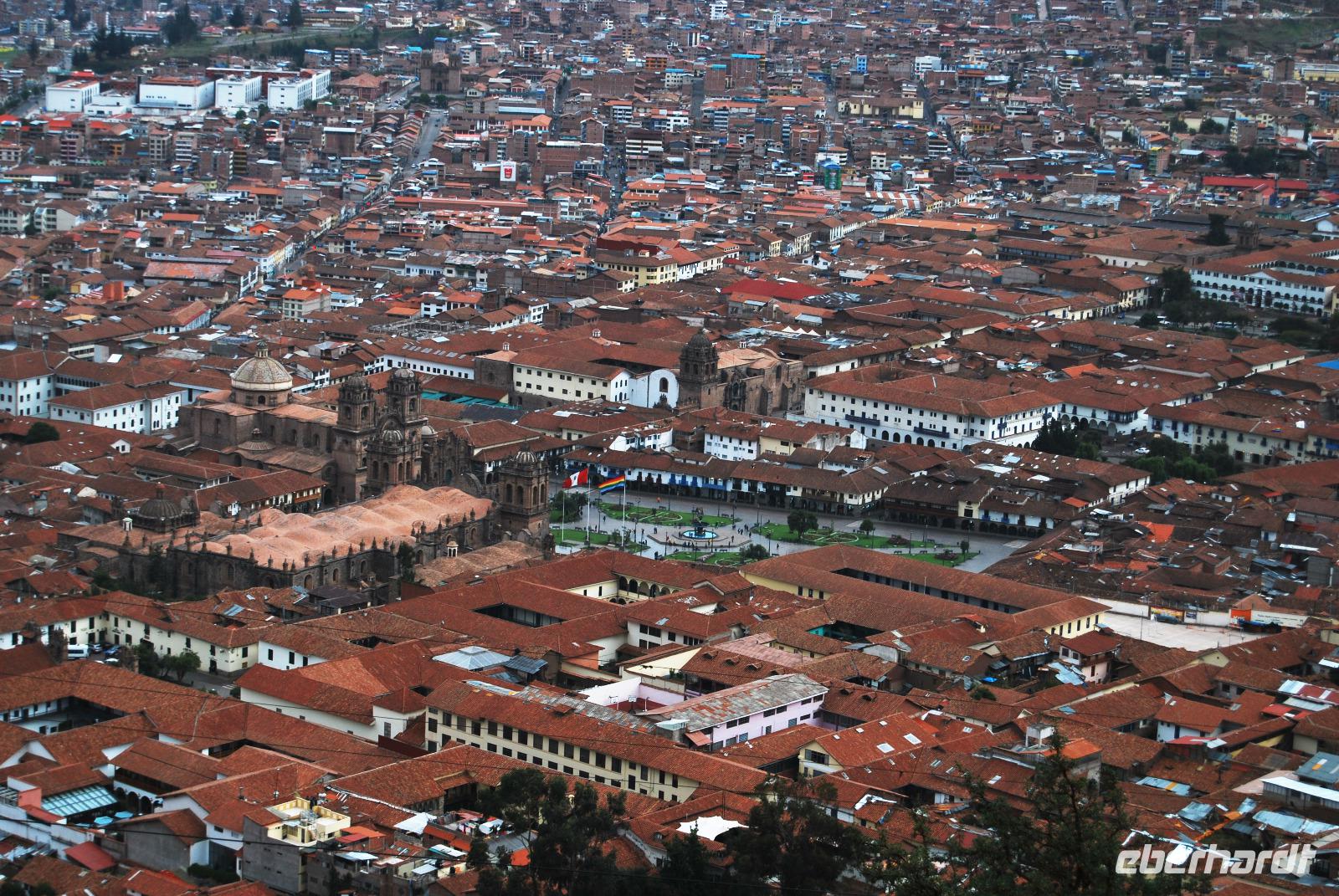 Wir frühstückten relativ zeitig. Denn bereits um kurz nach 7 Uhr ging es über die buckligen Straßen Limas zum Flughafen. Heute wollten wir nach Cusco fliegen. Nachdem wir die übliche Wartezeit am Gate abgesessen hatten, saßen wir nun endlich freudig im Flieger. Doch es passierte nicht viel. Letztendlich mussten wir noch fast eine Stunde am Boden warten bis wir die Starterlaubnis bekamen. Der Ausblick auf das Andenhochland war gigantisch. Tiefe Schluchten, teilweise schneebedeckte Berge, die durch die aufbrausenden Wolken immer wieder durchblitzten. Die Landung in Cusco war dann etwas holprig - wir mussten eine enge Schleife über die Stadt drehen, dabei ließen ein paar Turbulenzen den Flieger in der Seitenlage ordentlich wanken. Die Flügel schlugen hoch und runter - aber der Pilot brachte uns sicher auf die Landebahn. Nun waren wir da, im Zentrum des Andenhochlandes und der ehemaligen Hauptstadt der Inkas, auf rund 3.400 Meter über dem Meeresspiegel. Die große Frage die sich wohl jeder stellte - wie werde ich wohl die Höhe vertragen?