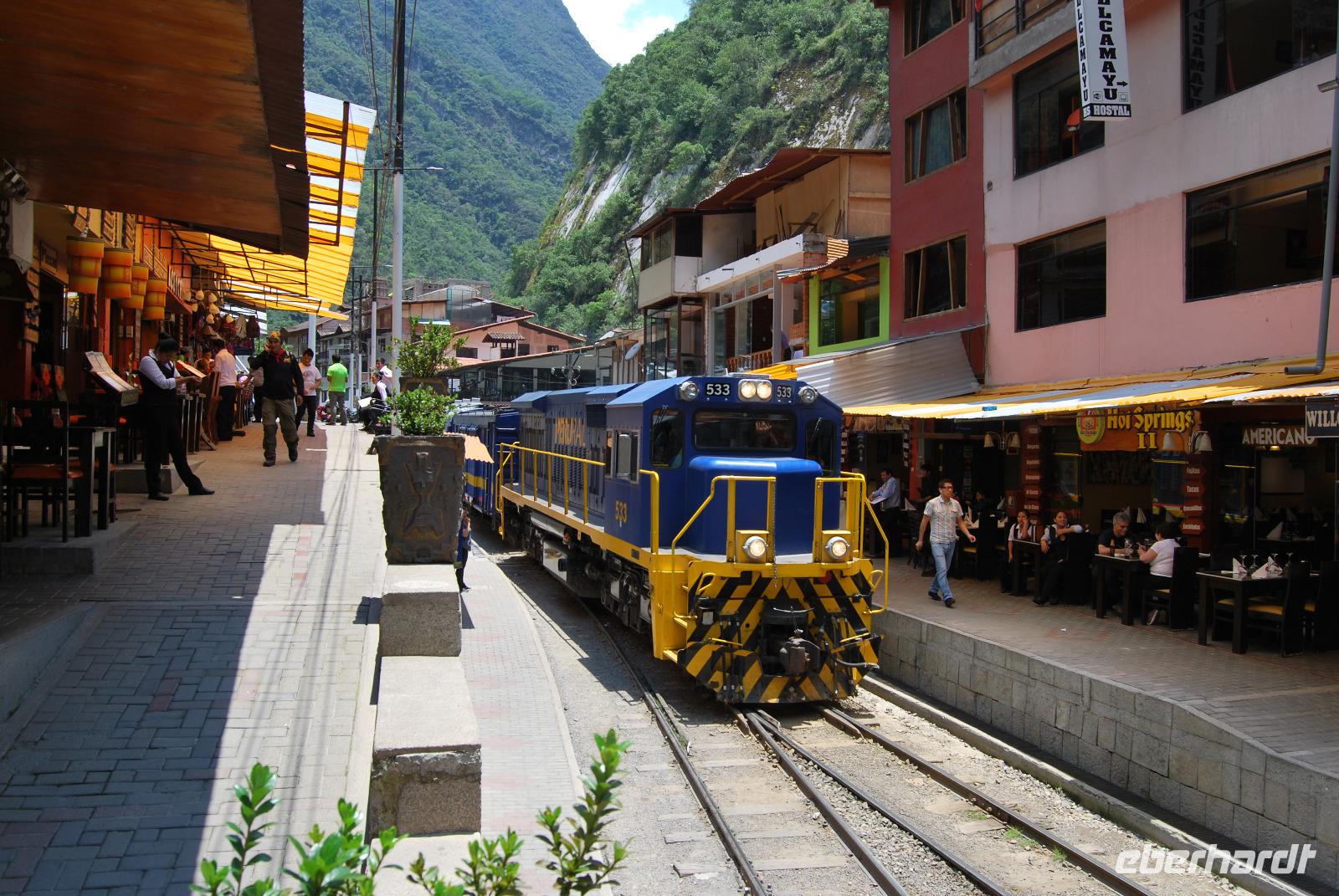 Kurz vor dem Mittag sind wir wieder zurück in Aguas Calientes. Wir können noch eine Kleinigkeit essen, bevor wir uns mit den anderen treffen. Die meisten hatten den Vormittag genutzt um sich etwas auszuruhen und die eindrucksvolle Hotelanlage im Urwald zu nutzen oder auch um in der Stadt die Souvenir-Shops unsicher zu machen.