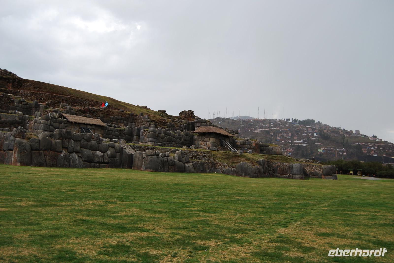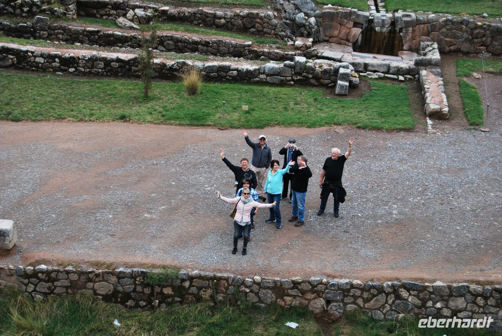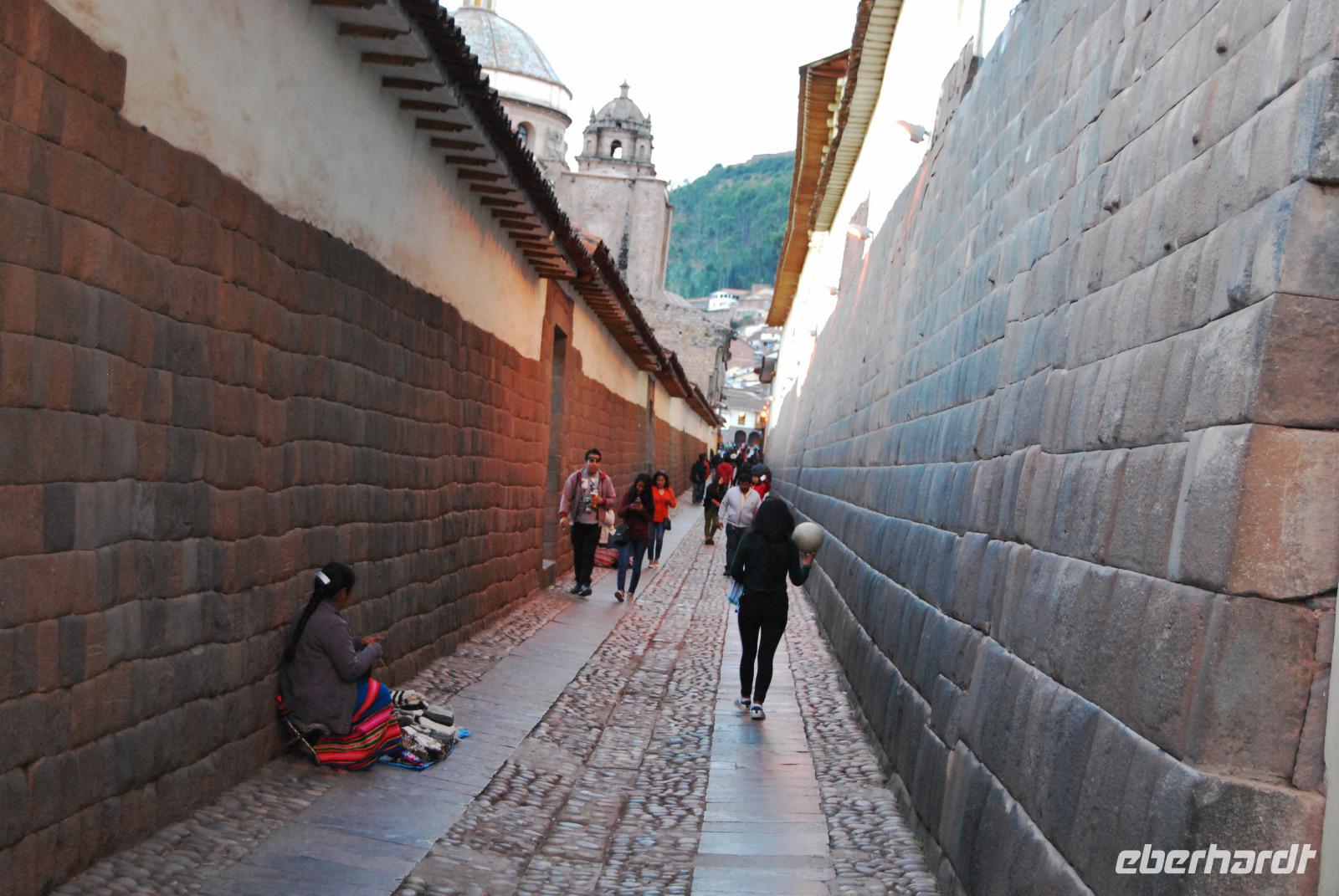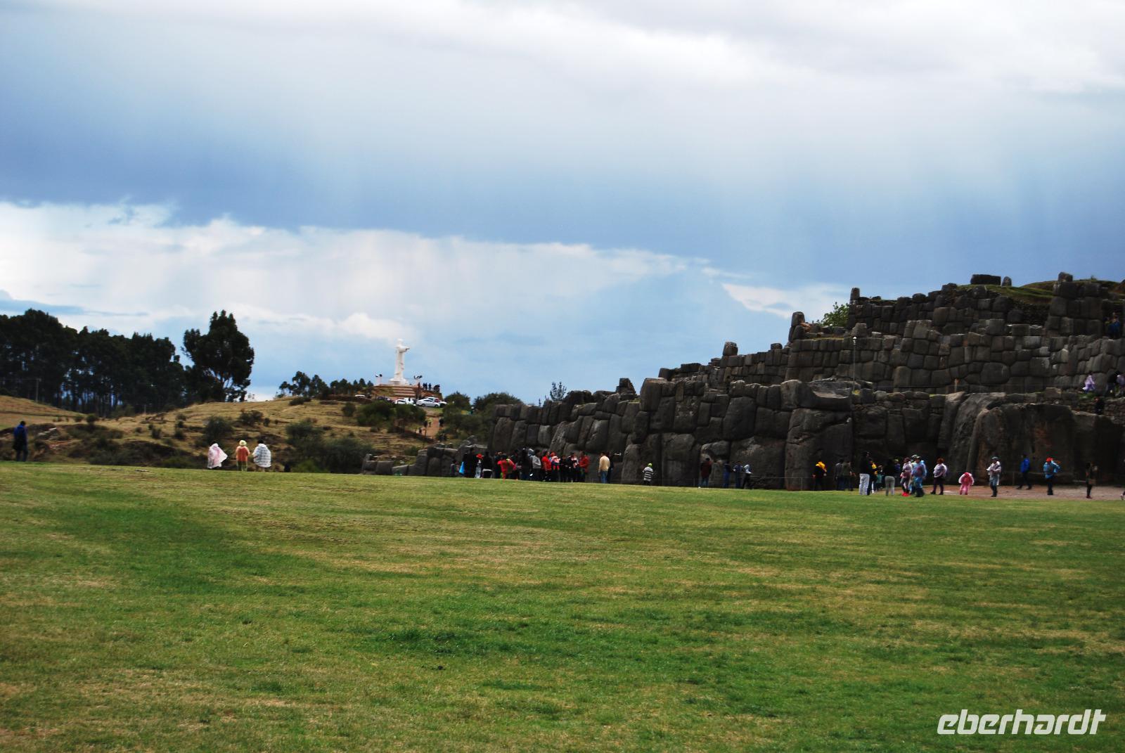 Wir verlassen die äußerst eindrucksvolle Kathedrale und fahren mit dem Bus die steilen Hügel hinauf. Man sieht ein Gewitter aufziehen, es grummelt ein wenig und leichter Regen setzt ein. Dennoch schauen wir uns aber die Ruinen von Sacsayhuaman an, die sich oberhalb der Stadt Cusco befinden. Hier erlangen wir einen ersten Eindruck über die gewaltige und filigrane Baukunst der Inkas. Wir rundeten unsere Tagestour ab, in dem wir noch einen kurzen Halt nahe des weißen Christo machten, der über der Stadt thront. Auf dem Weg zurück ins Hotel sahen wir uns den Sonnentempel an, der ebenfalls im Zentrum von Cusco liegt. Auch hier haben die Spanier die alte Tempelanlage als Fundament verwendet und einfach ihr Bauwerk oben aufgesetzt.