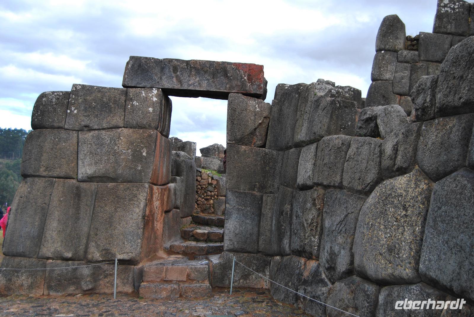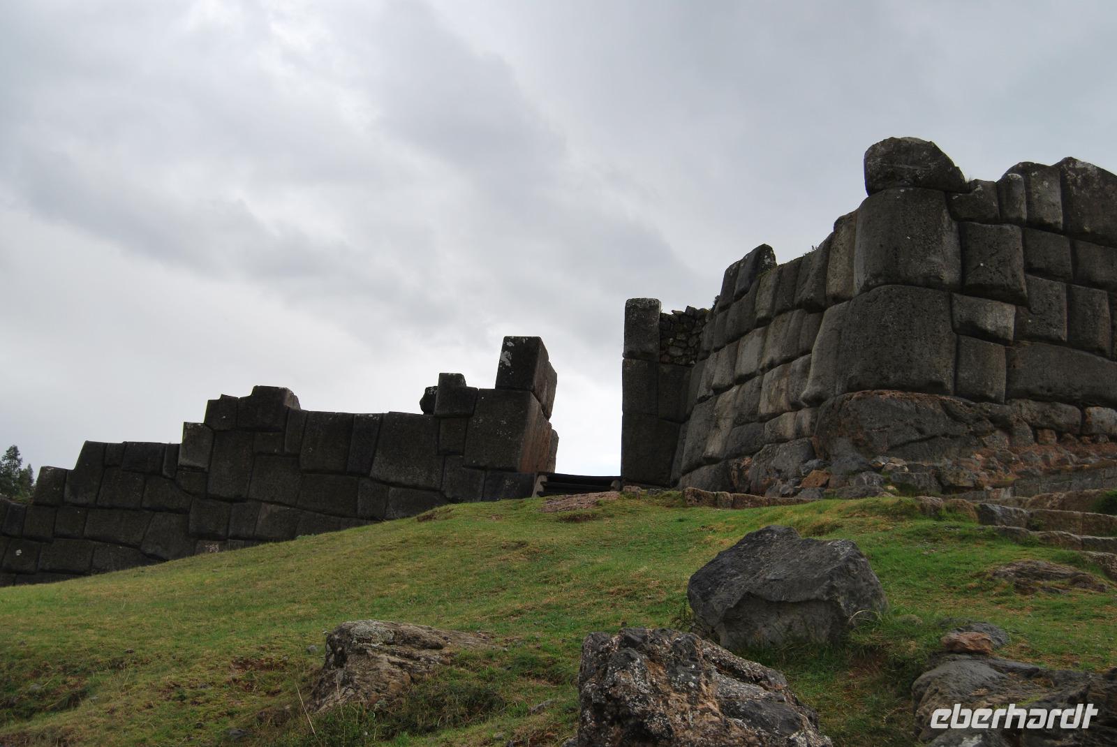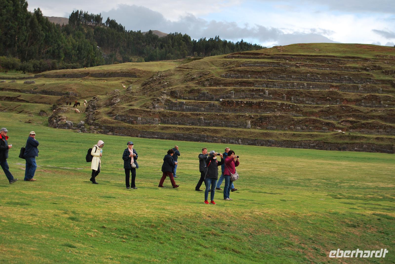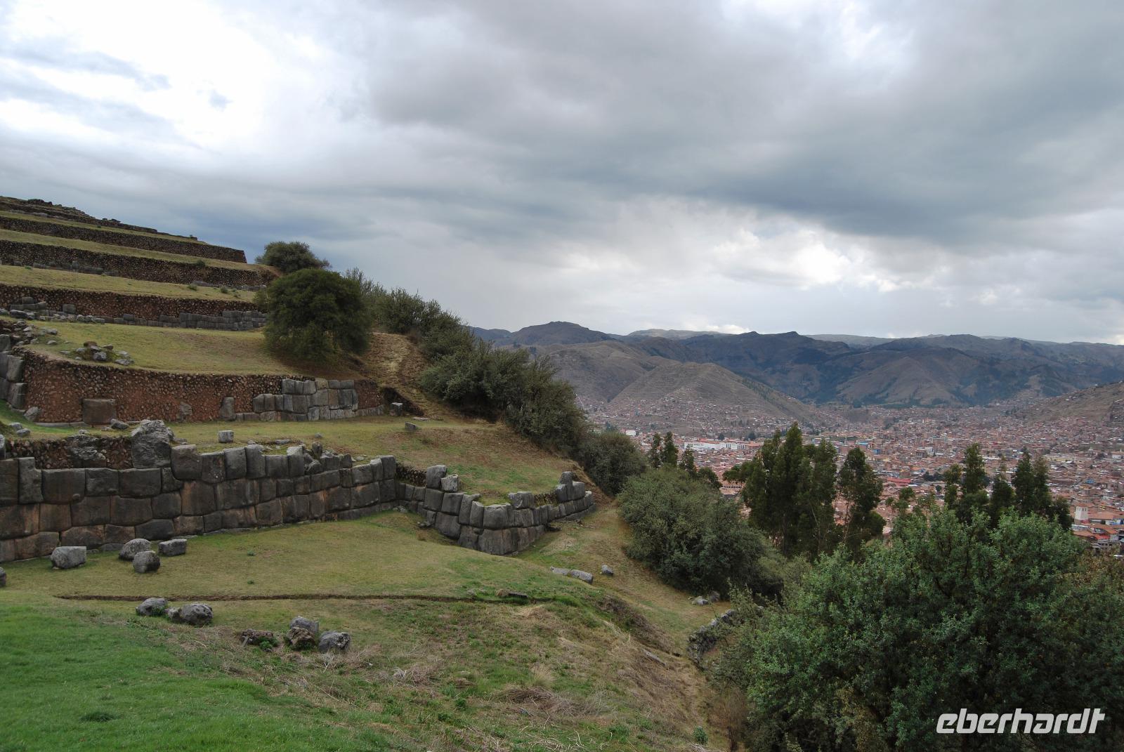 Wir verlassen die äußerst eindrucksvolle Kathedrale und fahren mit dem Bus die steilen Hügel hinauf. Man sieht ein Gewitter aufziehen, es grummelt ein wenig und leichter Regen setzt ein. Dennoch schauen wir uns aber die Ruinen von Sacsayhuaman an, die sich oberhalb der Stadt Cusco befinden. Hier erlangen wir einen ersten Eindruck über die gewaltige und filigrane Baukunst der Inkas. Wir rundeten unsere Tagestour ab, in dem wir noch einen kurzen Halt nahe des weißen Christo machten, der über der Stadt thront. Auf dem Weg zurück ins Hotel sahen wir uns den Sonnentempel an, der ebenfalls im Zentrum von Cusco liegt. Auch hier haben die Spanier die alte Tempelanlage als Fundament verwendet und einfach ihr Bauwerk oben aufgesetzt.