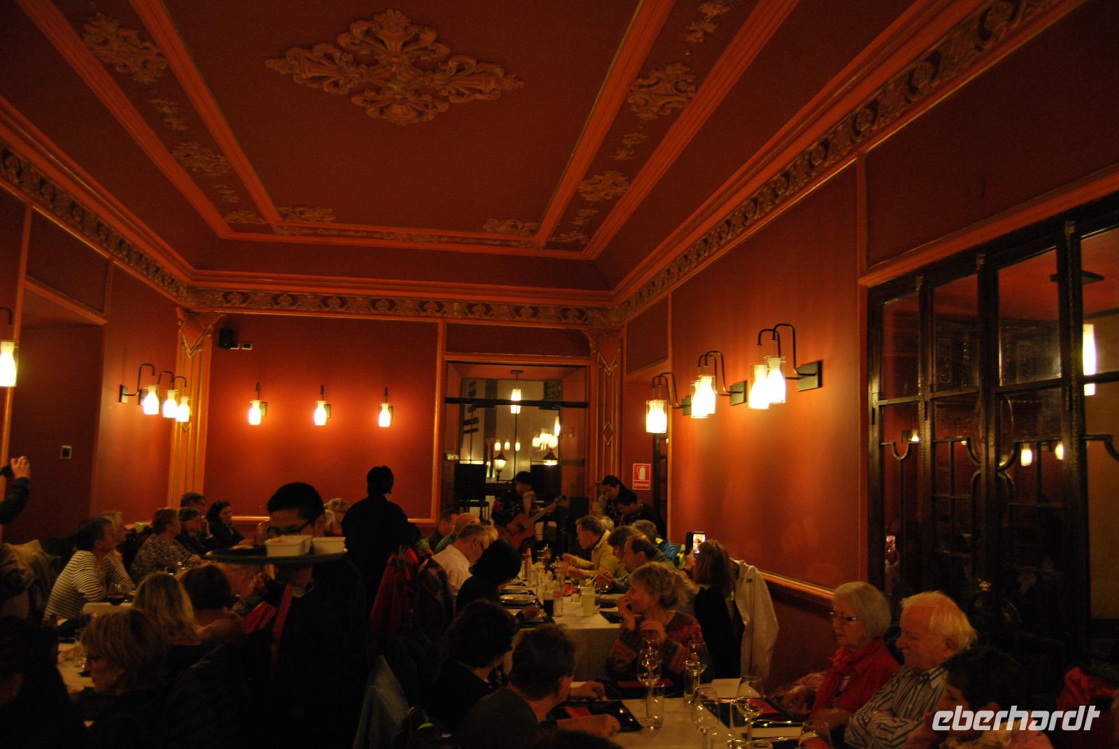 Abends kamen wir zur Tango-Show zusammen. Denn die durfte bei einem Besuch in Buenos Aires nicht fehlen! In einem urigen Keller servierte man uns ein deftiges argentinisches Steak. Dazu empfehlenswerter Wein des Landes. Der Tango symbolisiert die Leidenschaft der Stadt Buenos Aires und die der Porteños, wie die Bewohner genannt werden. In den goldenen 20ern erlebte die Stadt einen Aufschwung. Der Tango entstand in den Randgebieten und den Bordellen der Stadt. Eindrucksvolle Avenidas mit klassizistischen Fassaden, überfüllte Straßen, Sprachgewirr, Menschen aus aller Herren Länder, mittendrin vornehme Damen, bei Schuhputzern, Handwerkern, Tangotänzern, Prostituierten und Tagedieben. Immer wieder Schiffe mit Auswanderern aus Übersee - das sind die Assoziationen von der damaligen Welt, in die wir für eine Zeitlang eintauchten.