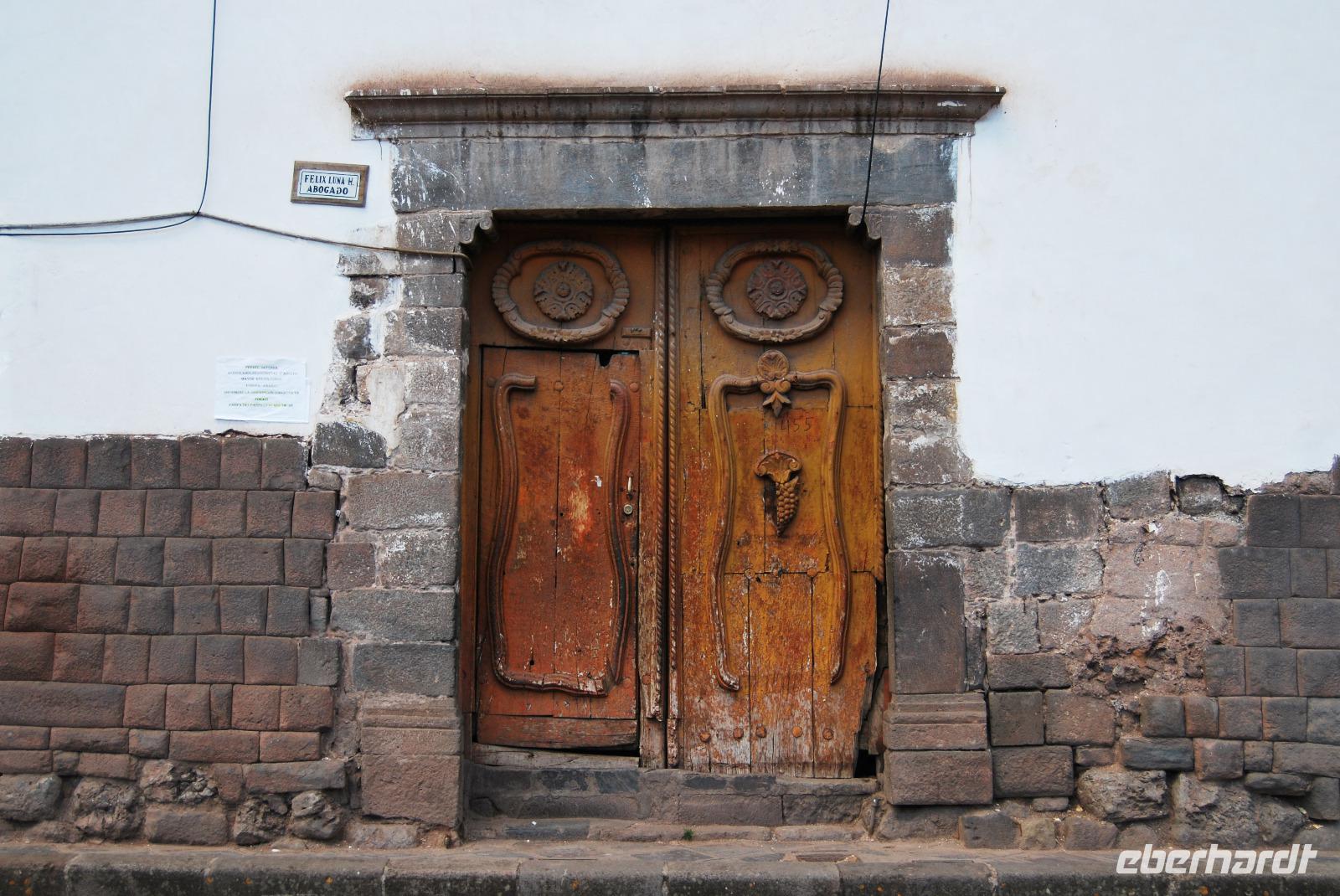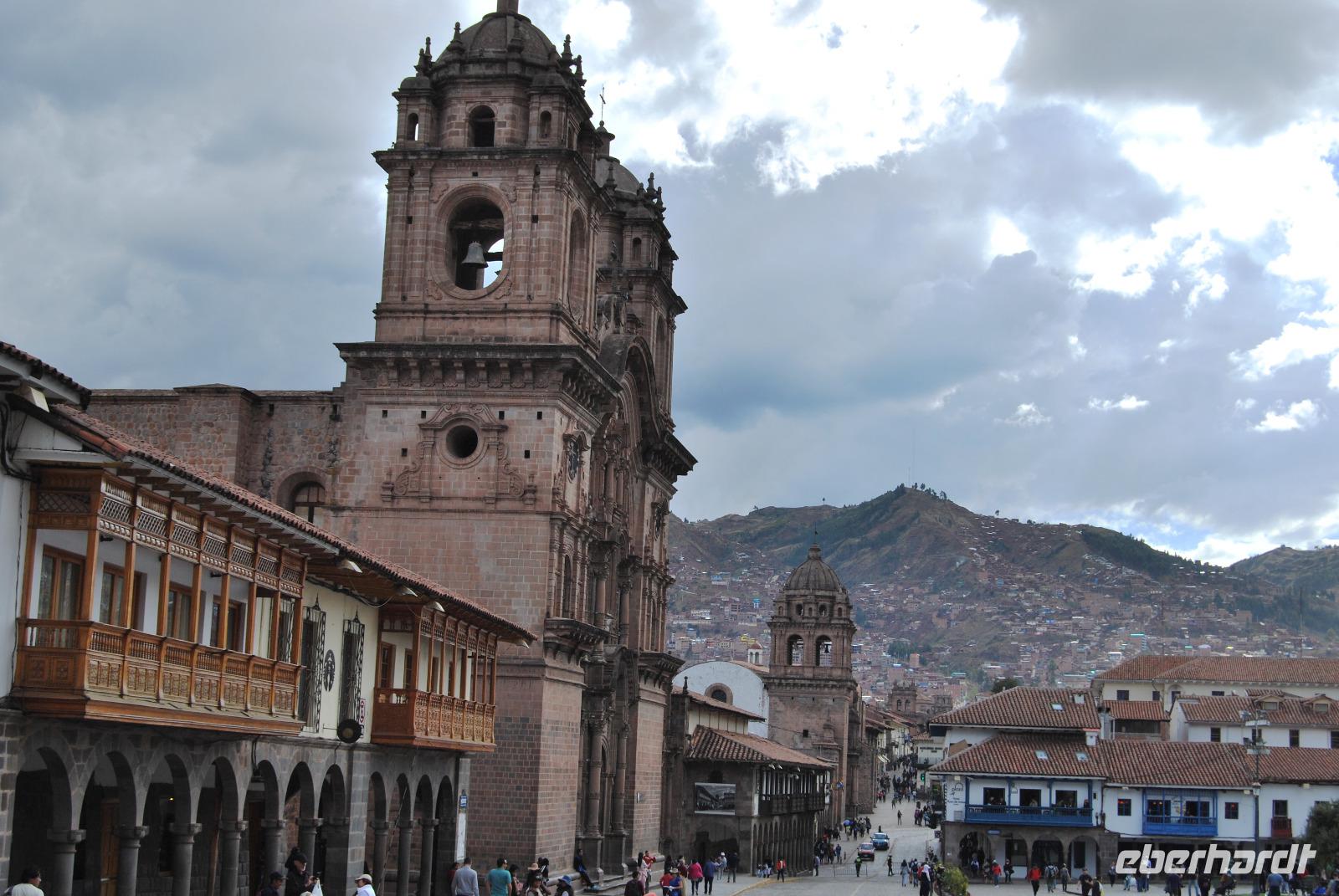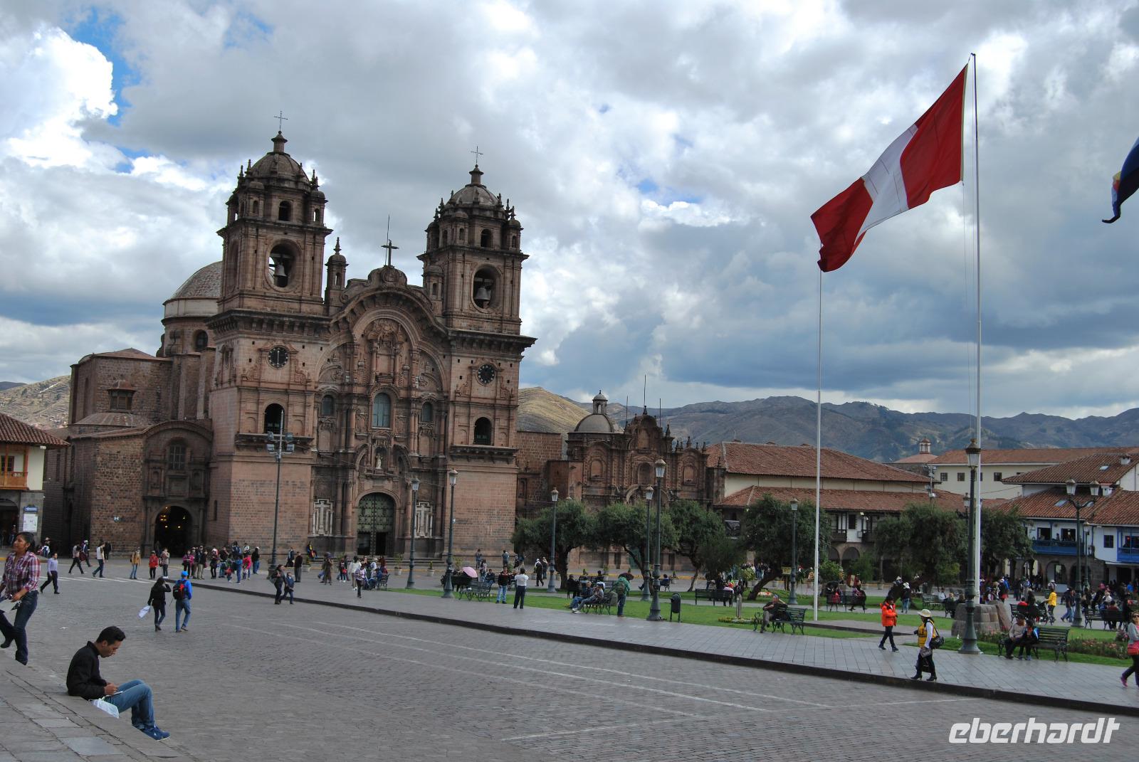 Wir gehen in die Kathedrale von Cusco, dem Templo de la Sagrada Familia. Mit der Eroberung Südamerikas versuchten die Spanier die Ureinwohner zum katholischen Glauben zu bekehren. Sie errichteten Kirchen und Kathedralen auf den Ruinen von Tempeln, die sie zerstört hatten. So kamen Baumeister aus Europa nach Cusco und gründeten eine Schule im 17. Jahrhundert. Sie unterrichteten die Einheimischen in der Bildhauerkunst. Mit der Zeit entwickelte sich ein neuer Stil - der Anden-Barock! Ein wunderschönes Beispiel ist der Templo de la Sagrada Familia, wo drei Gotteshäuser zu einem verschmolzen sind. Zahlreiche Symbole und florale Ornamente der Anden und der Inkas sind in die katholische Kirche geflossen. Die Eroberer konnten die Welt der Inkas nie zerstören, denn selbst in dem aufgesetzten Glauben den die Eroberer den Inkas aufzwangen, lebte die ursprüngliche Kultur weiter. Gold bedeutet Sonne, Silber ist der Mond. Man findet zahlreiche Spiegelflächen in der Kirche, was zum einen das Silber ersetzen sollte, aber zum anderen für die Inka-Bevölkerung neu, exotisch und göttlich gewesen sein muss. Für die Spanier war dies ein guter Ersatz, denn so konnten sie mehr Silber mit nach Spanien ausführen.