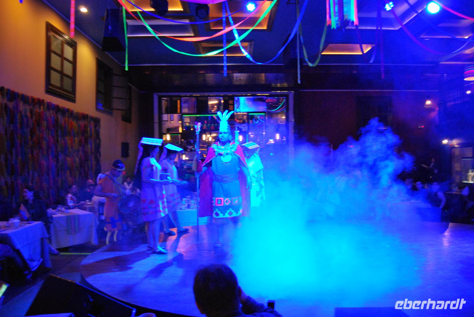 Am Abend besuchten wir eine Tanzveranstaltung, wo uns bei einem reichhaltigen Essen mit verschiedensten peruanischen Spezialitäten, mehrere Tänze des Andenhochlandes und Altiplano aufgeführt wurden. Die Künstler nahmen dabei mehrere Gestalten an, sie verkörperten Gauchos, Inka-Schamanen sowie Teufel und Waldbewohner.
