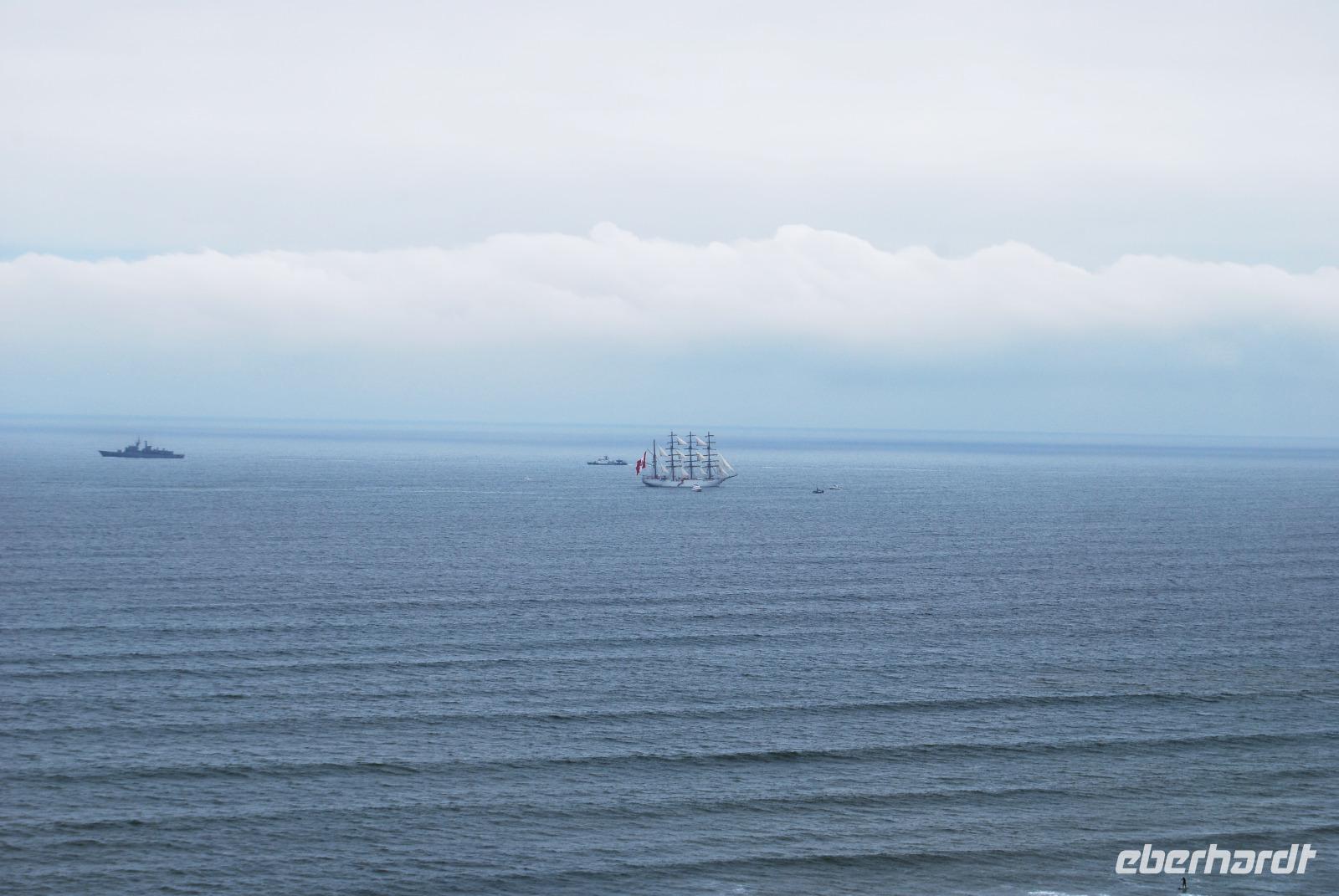 Der wundervolle Blick auf den Hafen, die Sonnenstrahlen, die durch die schweren Wolken brachen und über die Bergkette zogen, ließen uns den kurzen Spaziergang genießen. Dabei verwunderten uns aber die Skater, die am Hafen ihre Tricks versuchten, wie sie dies nur mit einem Pullover und T-Shirt bekleidet aushielten. Wir waren froh, als wir wieder im warmen, windgeschützten Bus saßen.