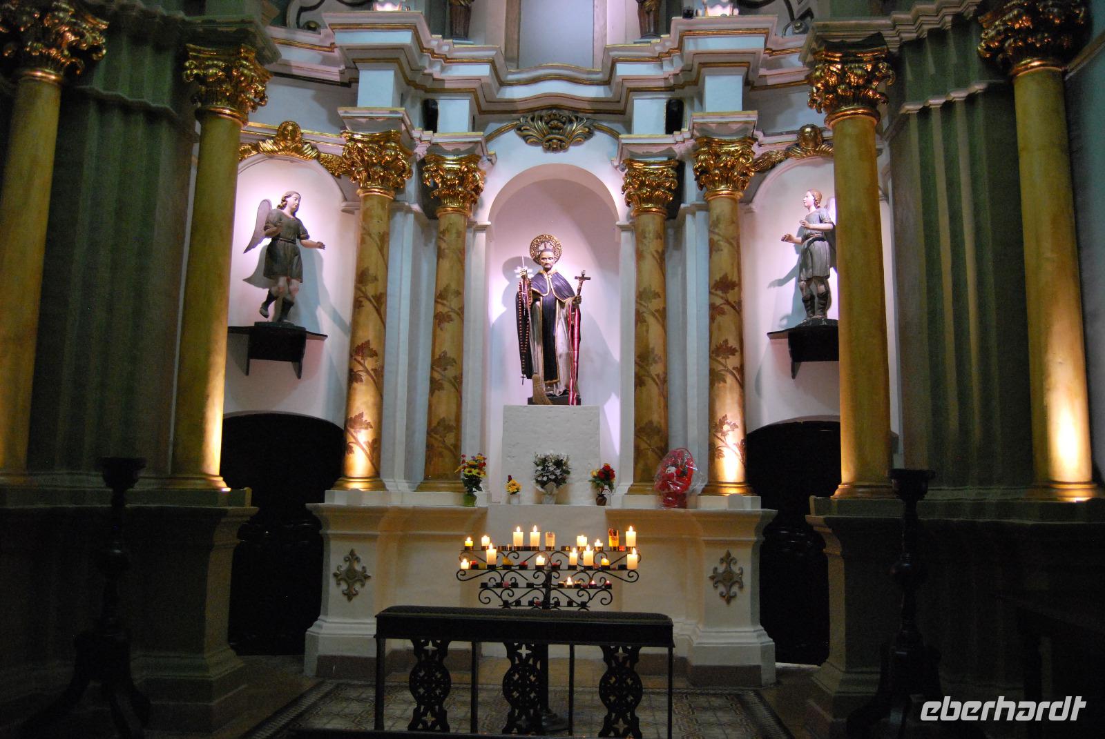 Überall kann man die Mischung zweier Kulturen entdecken. Bei den verschiedensten Elementen der Kirche kann man versteckte Artefakte der Inkas finden.