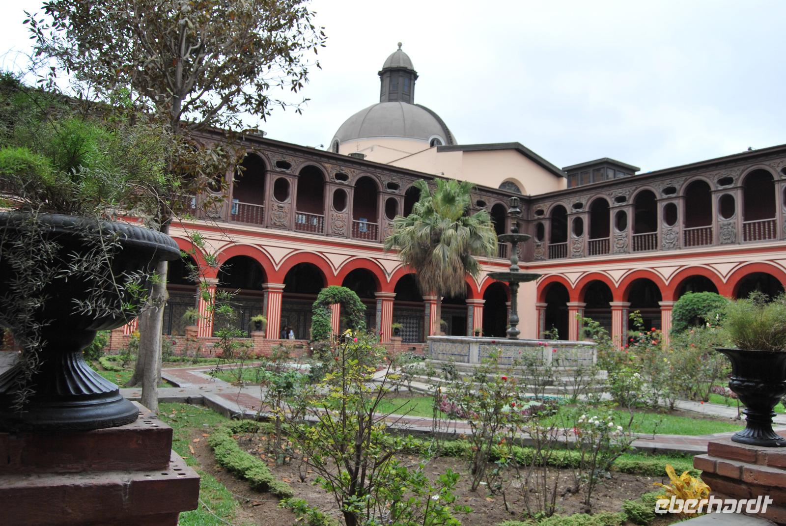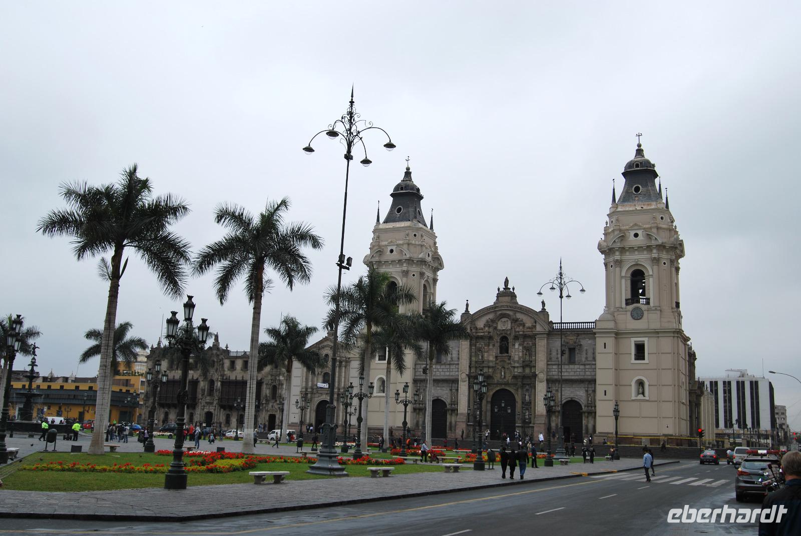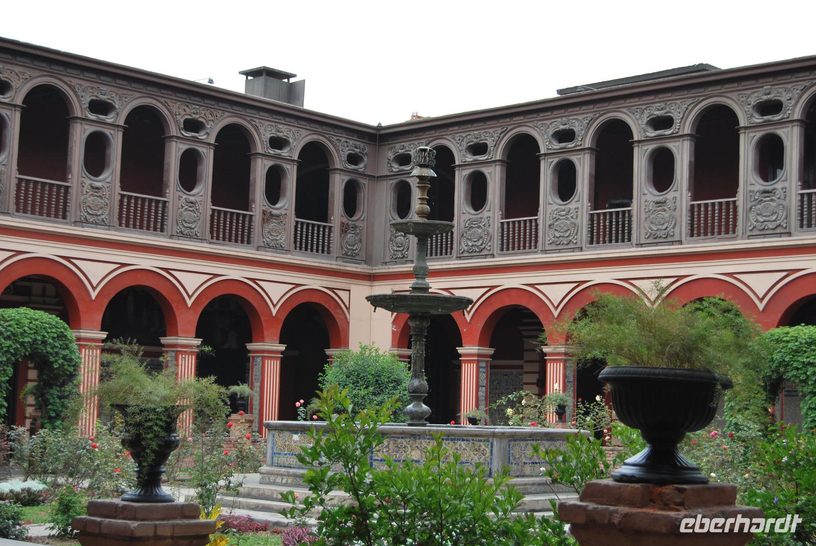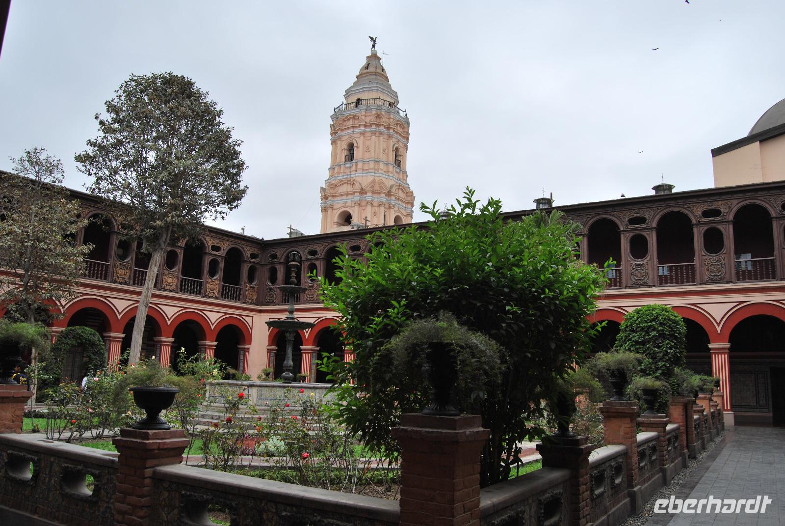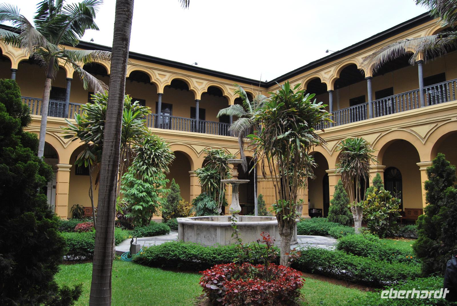 Ursula, unsere Reiseleiterin in Lima, erklärt uns noch etwas zur schachbrettartigen Stadtplanung, die in vielen amerikanischen Städten zu finden ist. Die vier Ecken der Stadtordnung, ausgehend von der Haupt-Plaza waren am wichtigsten. So waren je an einer Ecke der Plaza de Armas die Orden der Dominikaner, Franziskaner, Jesuiten vertreten.