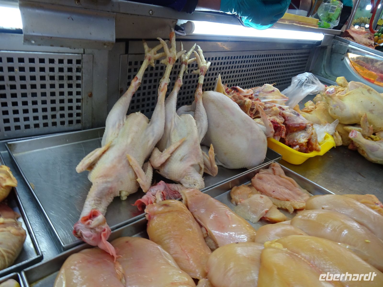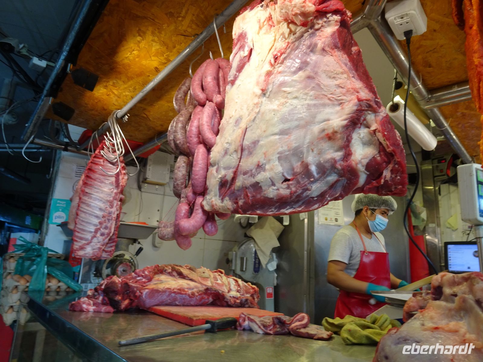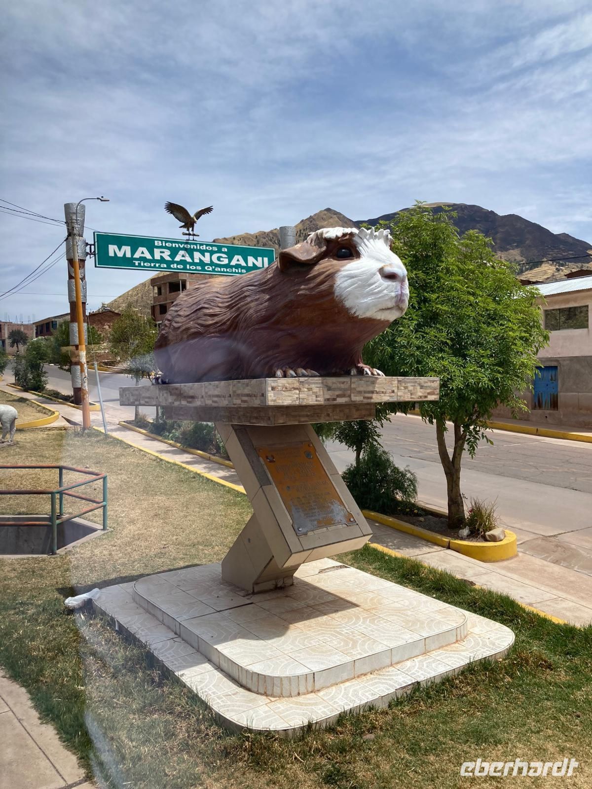 Unseren nächsten Stopp legen wir im Meerschweinchen-Dorf ein. Im Heiligen Tal haben sich die Dörfer auf verschiedene Spezialitäten eingestellt. Nicht in jedem Dorf gibt es alles und hier gibt es eben die Meerschweinchen Restaurants. Da wir nicht speisen, sondern uns nur gruseln und fotografieren wollen, hält Alex an einem Schnellimbiss. Die bei uns beliebten Haustiere braten am Spieß und die Dame des Hauses ist gegen einen kleinen Obulus bereit, uns alles fotografieren zu lassen.
