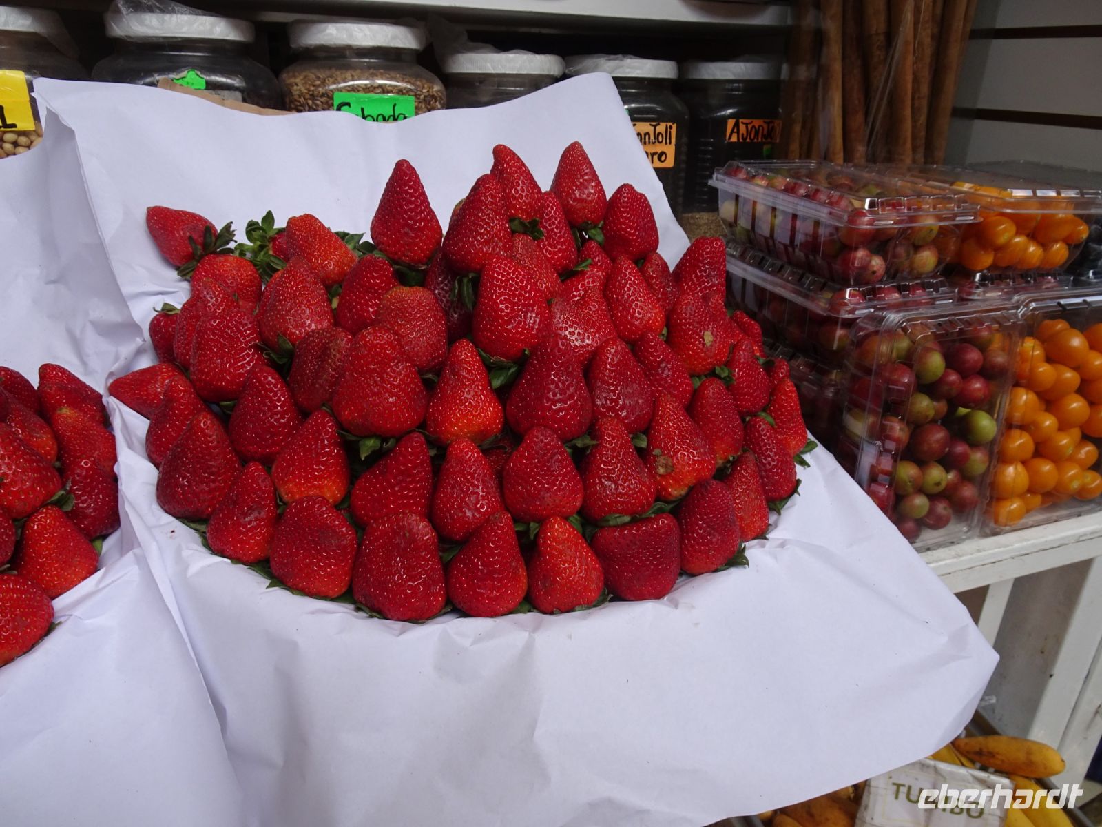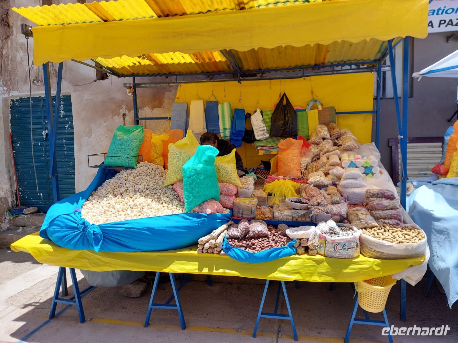 Nach der Besichtigung der Kathedrale spazieren wir durch die Gassen und werfen hier und dort einen Blick in die bunten Marktstände. Hier gibt es säckeweise überdimensionales Popcorn zu kaufen, außerdem leckere Nüsse und getrocknetes Obst. Wir erlauben uns, zu kosten und kaufen dann aber auch.