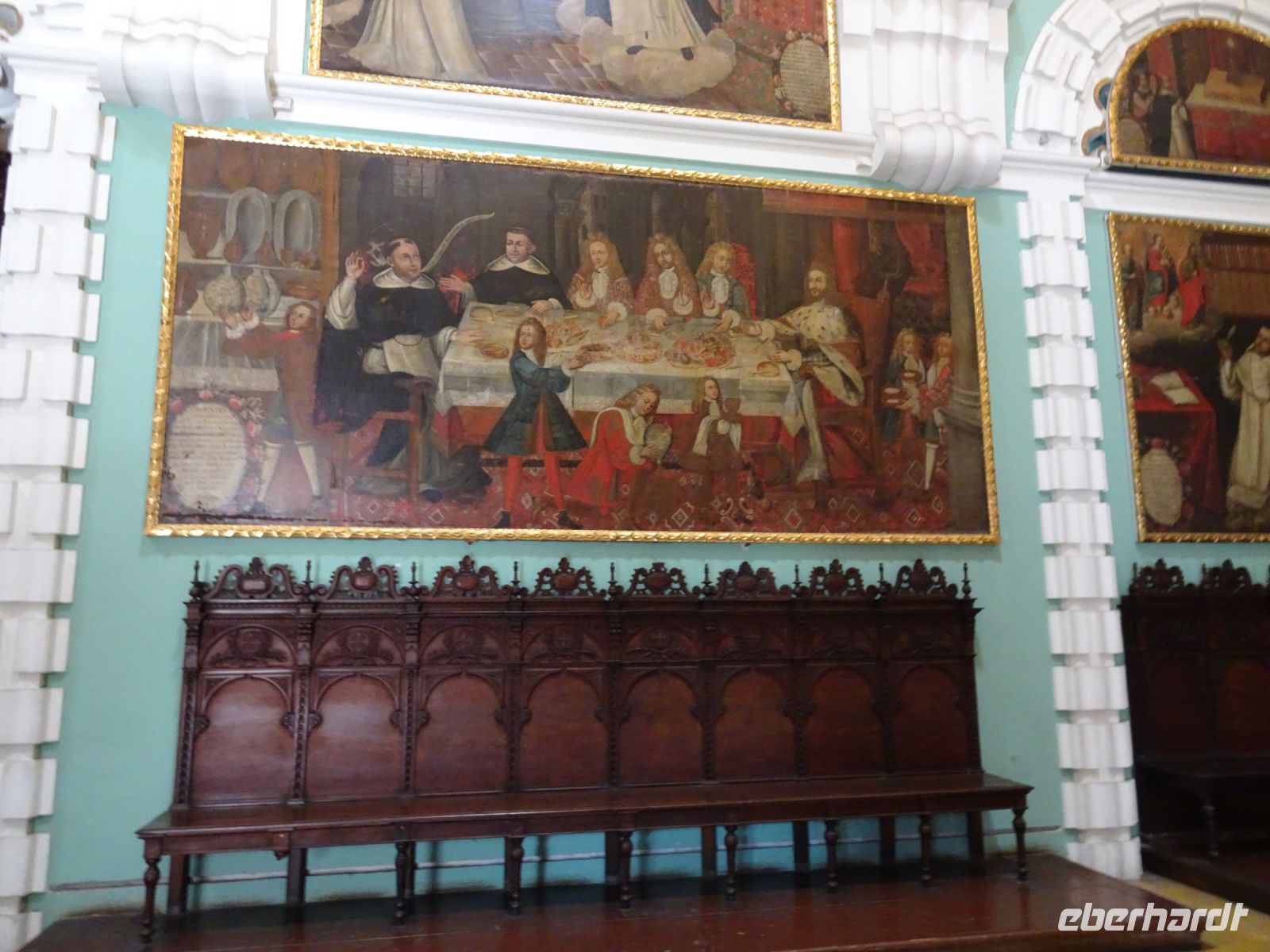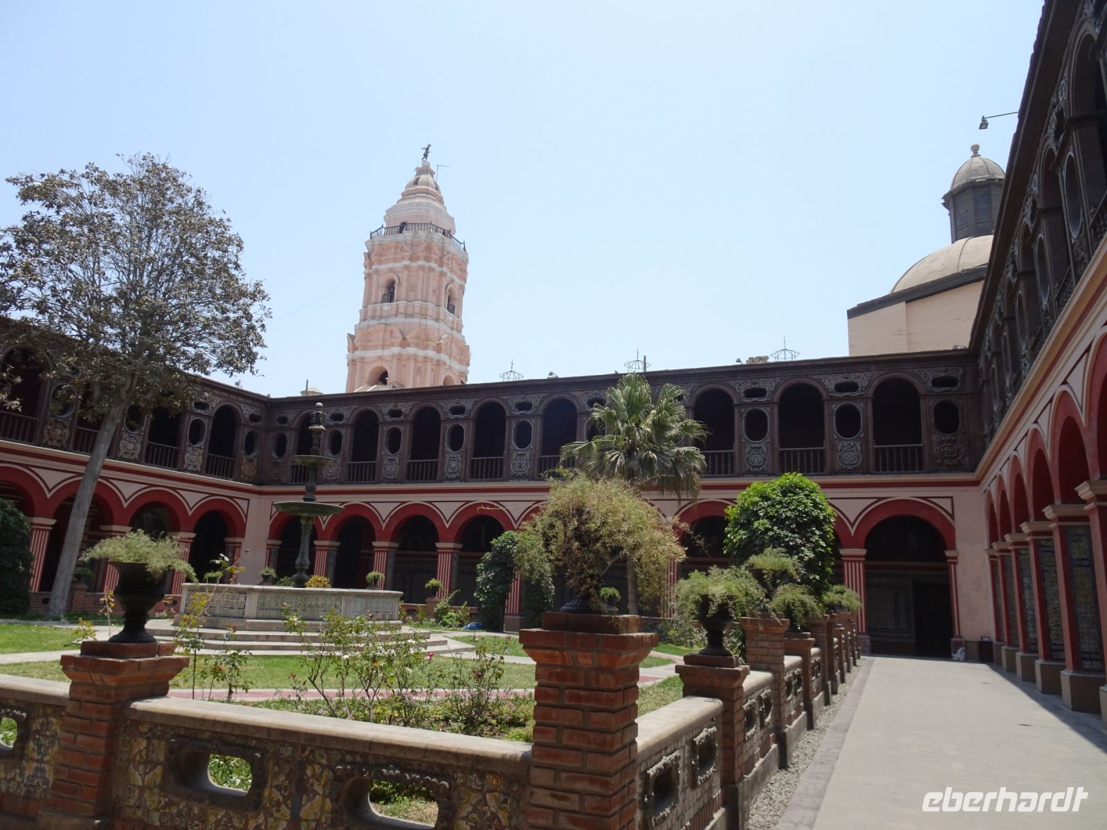 Uns gefällt, wie gut alles gepflegt und sauber ist. Wir legen eine Kaffeepause in einem kleinen Straßencafé ein und haben sogar Zeit, bereits das eine oder andere Souvenir zu erwerben. Unser nächstes Ziel ist das Kloster Santo Domingo, dass wir trotzdem es Montag und geschlossen ist, besichtigen dürfen. Karina macht’s möglich. Das Kloster blickt auf eine fünfhundertjährige Geschichte zurück und ist heute noch aktiv. Beeindruckend ist hier der Kreuzgang (es gibt fünf davon), der mit Kacheln aus Sevilla geschmückt ist, sowie die Gemälde, die das Leben zur Zeit der Klostergründung darstellen. Eine Besonderheit bildet San Martin de Porres (Schutzpatron des Pflegepersonals und der sozialen Gerechtigkeit) der erste schwarze Heilige Amerikas und der erste peruanische Heilige.
